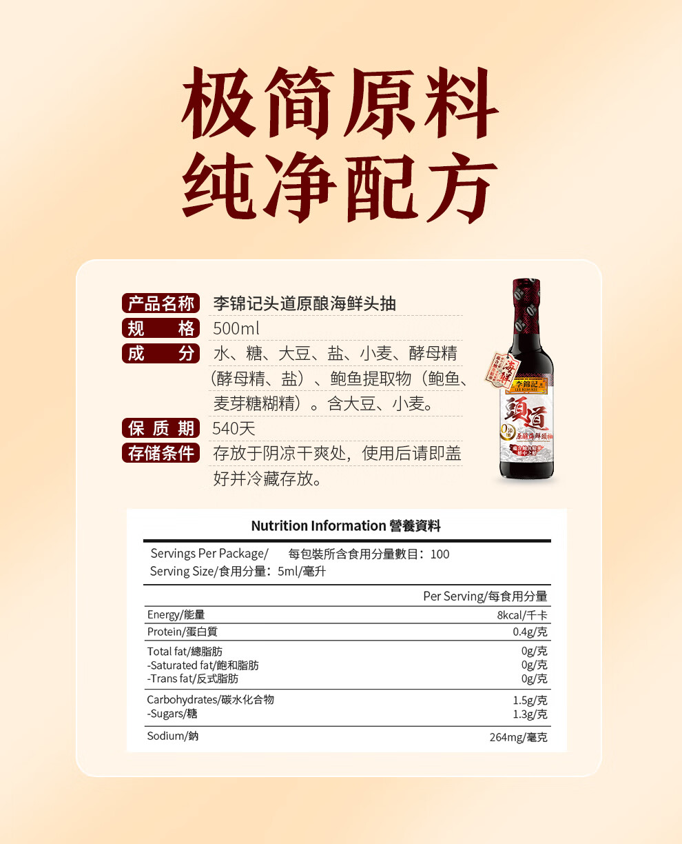 李锦记头道原酿海鲜头抽500ml 港版酱油 海鲜酱油 蒸鱼豉油 海鲜生抽