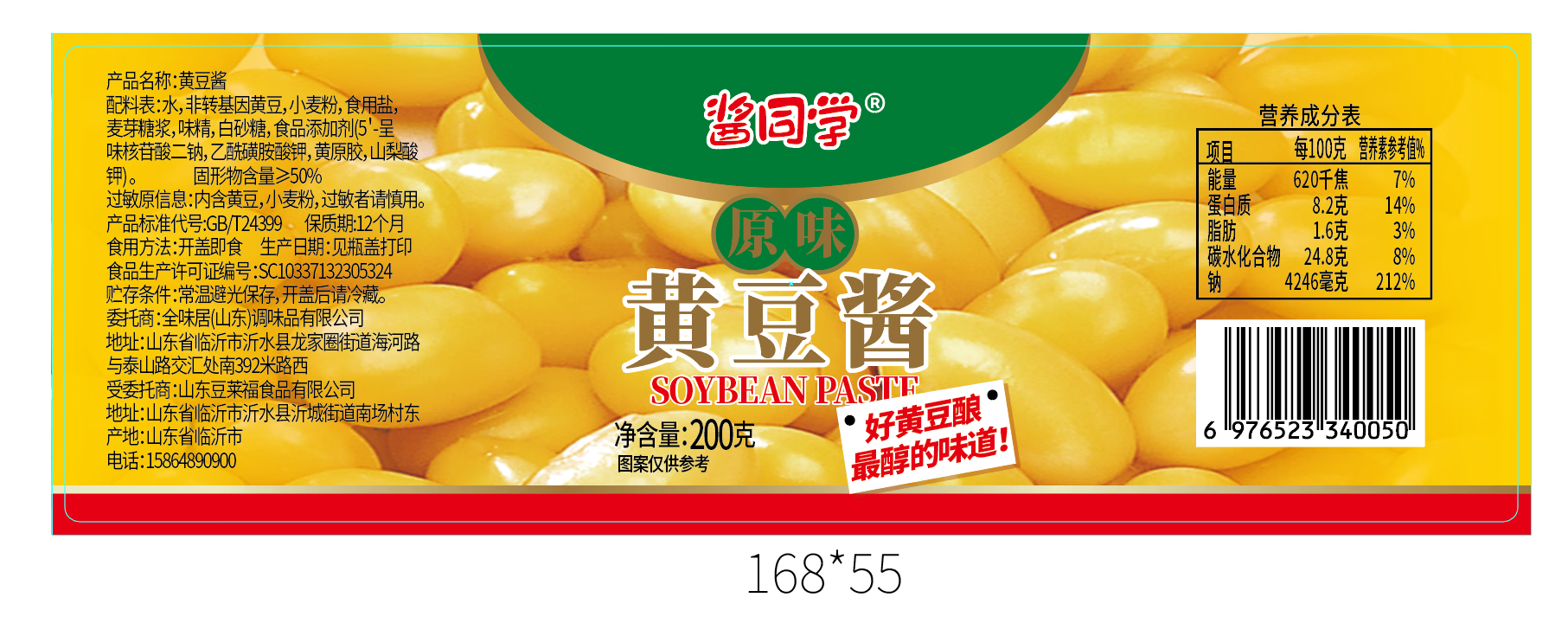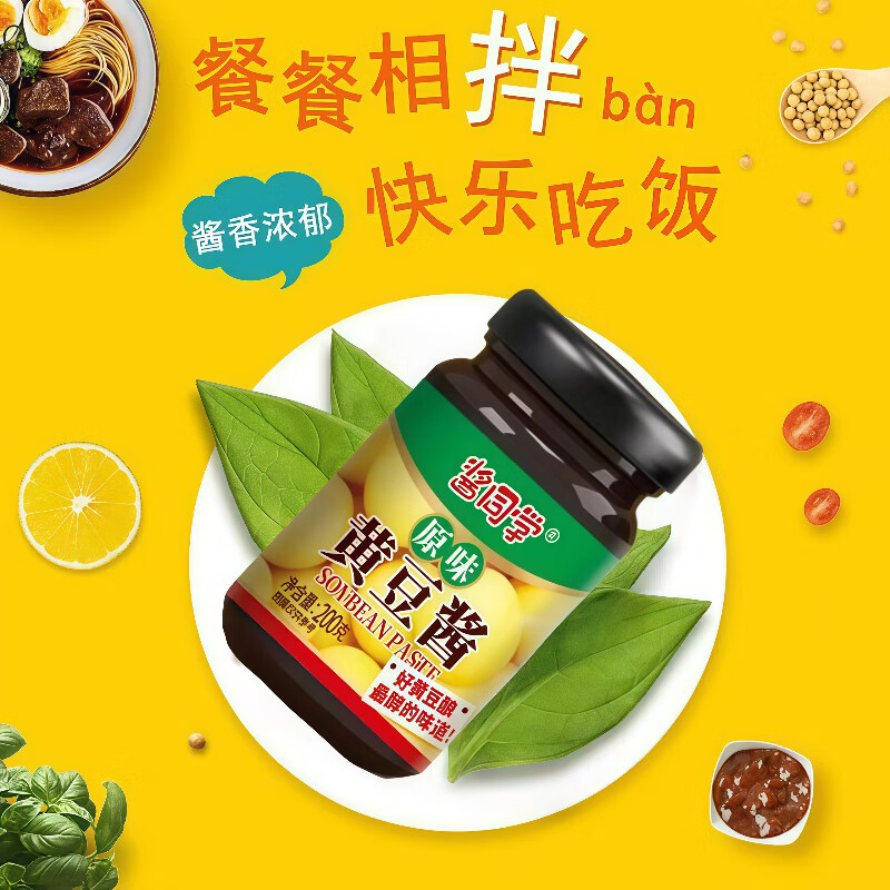 【酱同学】黄豆酱200g家用炒菜拌饭拌面烹饪调味酱豆瓣酱大酱调料 原味黄豆酱 1瓶