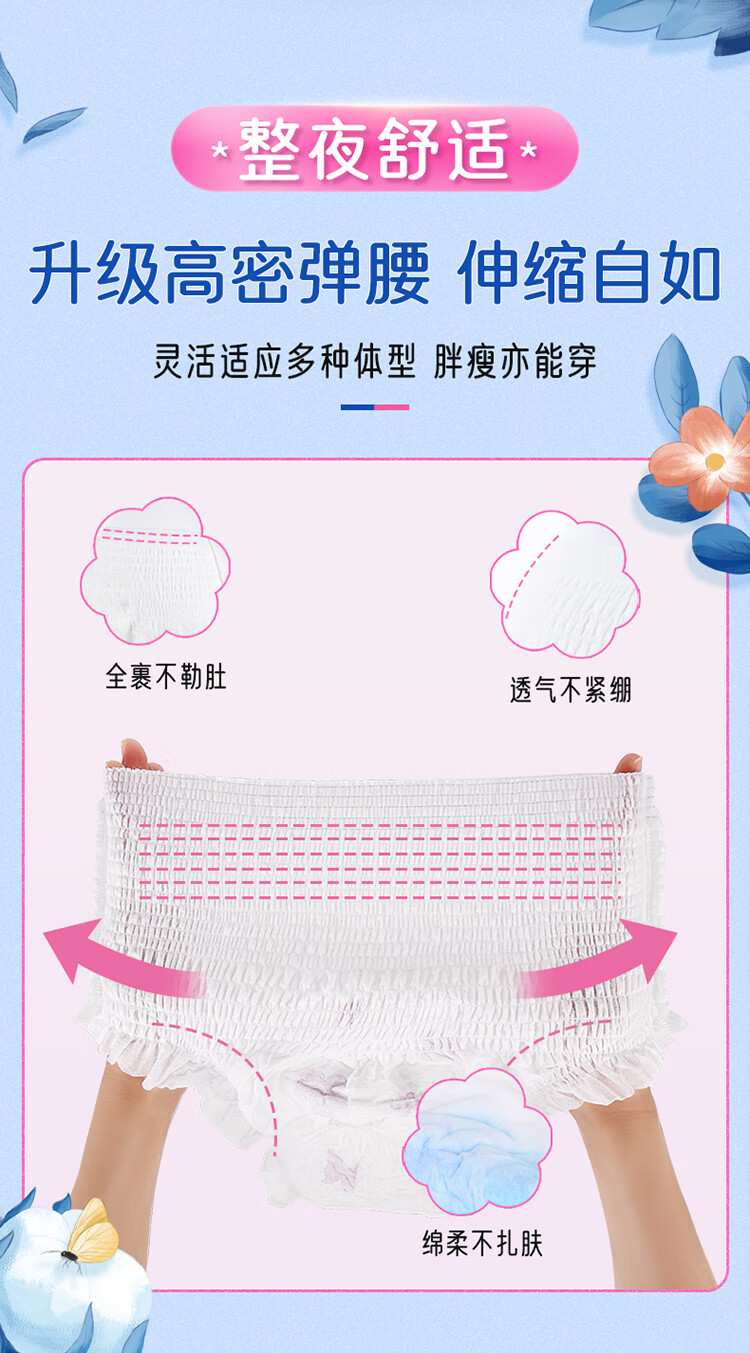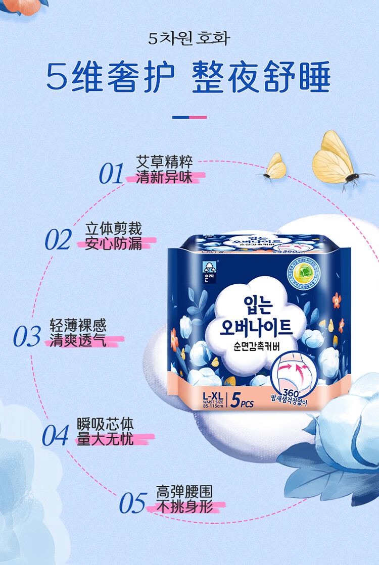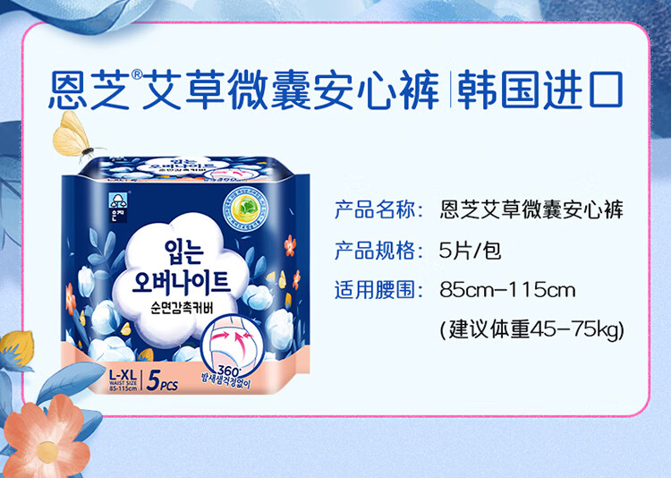 恩芝云柔安心裤L-XL码5片 超长吸收芯经期防漏卫生夜安裤瞬吸舒爽透气