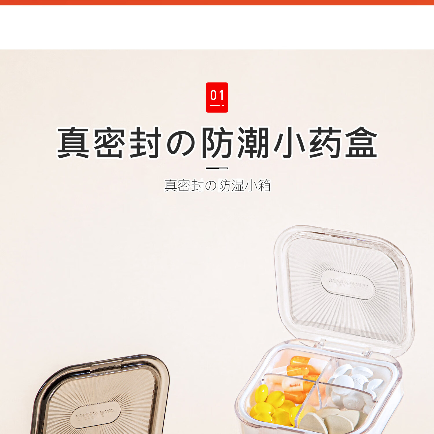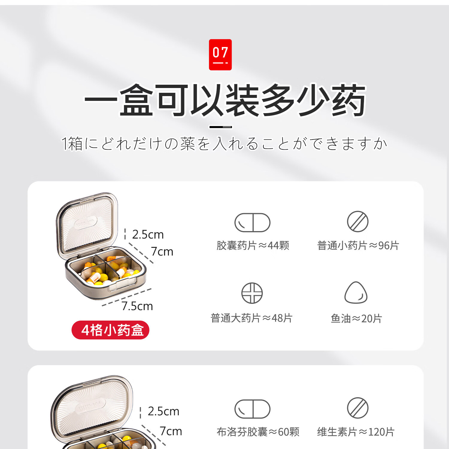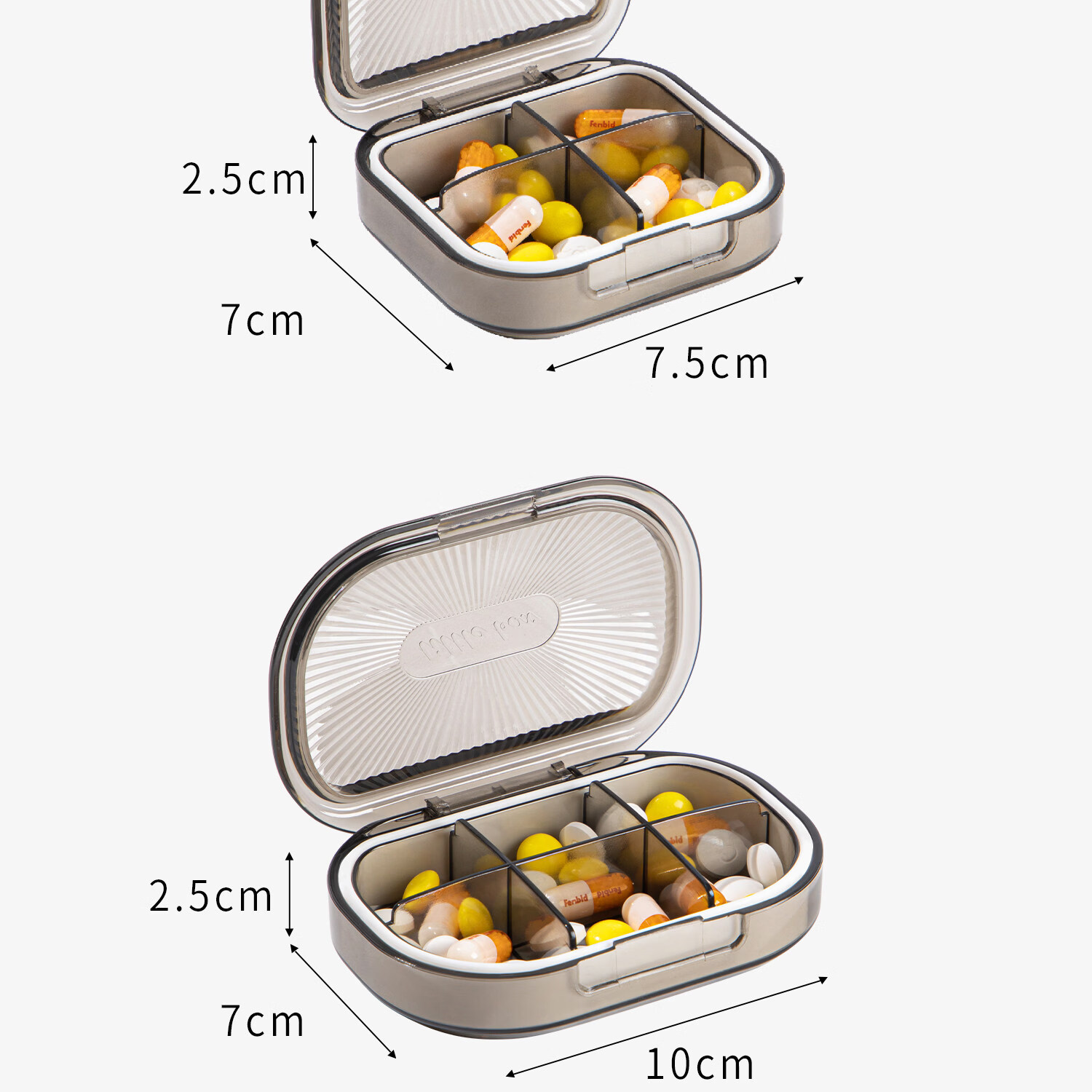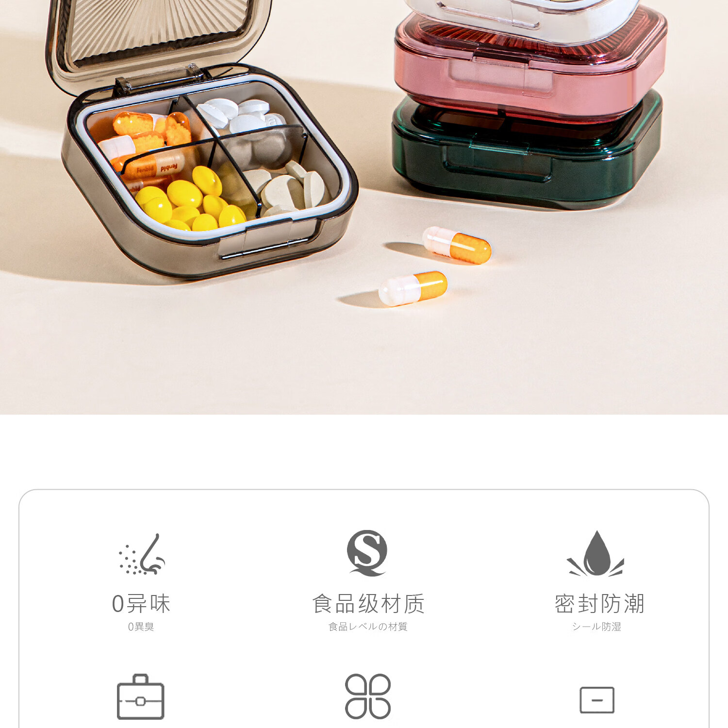 吱凡日本小药箱药盒便携分装式药丸药片分隔盒子随身迷你药物密封防潮 4格-透灰【密封防潮】