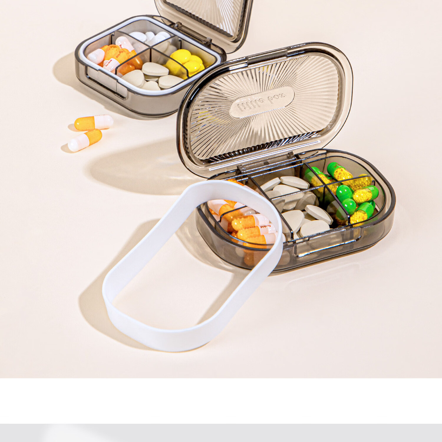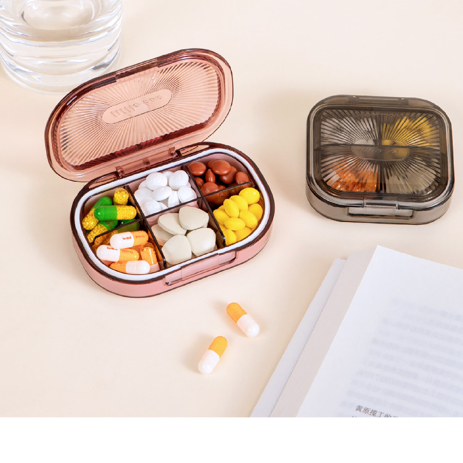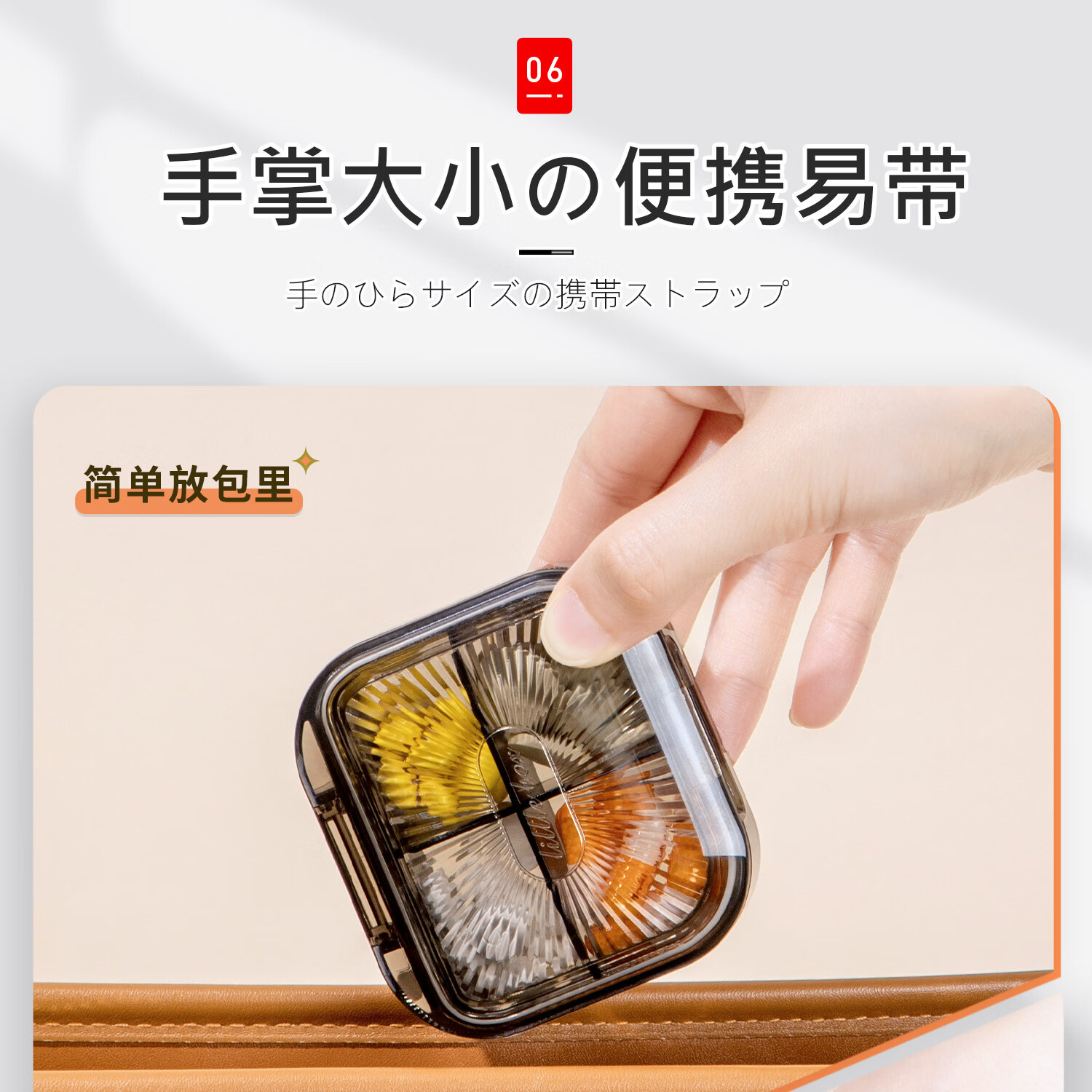 吱凡日本小药箱药盒便携分装式药丸药片分隔盒子随身迷你药物密封防潮 4格-透灰【密封防潮】