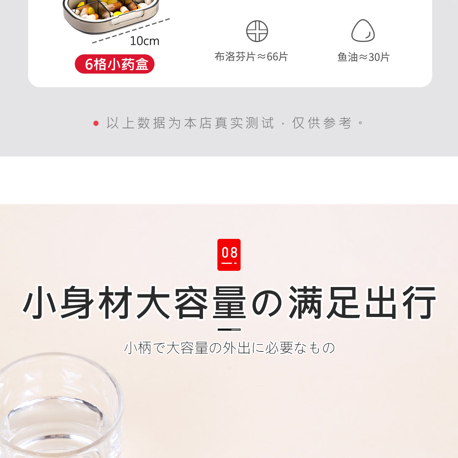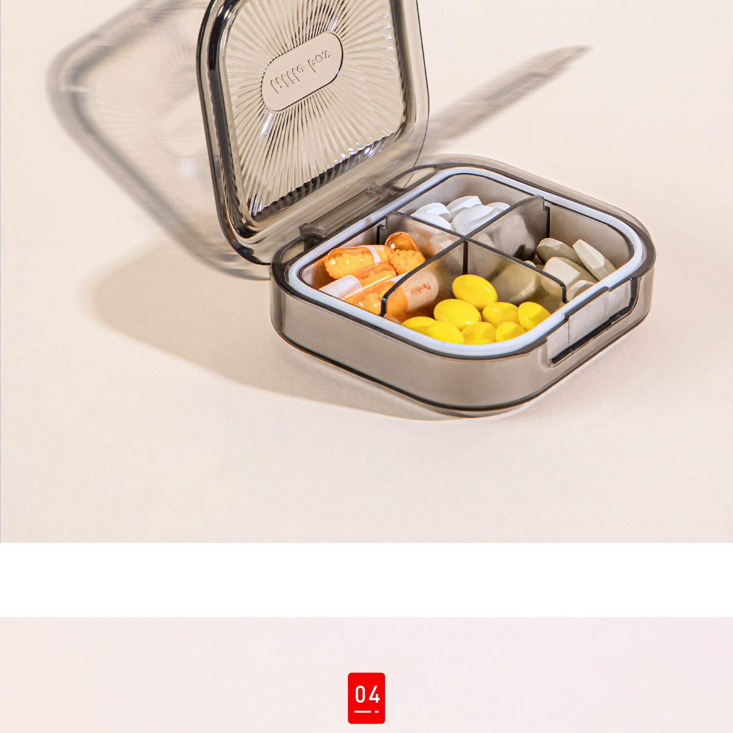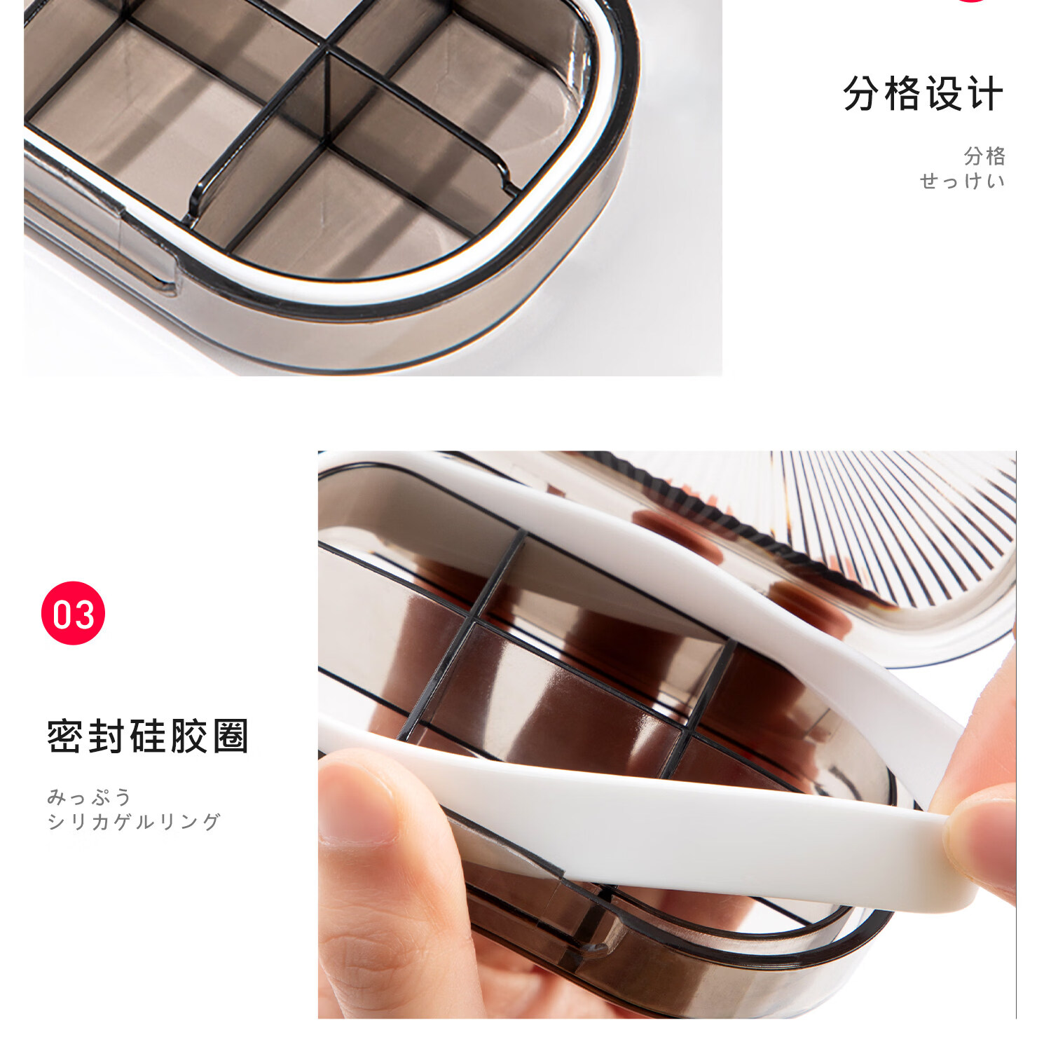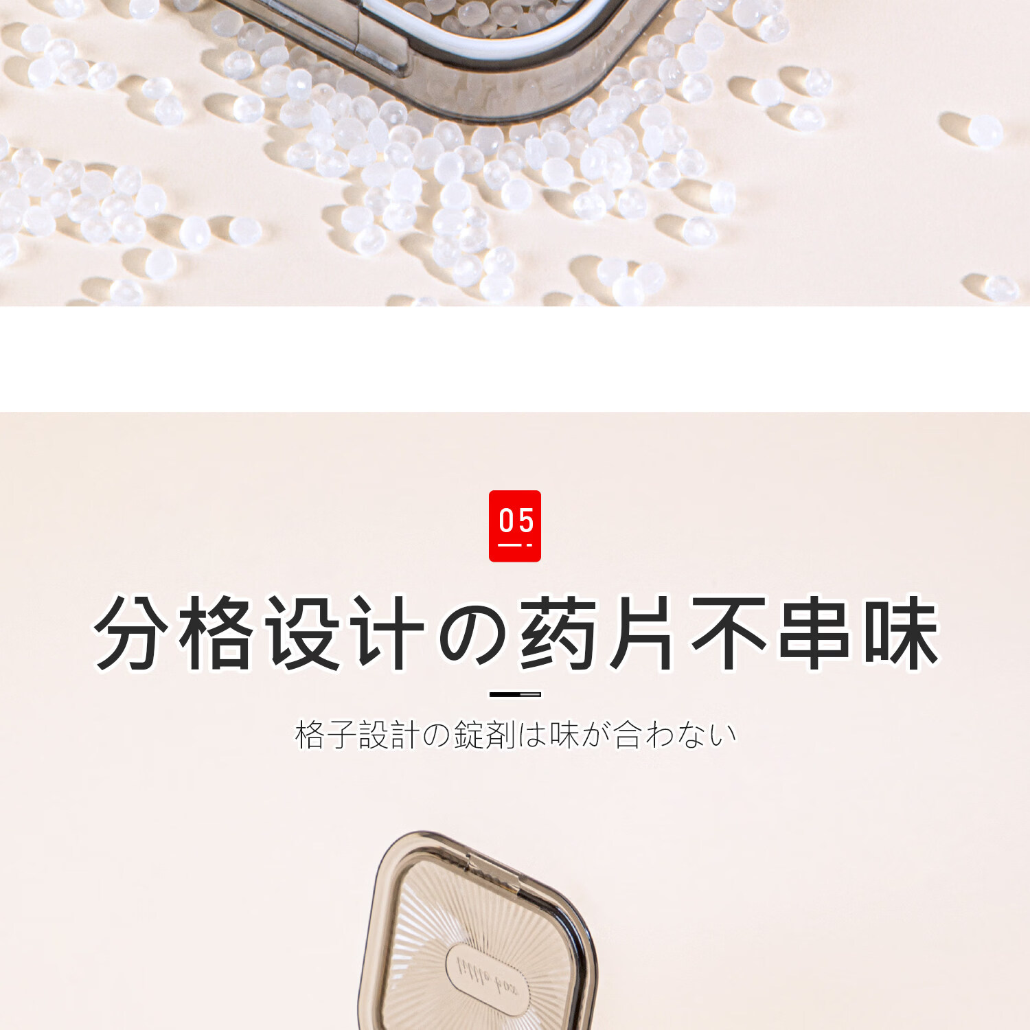 吱凡日本小药箱药盒便携分装式药丸药片分隔盒子随身迷你药物密封防潮 4格-透灰【密封防潮】