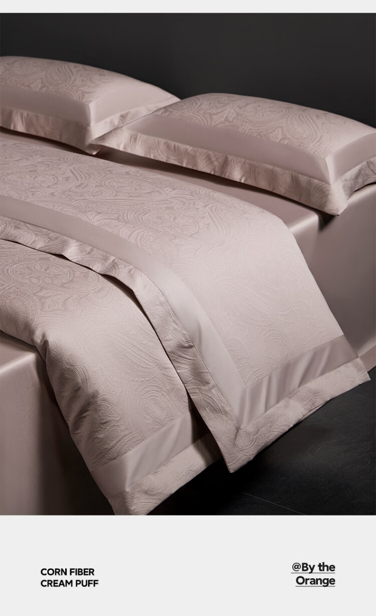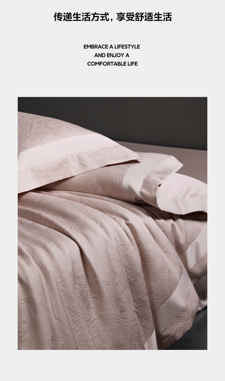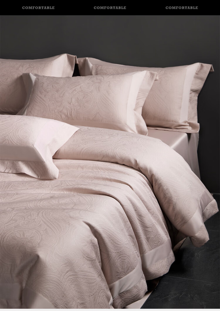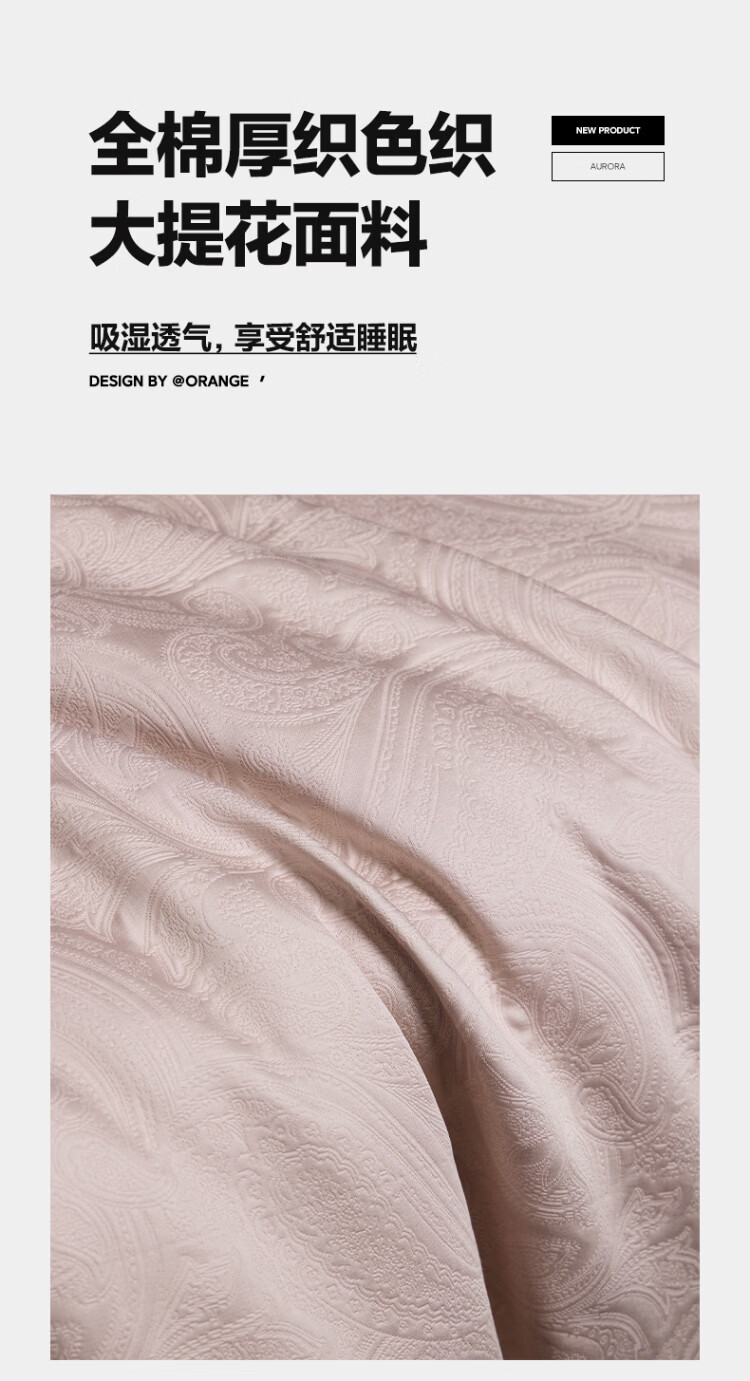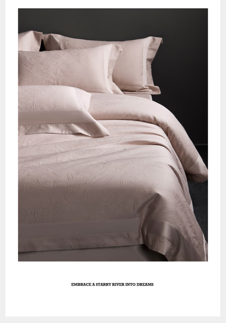 ROLAND LIVE全棉色织厚织浮雕大提花四件套简约高奢被套床单卧室裸睡床上用品 TGH 全棉提花四件套-弗罗伦萨米粉 1.5米床 床单款 【被套200*230cm】