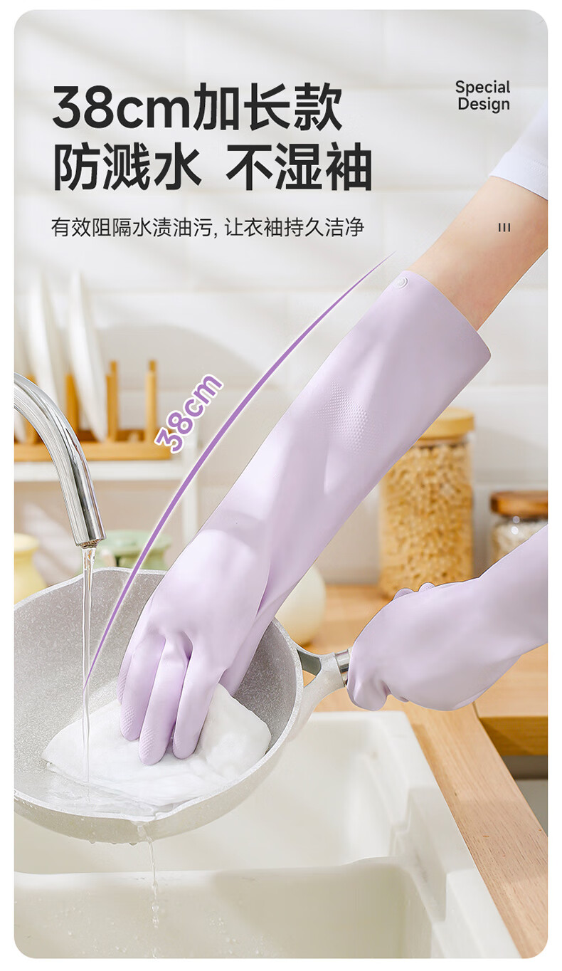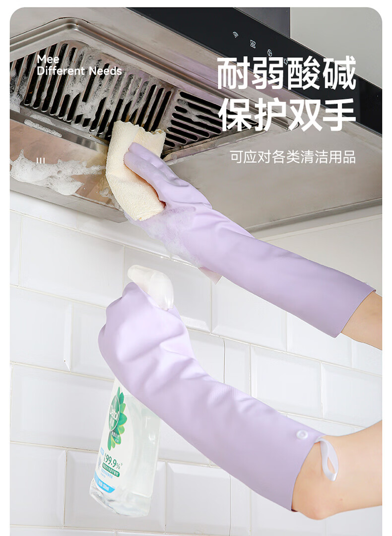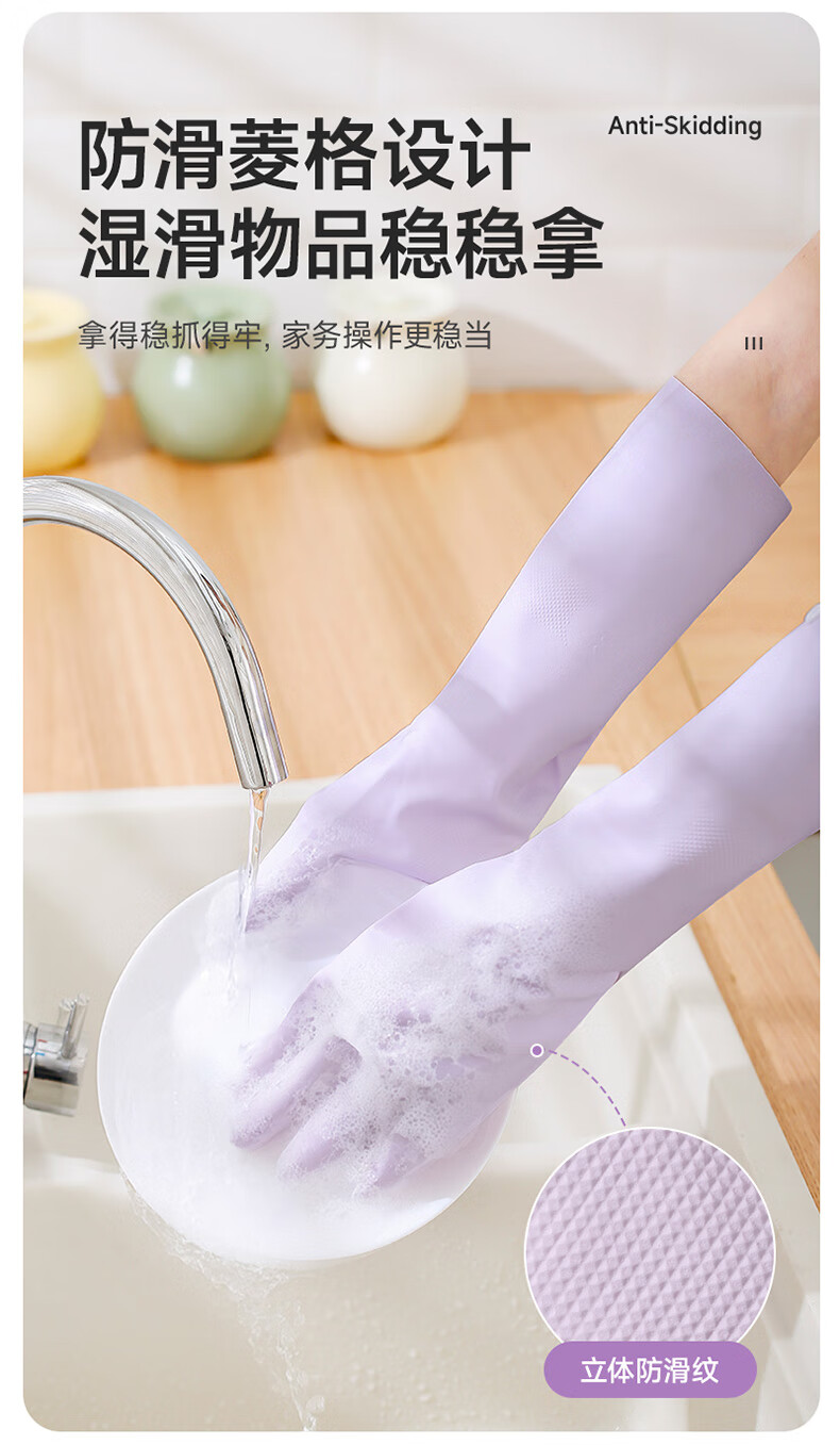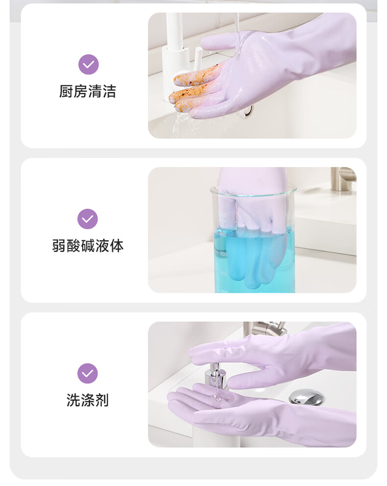美丽雅(MARYYA)挂绳丁腈手套 家用厨房清洁洗碗家务手套加厚防水洗衣服手套 紫色- 1双 -中号