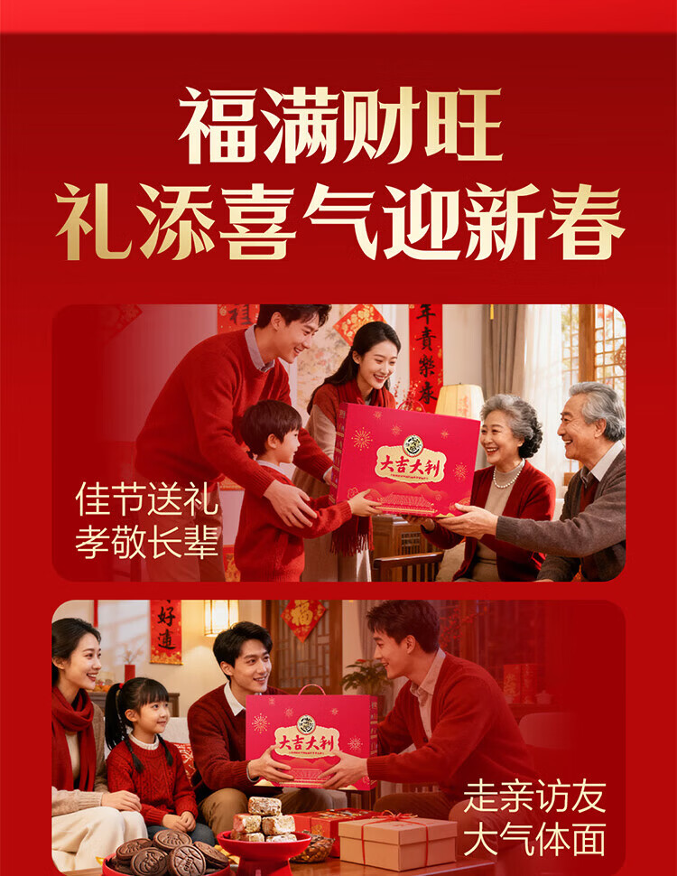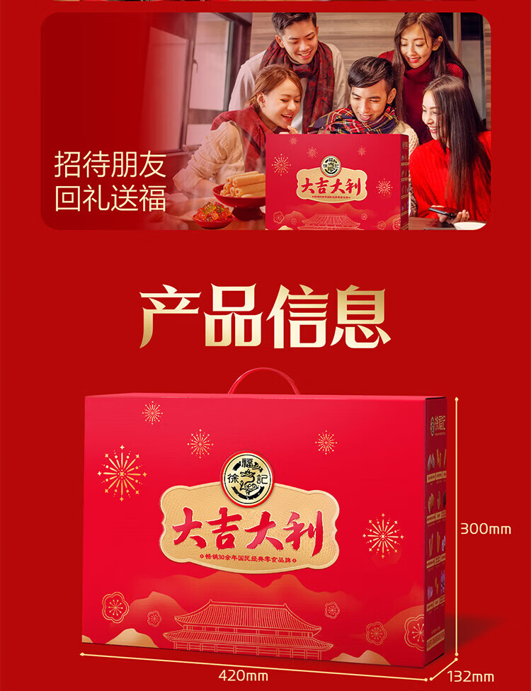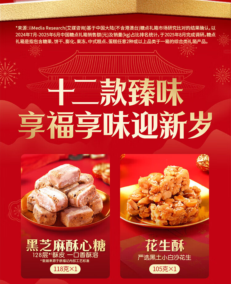 徐福记大吉大利经典礼盒1395g 糕点糖果零食大礼包精美礼盒