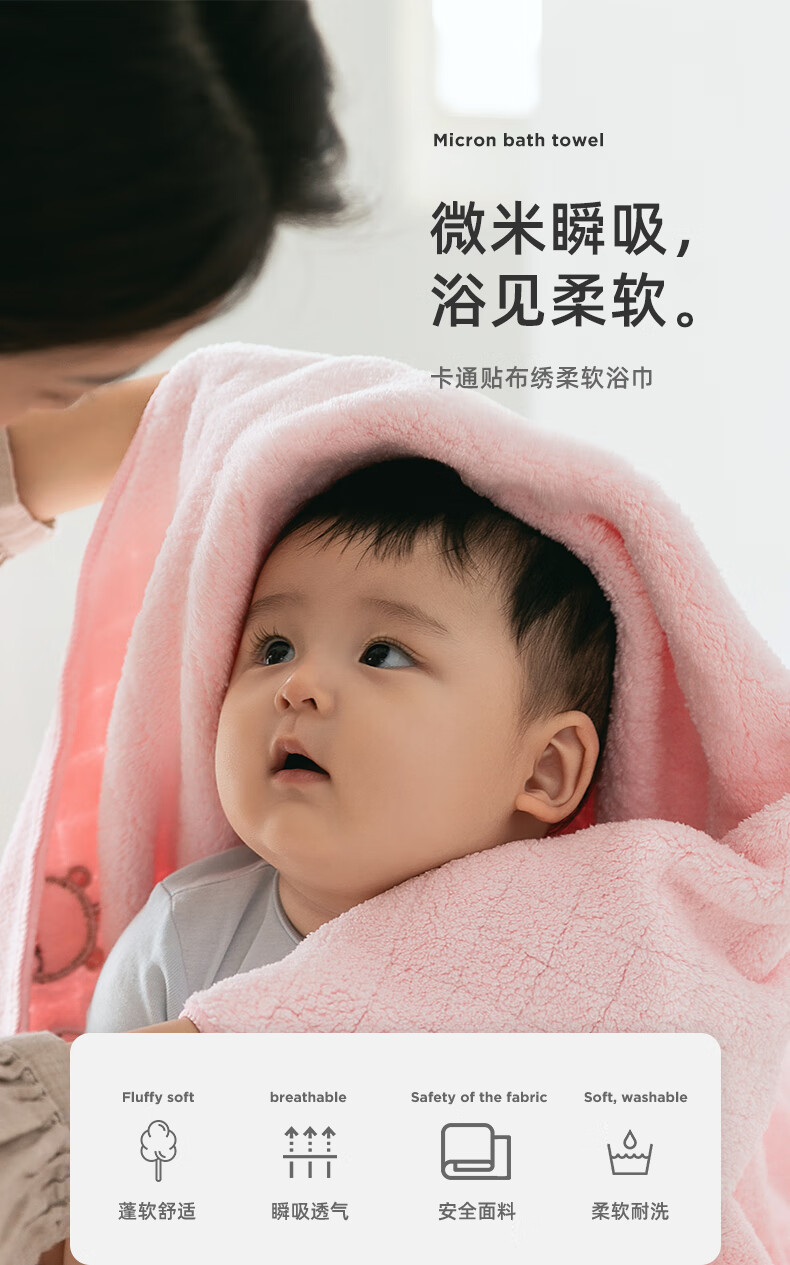 十月结晶婴儿浴巾纯棉纱布浴巾柔软吸水披风宝宝大毛巾 莓莓甜兔95*95