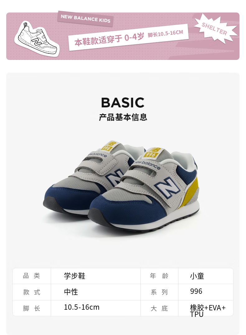 NEW BALANCE0-4岁小童秋季复古拼接多色学步鞋