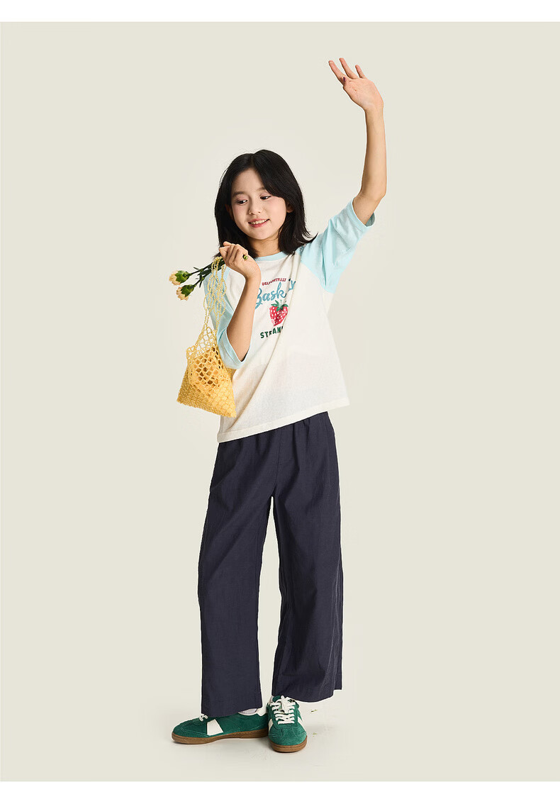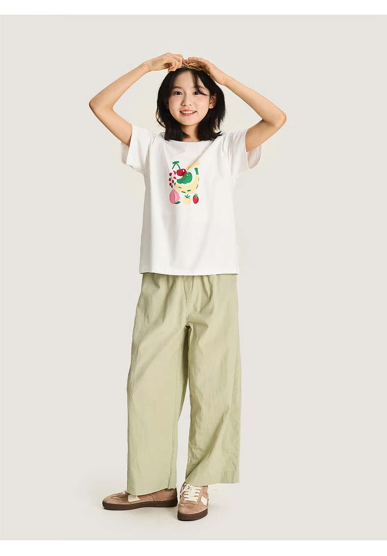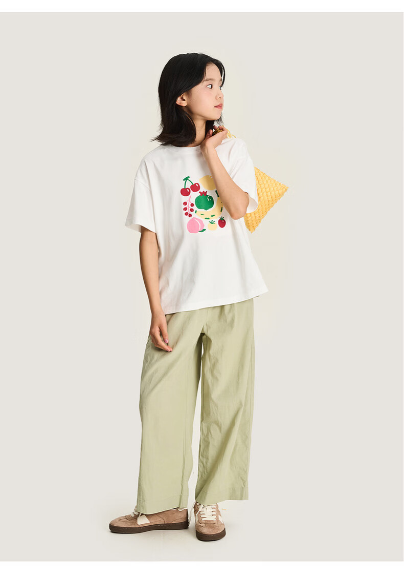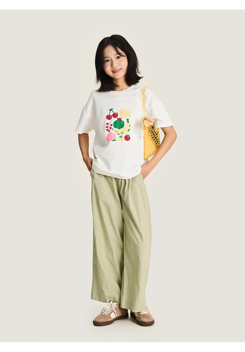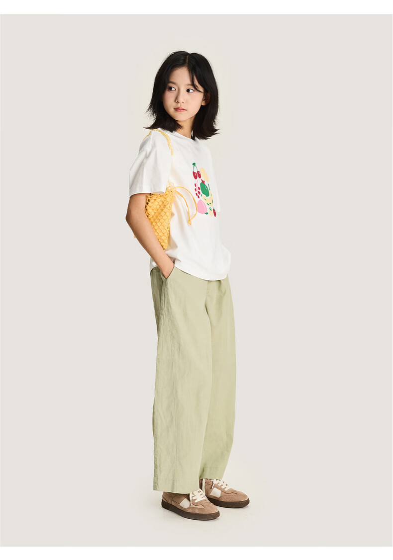 淘町女童裤子春季新款莱赛尔阔腿裤大童女孩休闲直筒长裤儿童裤女 黄绿色 170 /L|105-120斤