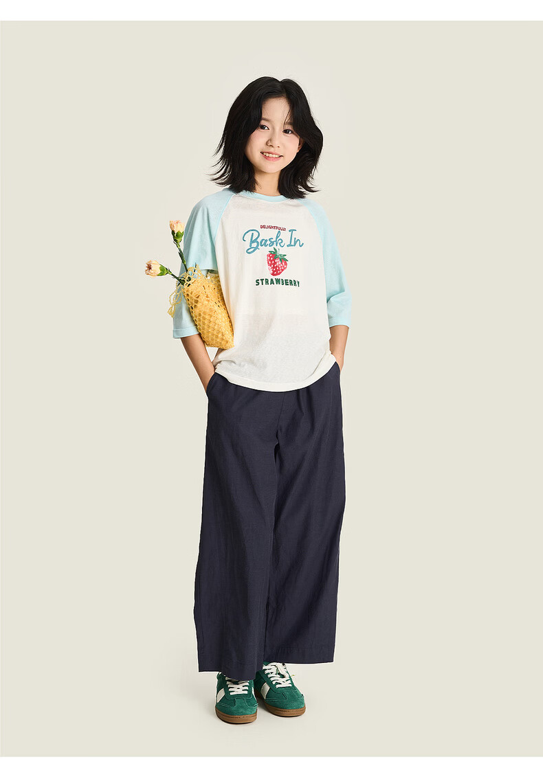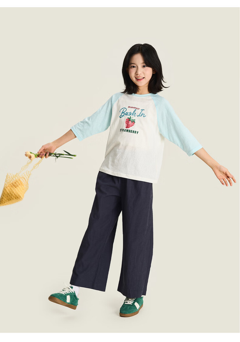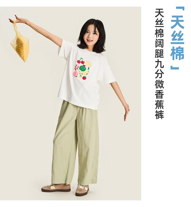 棉叔叔【天丝棉阔腿裤】棉叔叔女童春夏新品宽松阔腿9分裤男童裤子3.18 薄荷绿 120 120