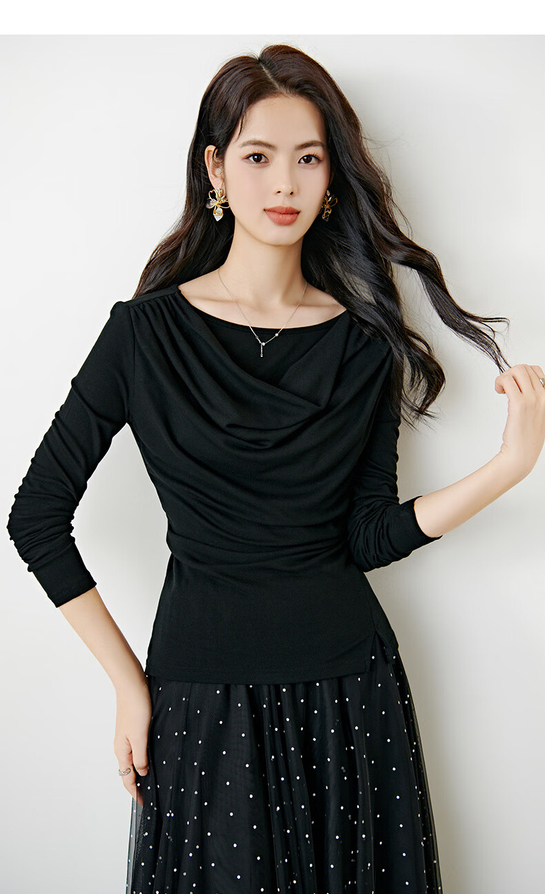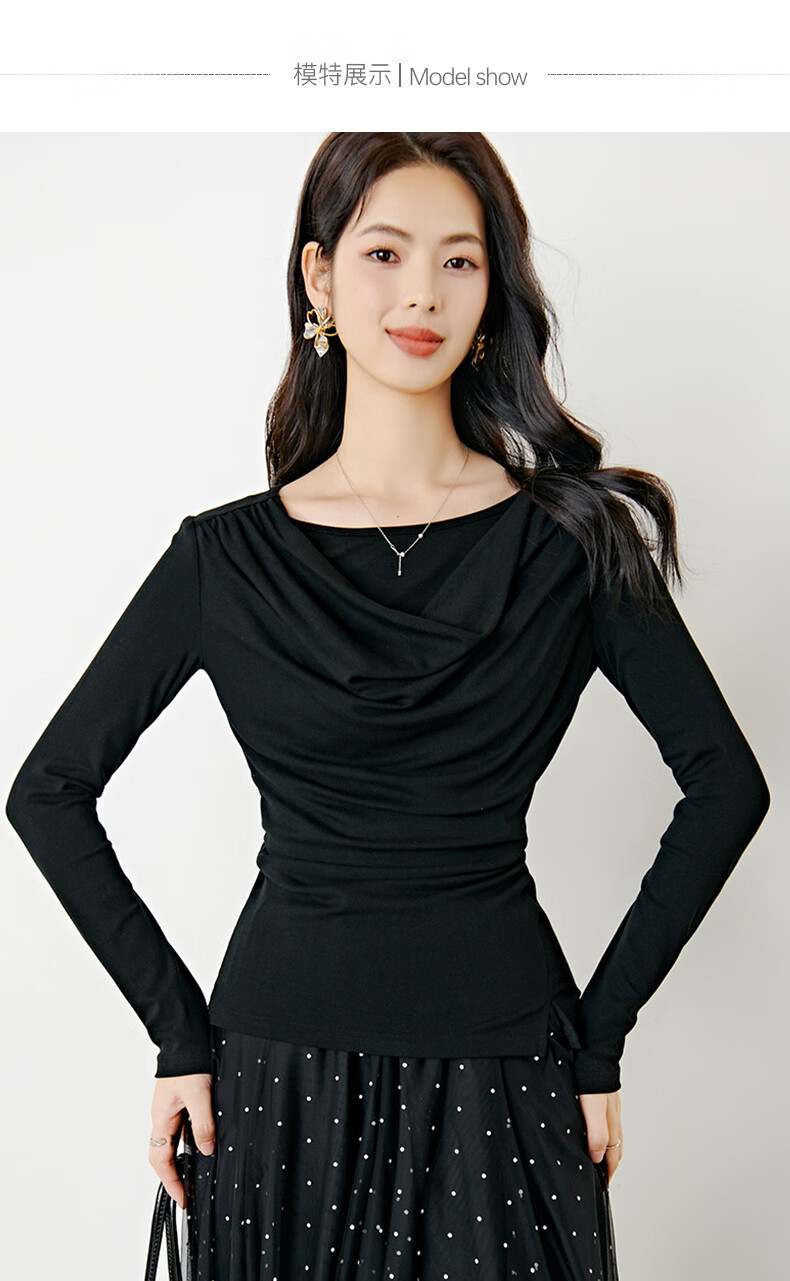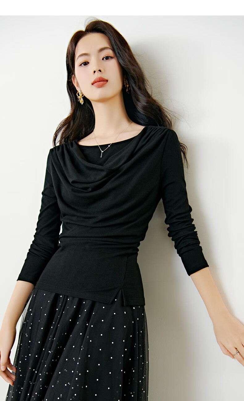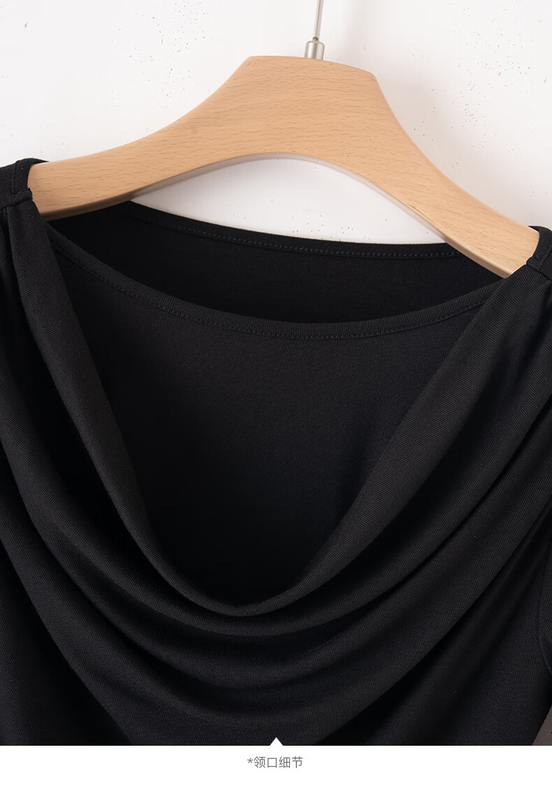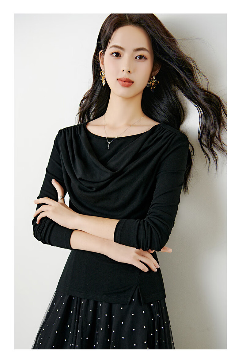 晚白【新品】2026年春款时尚堆堆领上衣亲肤柔软修身舒适T恤衫女 黑色 L