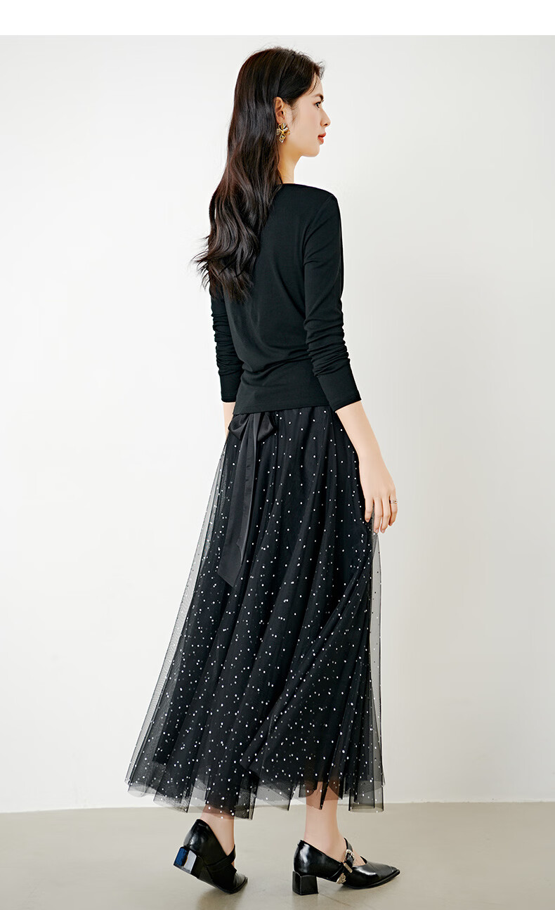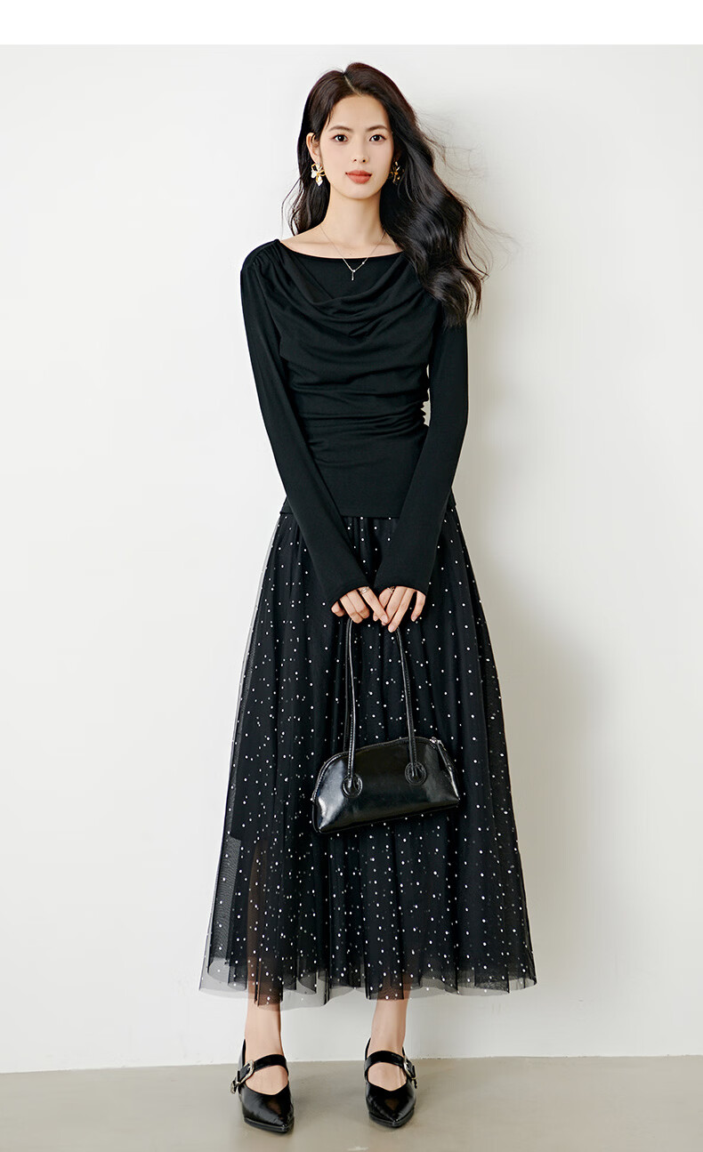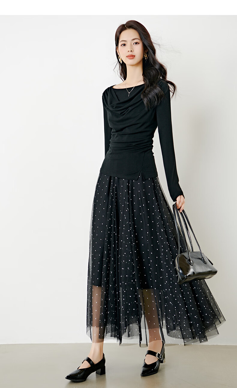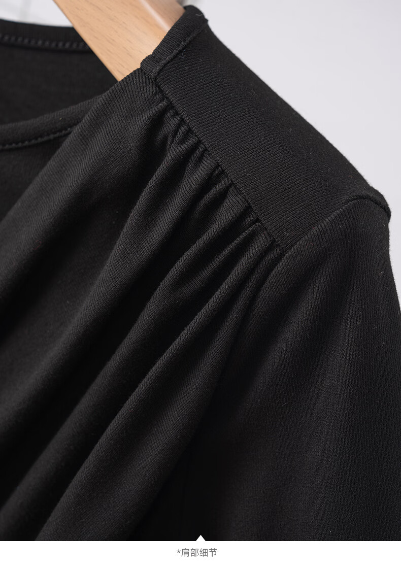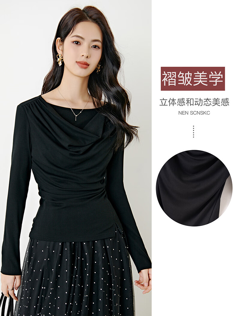 晚白【新品】2026年春款时尚堆堆领上衣亲肤柔软修身舒适T恤衫女 黑色 L