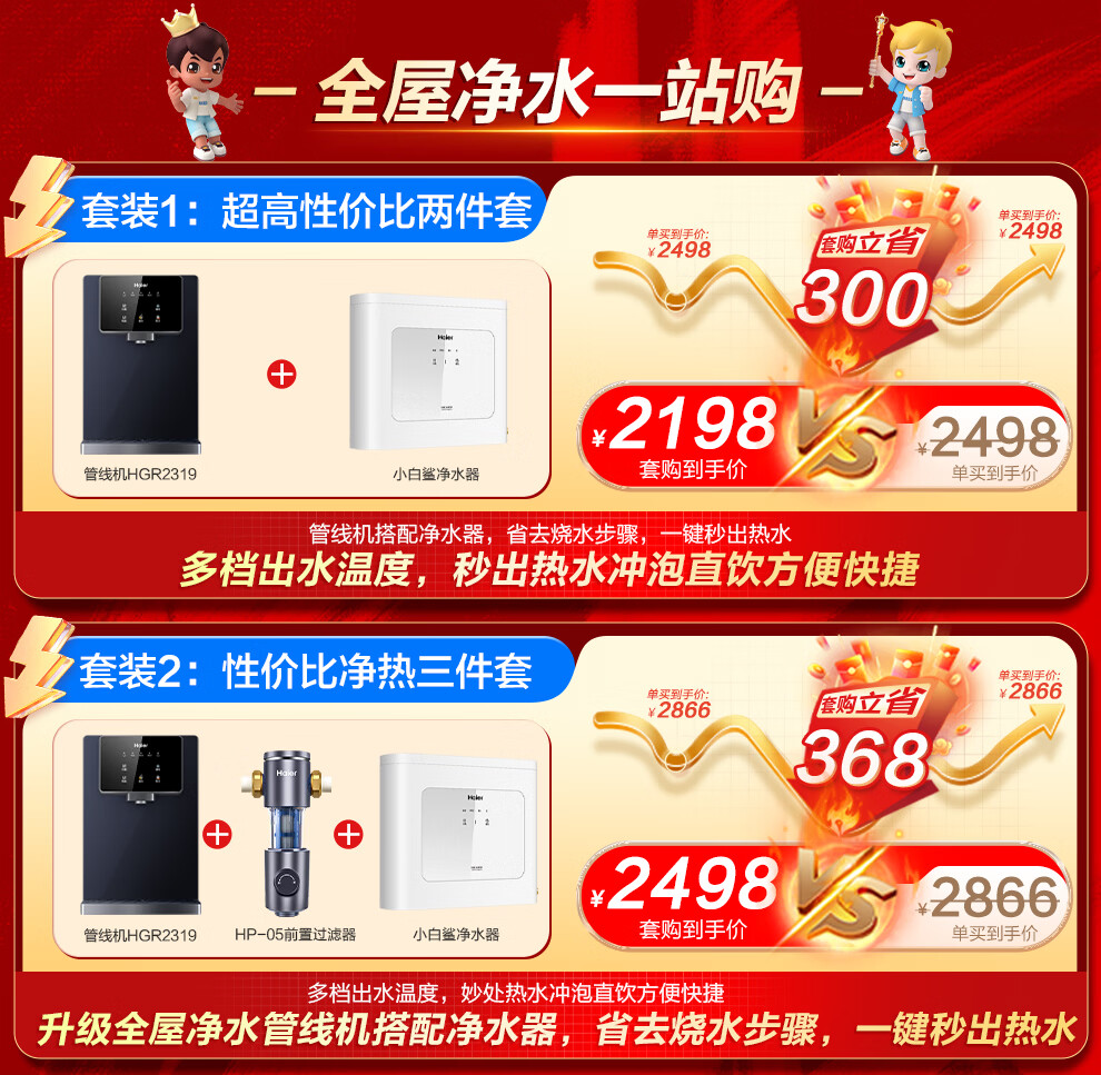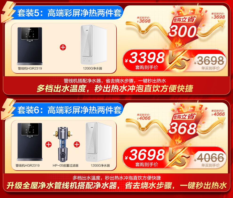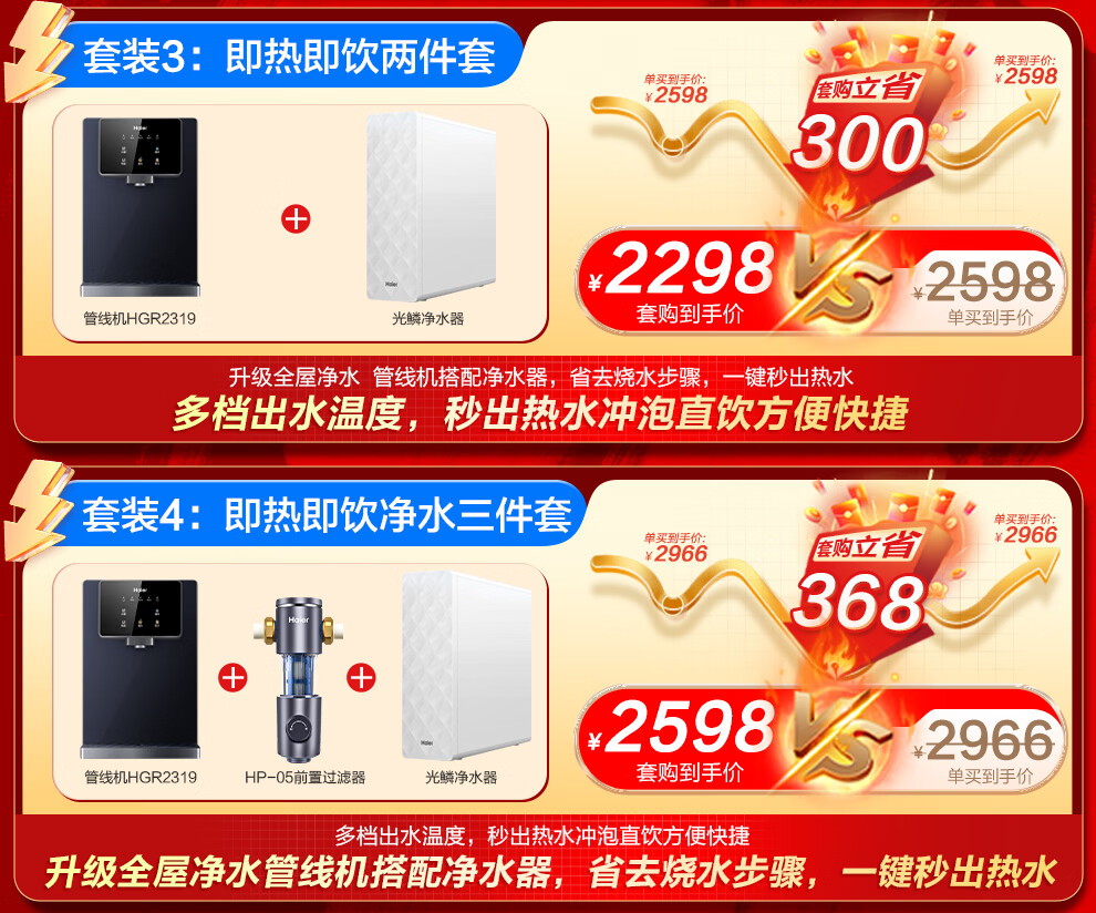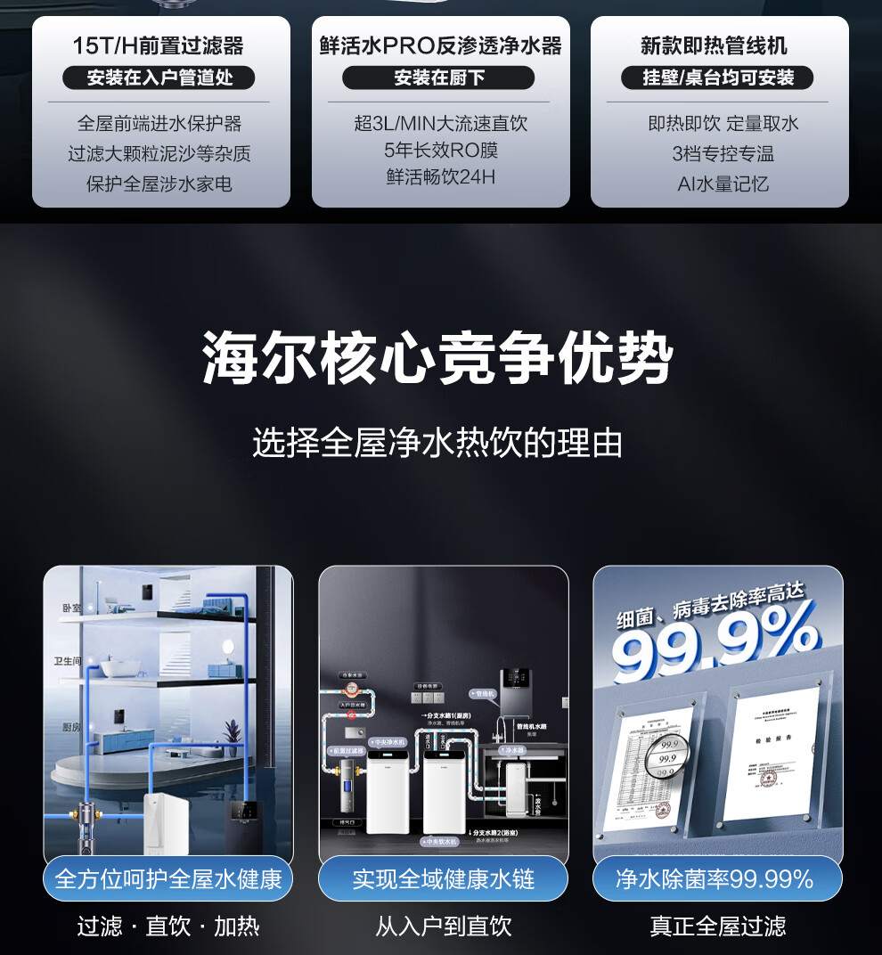 海尔(Haier)净水器家用厨下式RO反渗透加热直饮一体机餐边柜壁挂式管线机官方全屋前置过滤器直饮机净水套装 【全新上市】炫彩大屏管线机