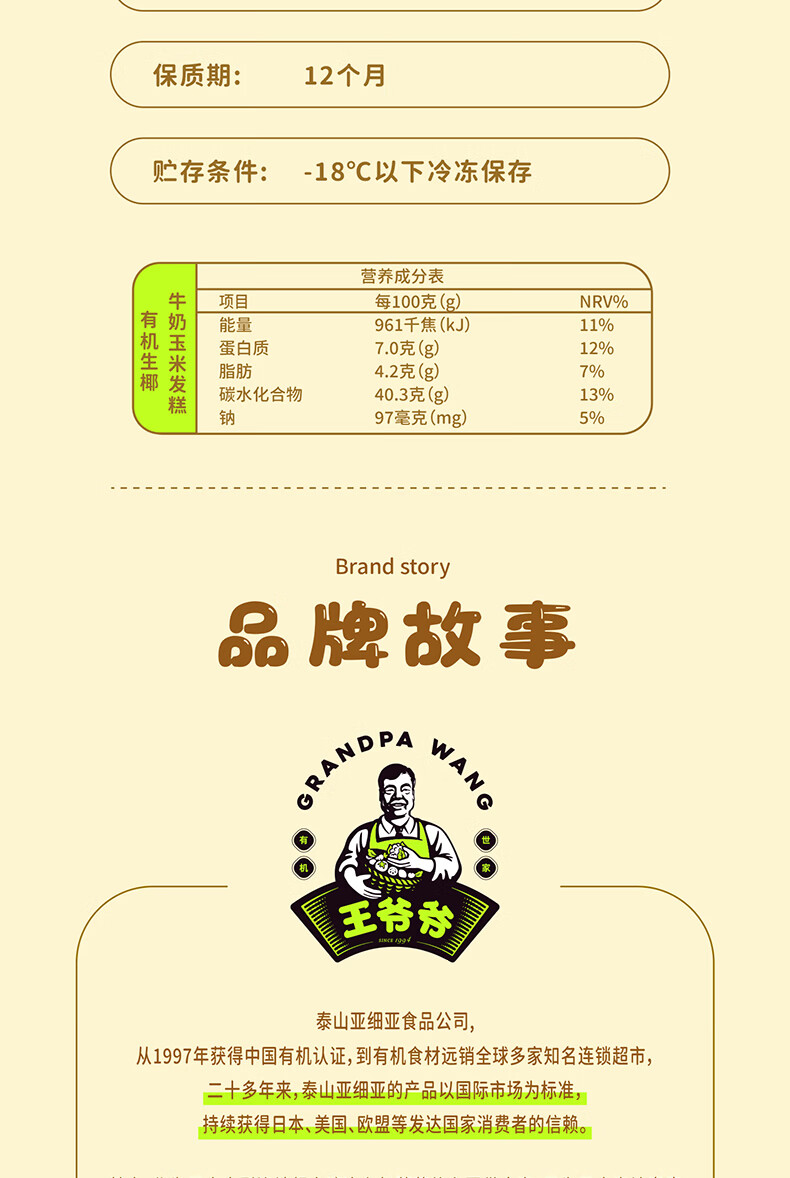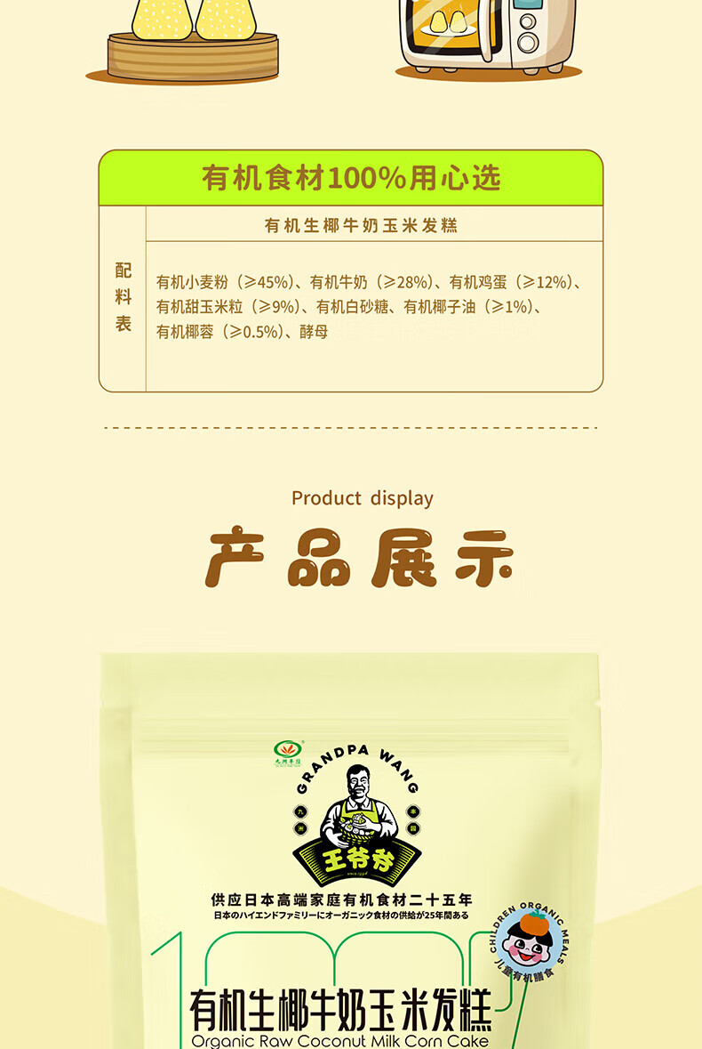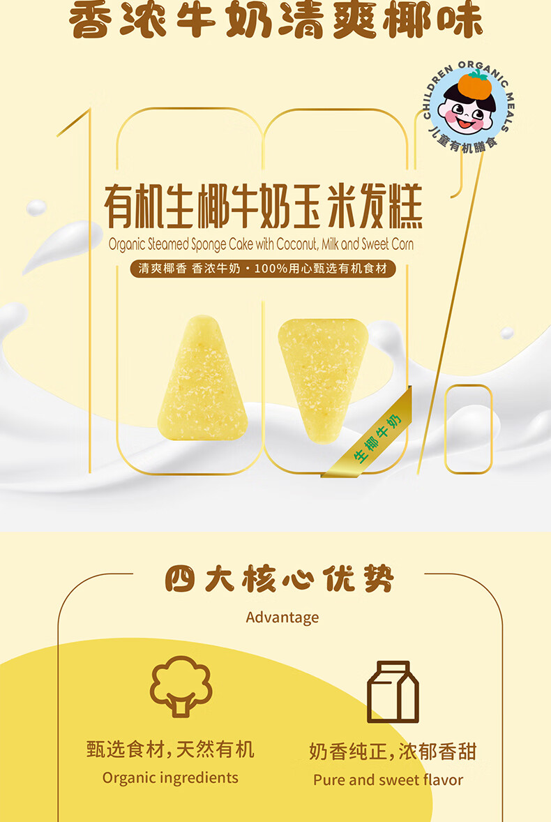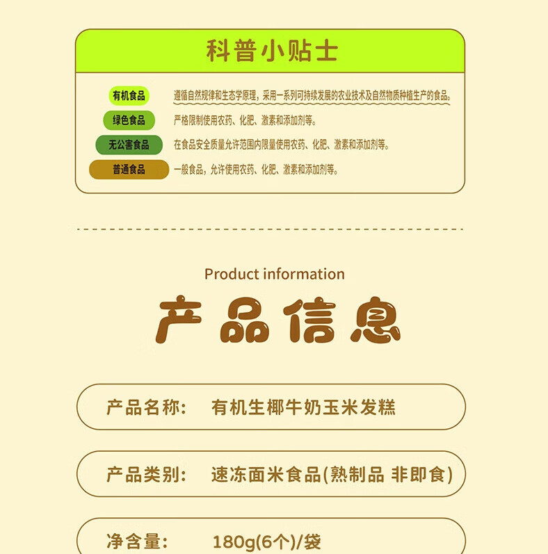 九洲丰园有机生椰牛奶玉米发糕180g*2袋(12块)速冻儿童早餐食品开学季