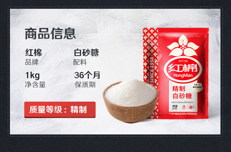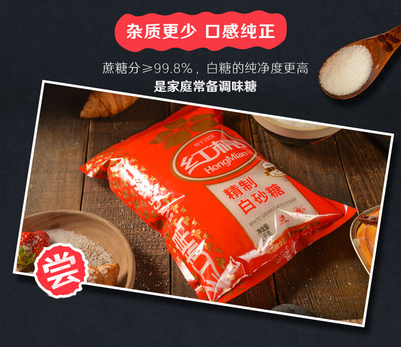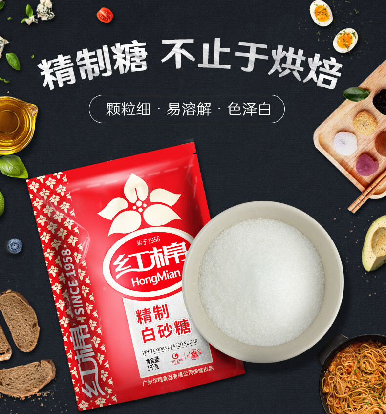 红棉 精制易溶细砂糖烘焙用糖大包装白砂糖 1kg