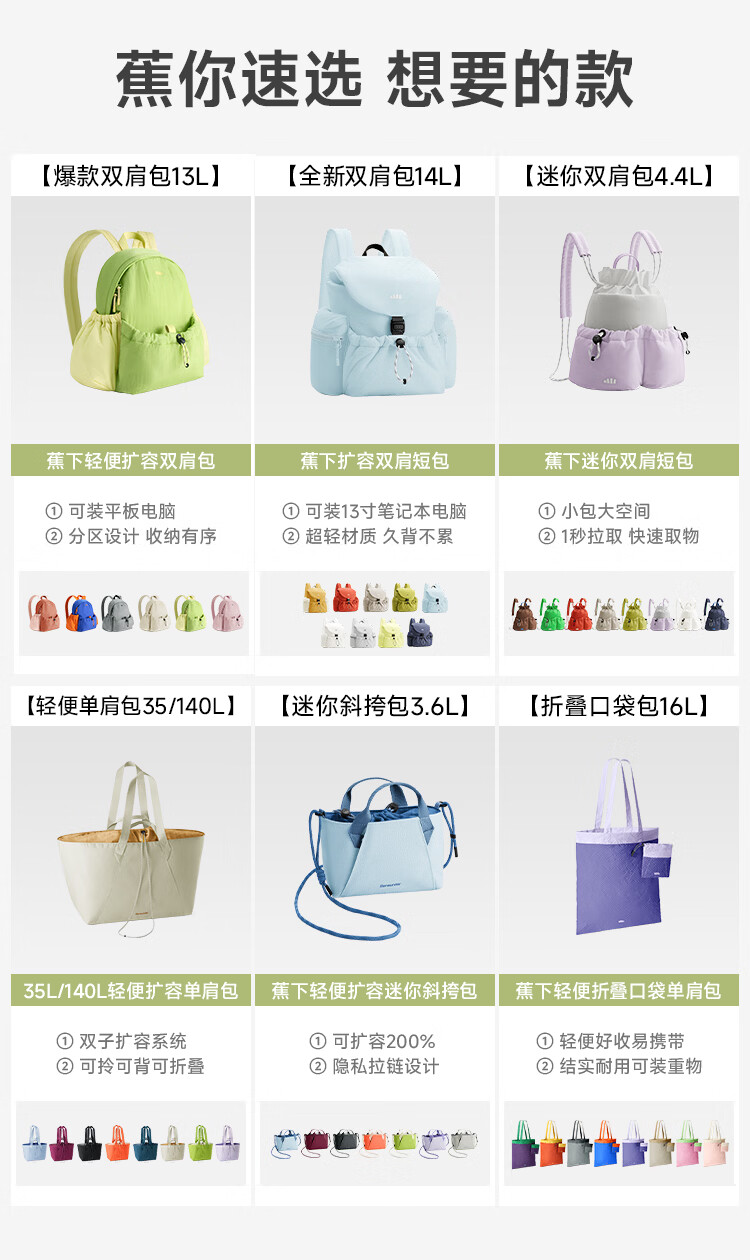 蕉下(beneunder)女包2026新款包包女包轻便双肩包背包通勤迷你双肩包包礼物送女生