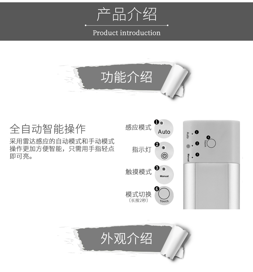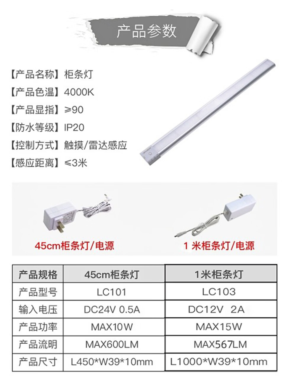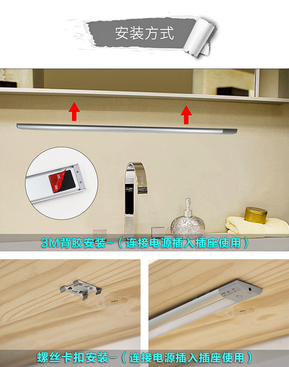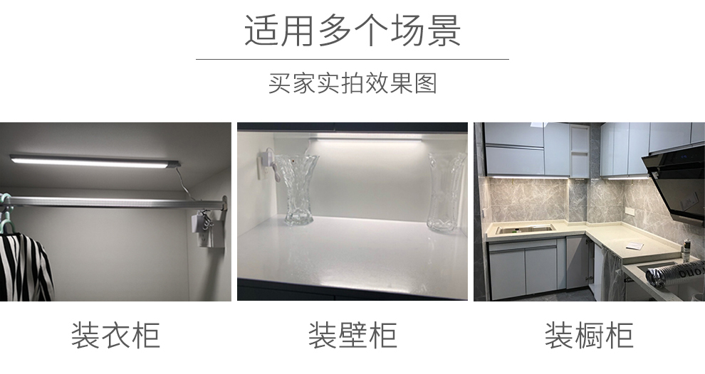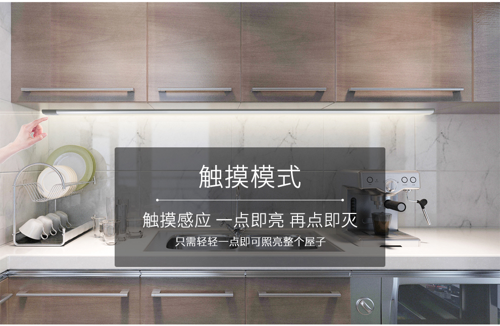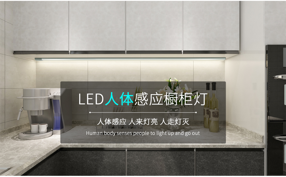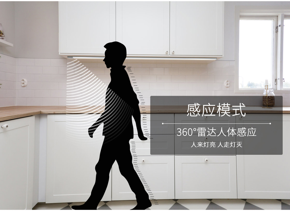 宝斯恩插电式有线橱房灯 免打孔led橱柜切菜灯雷达人体感应灯条超薄10mm 暖白光 45cm 10W
