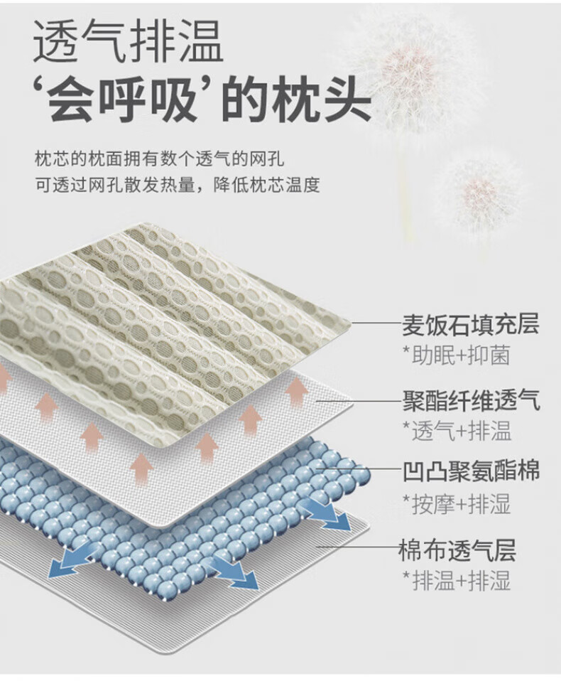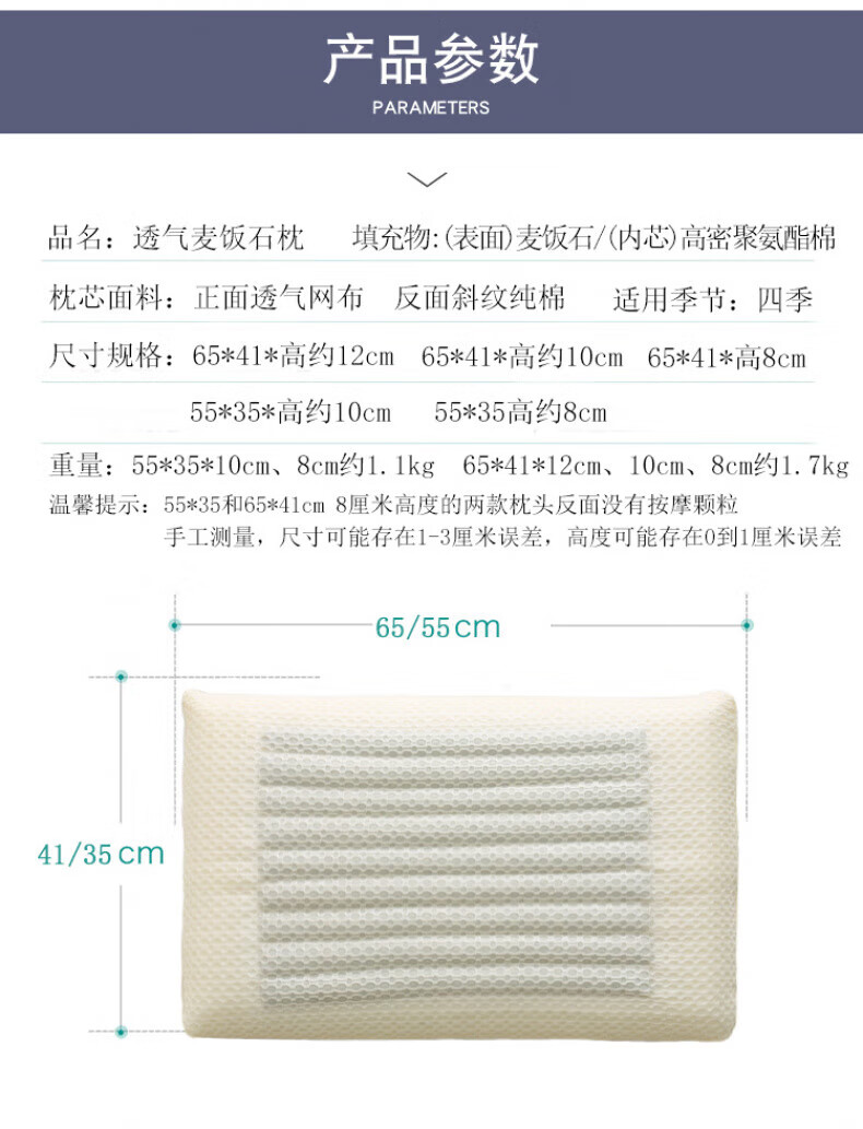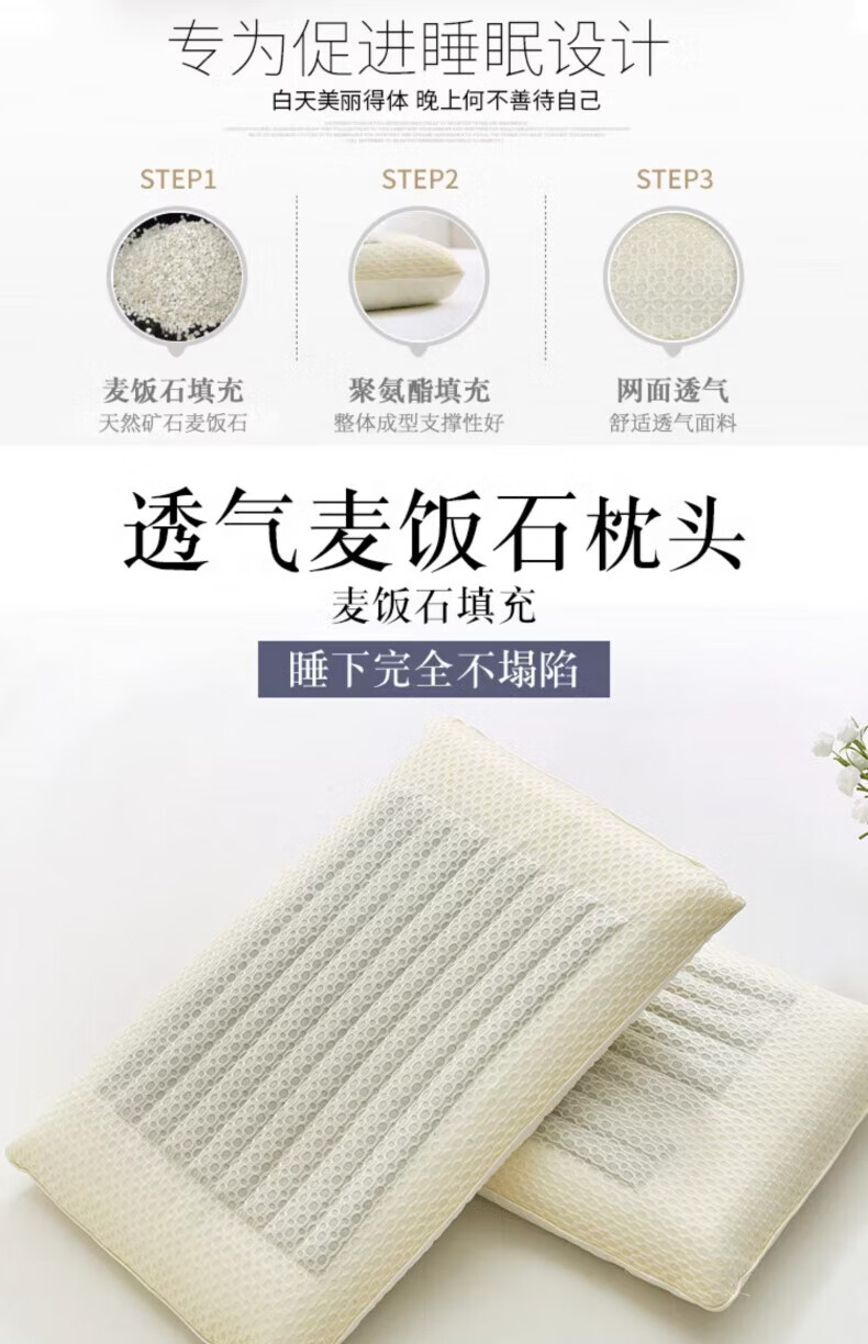 DEATKN德国麦饭石硬枕头记忆枕护颈椎海绵枕芯成人助眠不变形不塌陷 透气麦饭石【65*41*高 12cm】 硬不塌陷