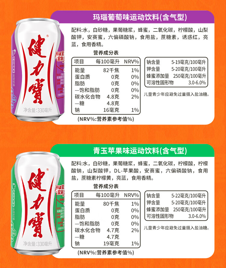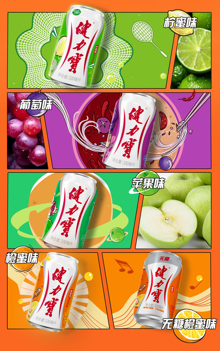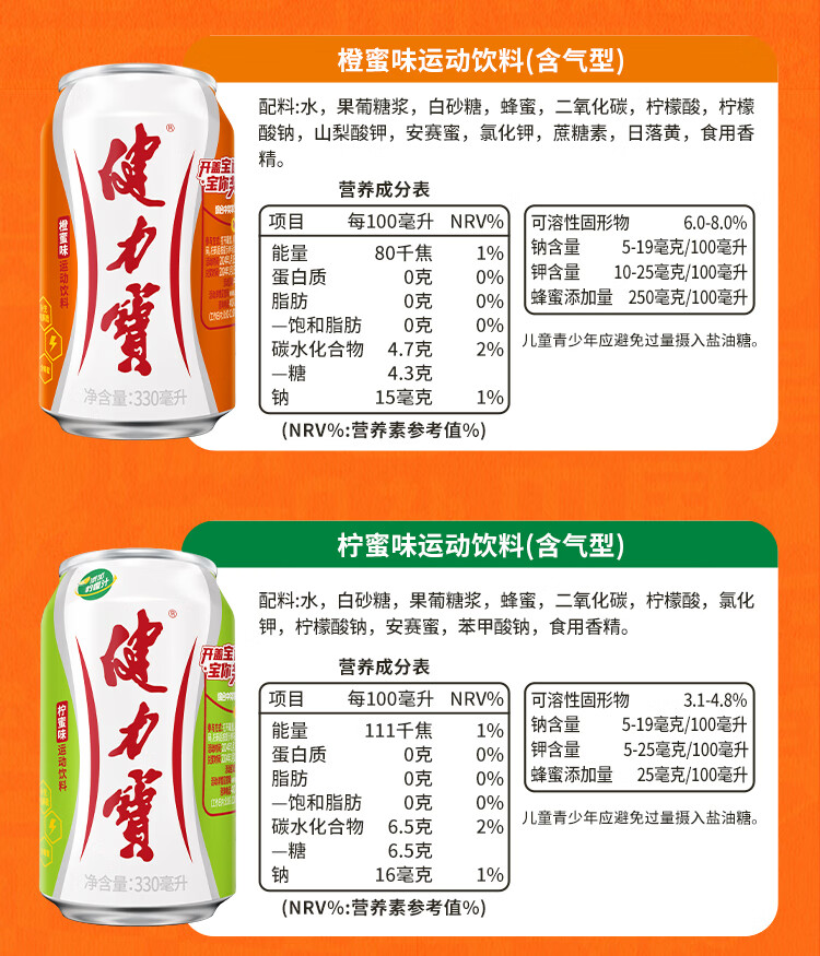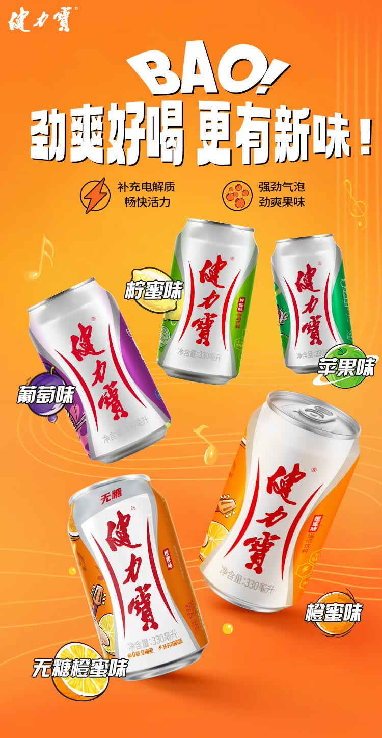健力宝柠蜜味玛瑙葡萄味含电解质运动碳酸饮料330ml聚餐送礼整箱装饮品 经典柠蜜*24罐-包装随机发(生产日期25年5月) 330ml