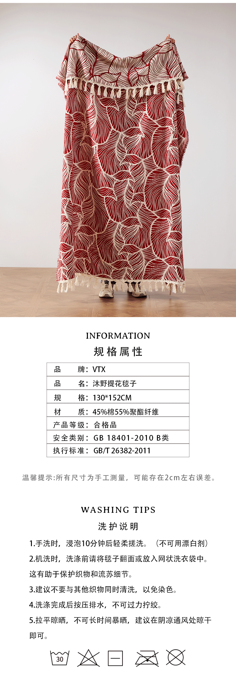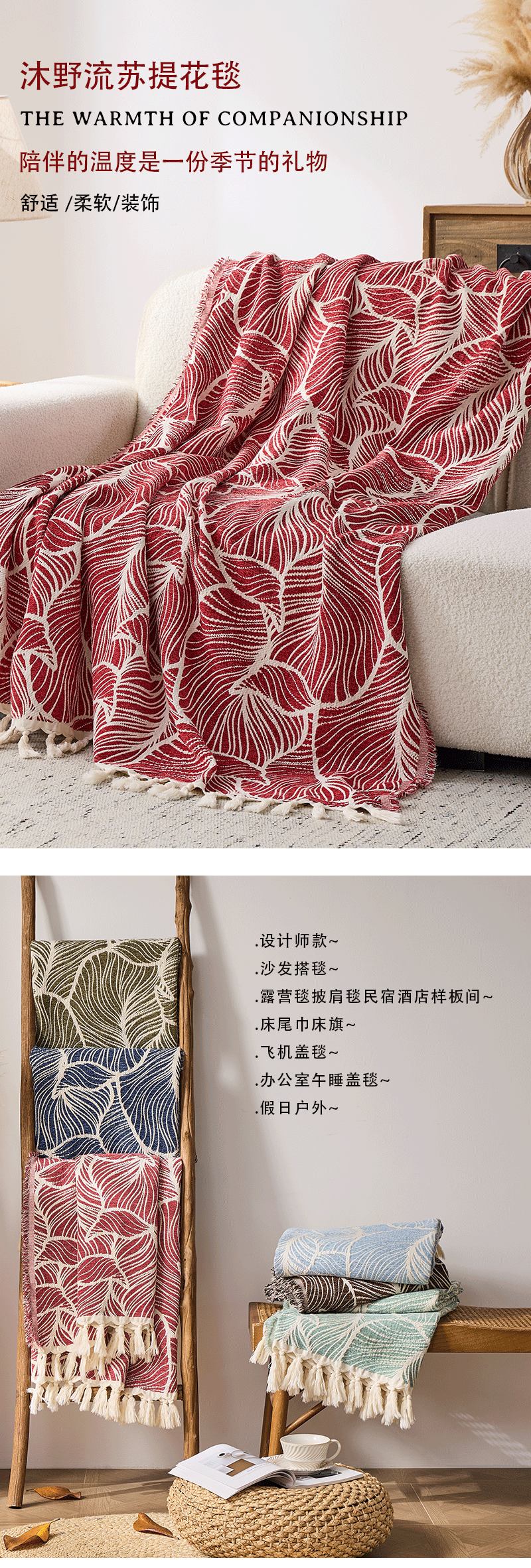 VTX外贸欧美午睡毯休闲毯车载沙发毯全盖毯流苏毯田园小清新保暖披肩 浅绿 127*153CM