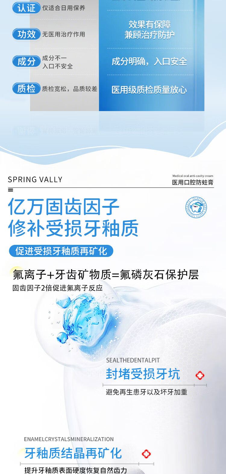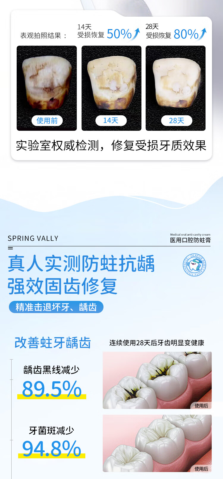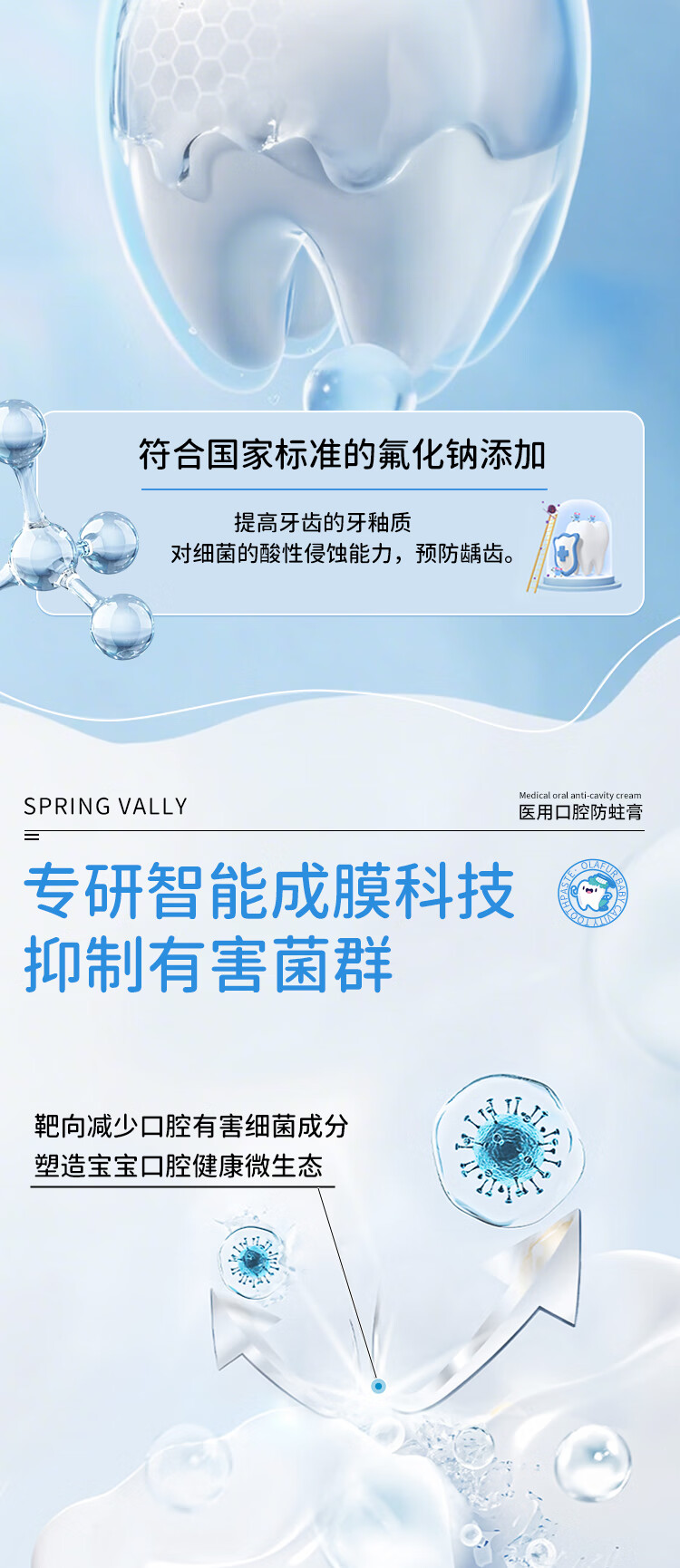 SPRING VALLEY儿童牙膏3-6-15岁换牙期防蛀含氟抗糖青少年初中生专用可吞去黄渍 防龋护齿100g2支【有效固齿抑菌】
