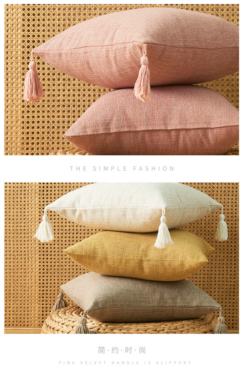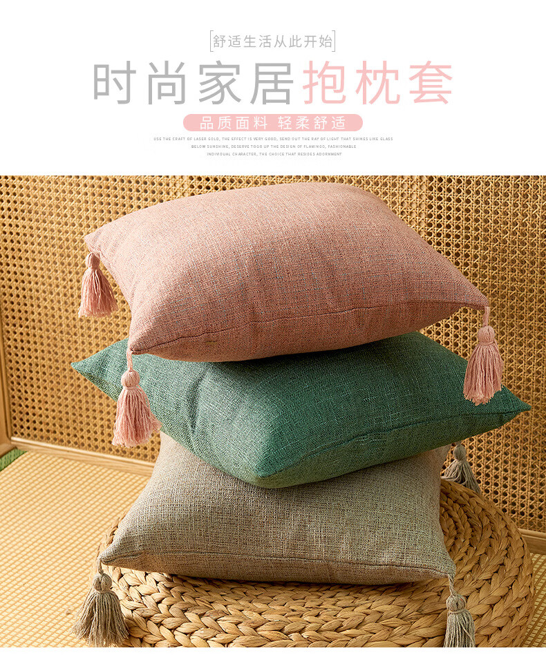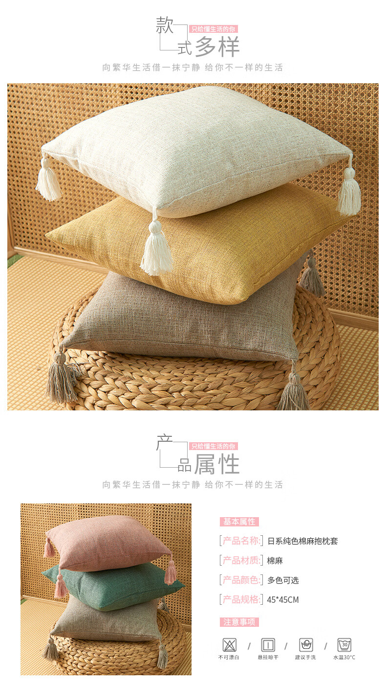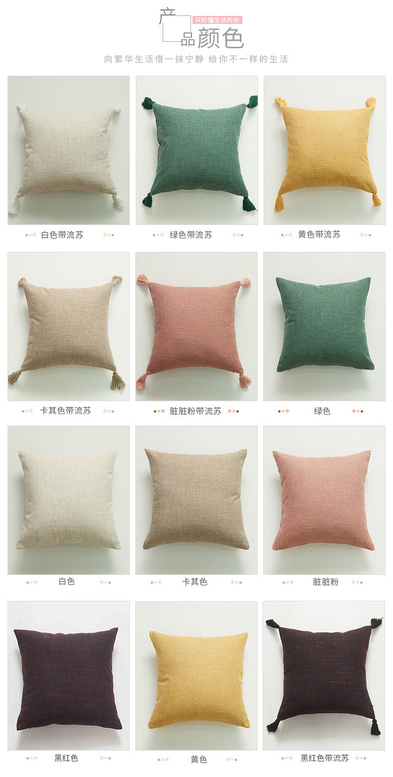 【严选直发】日系纯色棉麻流苏靠枕套家用文艺风抱枕沙发靠枕不含 黑红色不带流苏 45*45cm(不带芯子