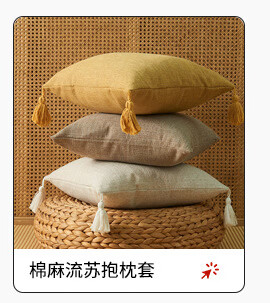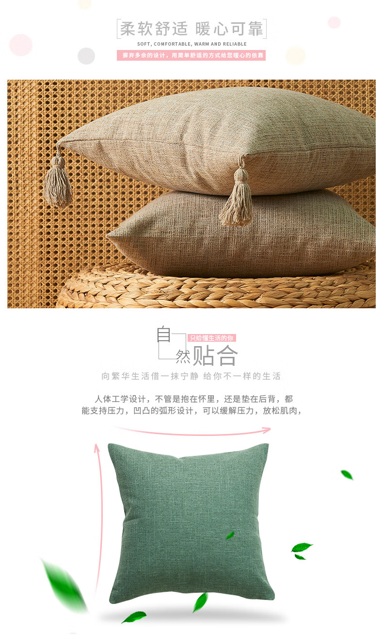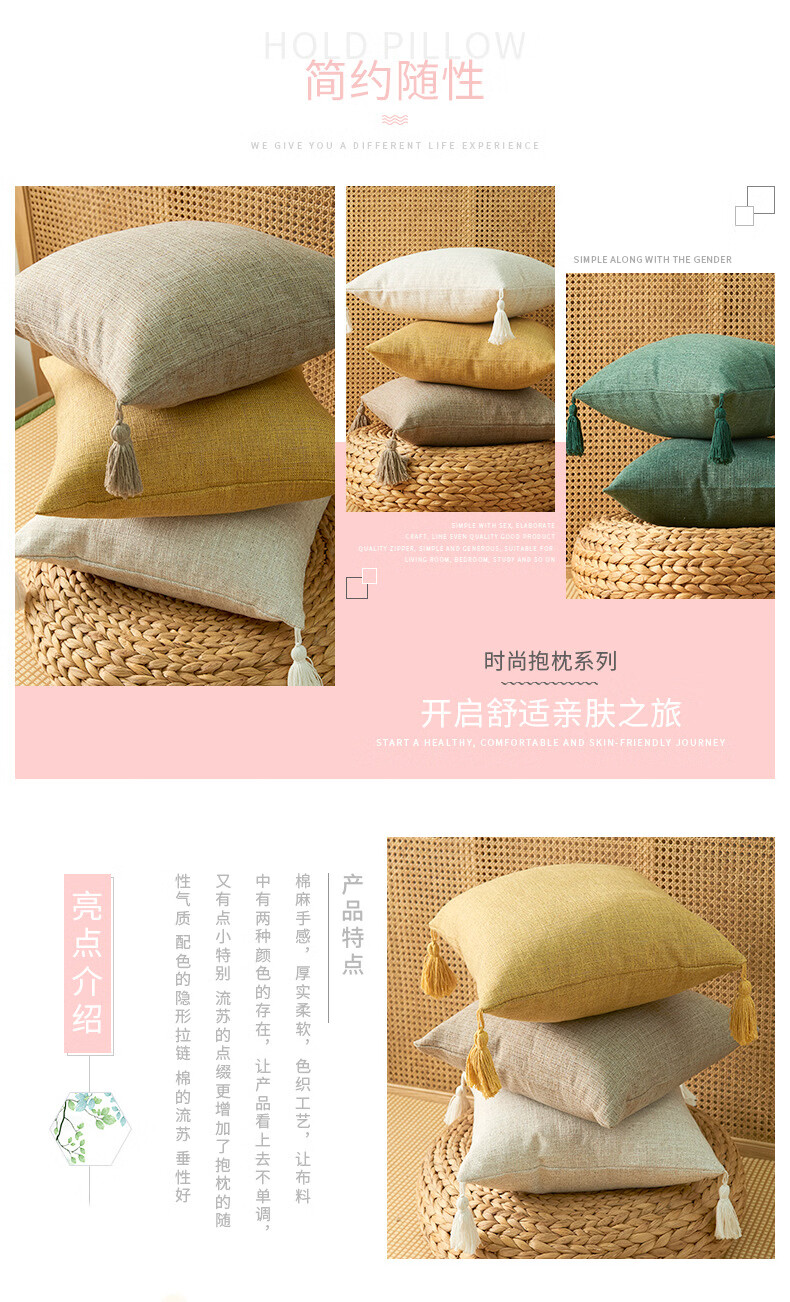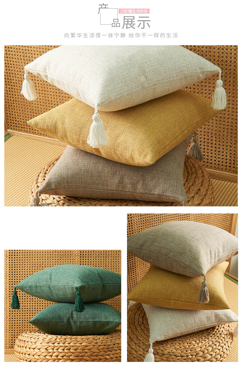 【严选直发】日系纯色棉麻流苏靠枕套家用文艺风抱枕沙发靠枕不含 黑红色不带流苏 45*45cm(不带芯子