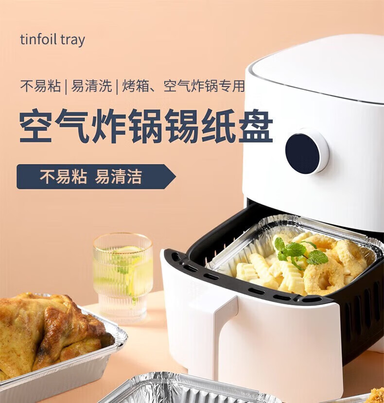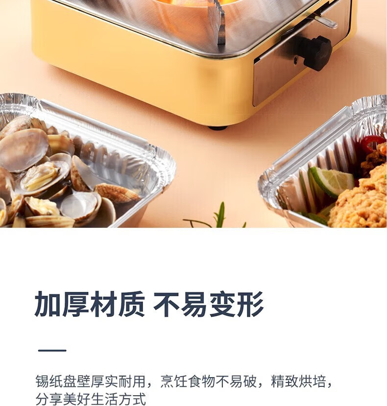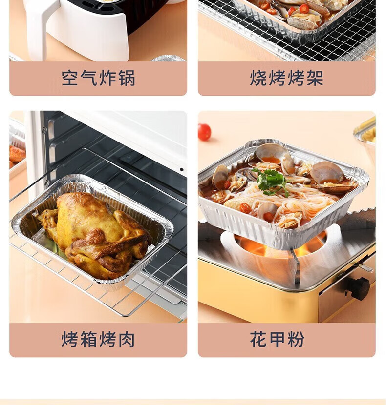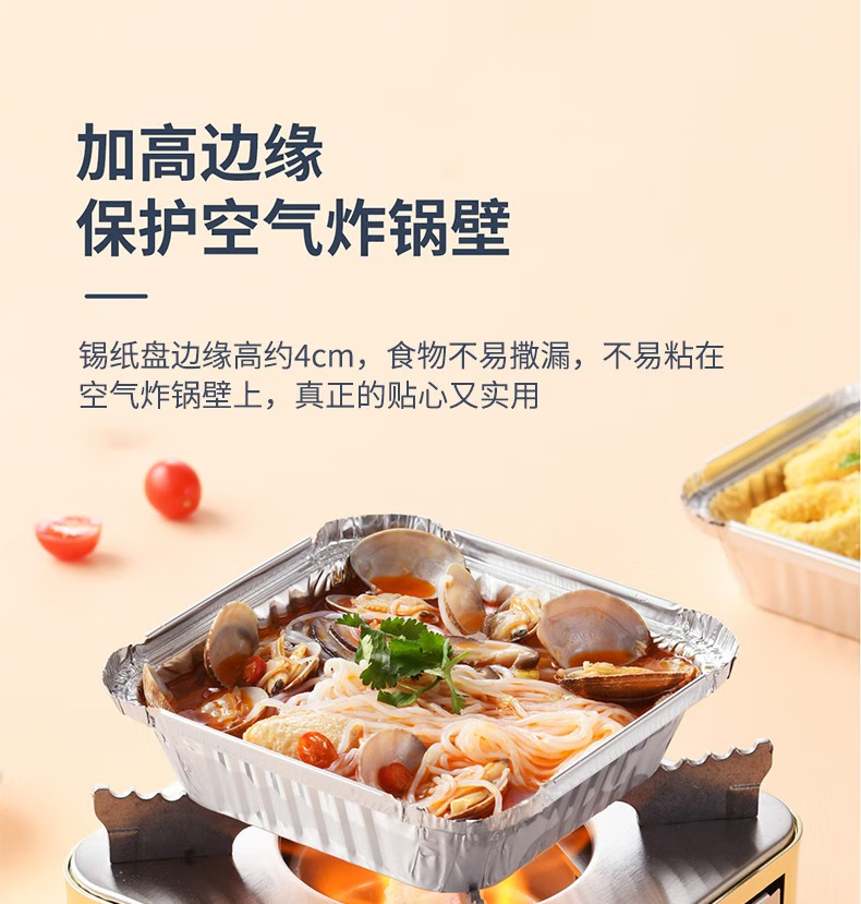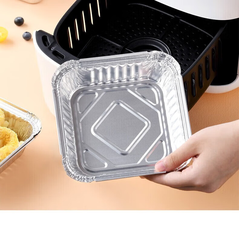 空气炸锅专用锡纸盘方形烤盘锡纸盒烘焙锡纸烤箱家用铝箔纸锡纸碗 方形【中号:长/宽18.5CM】50个