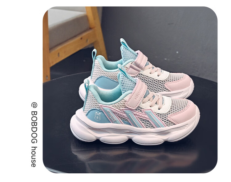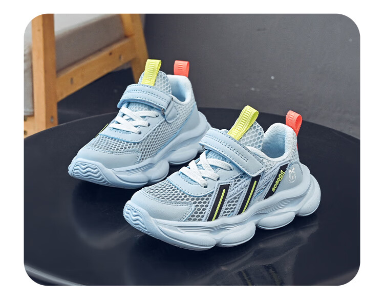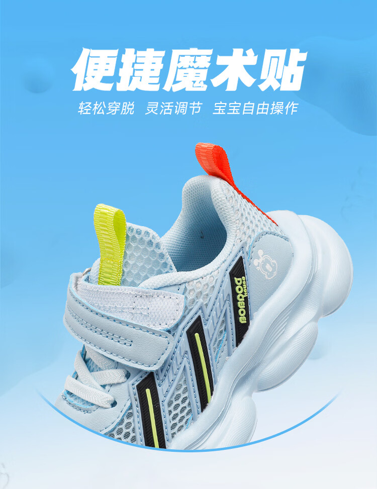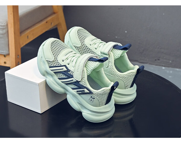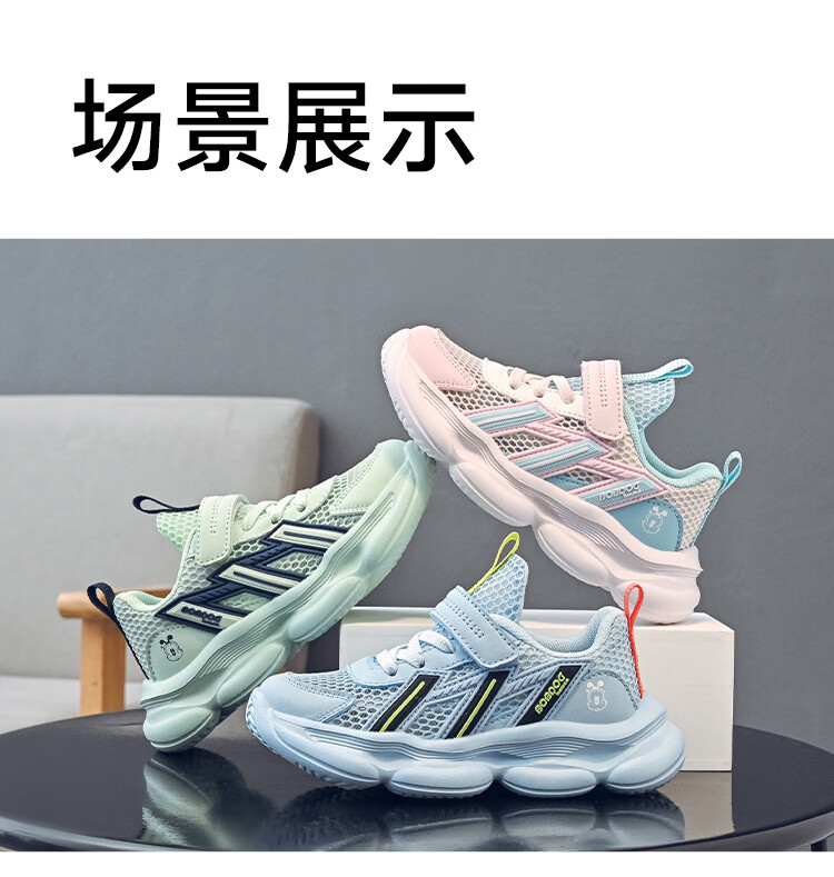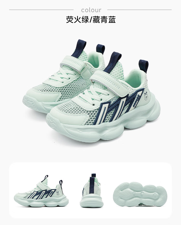 巴布豆(BOBDOG)童鞋男童夏季单网跑鞋2026透气儿童运动鞋女孩休闲鞋中大童鞋子 荧火绿/藏青蓝 27 适合脚长16.3cm