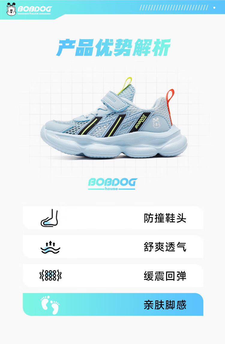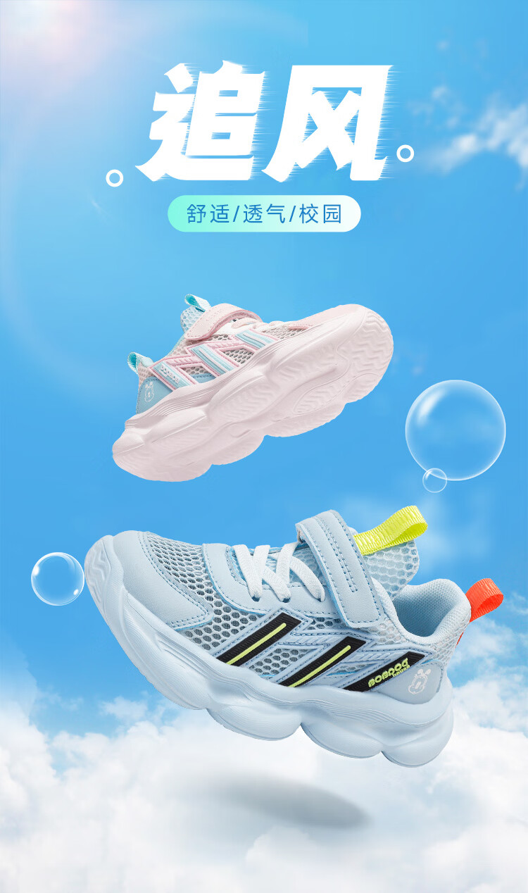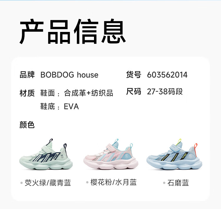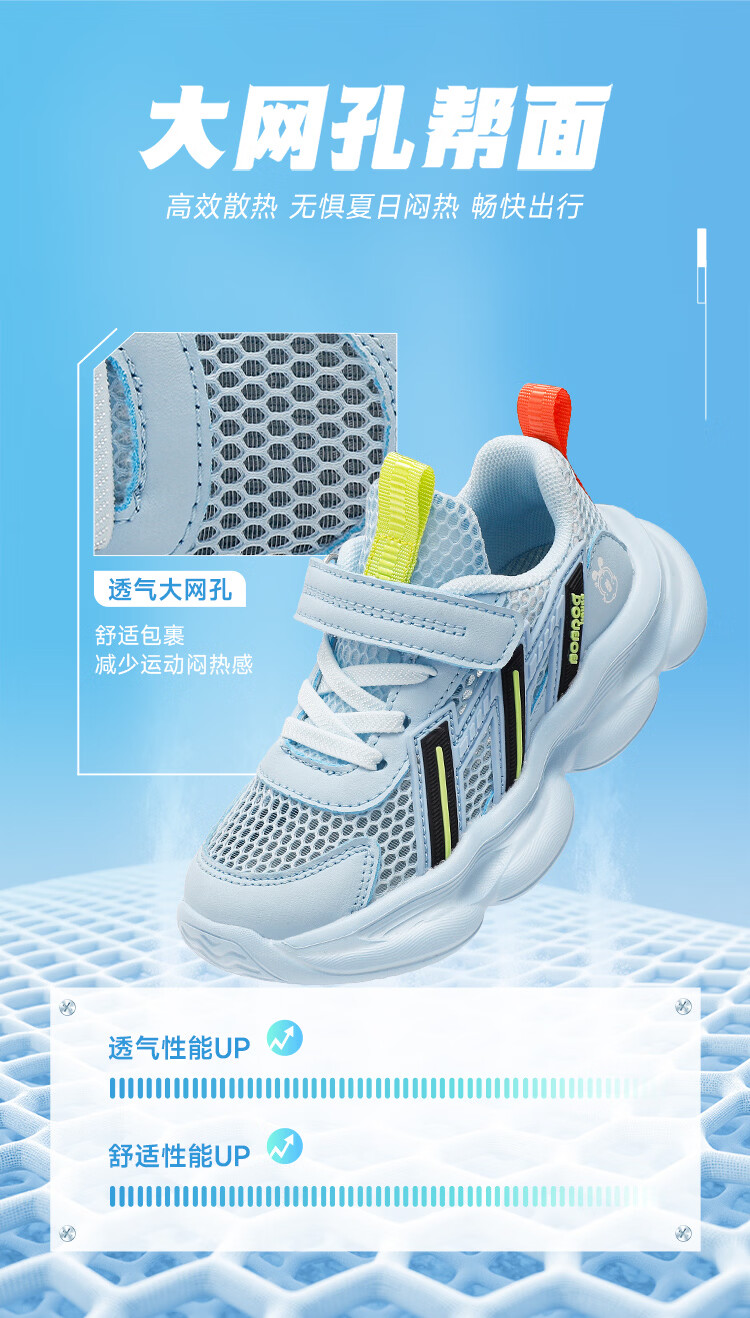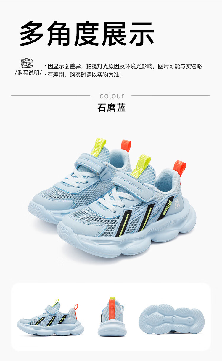 巴布豆(BOBDOG)童鞋男童夏季单网跑鞋2026透气儿童运动鞋女孩休闲鞋中大童鞋子 荧火绿/藏青蓝 27 适合脚长16.3cm