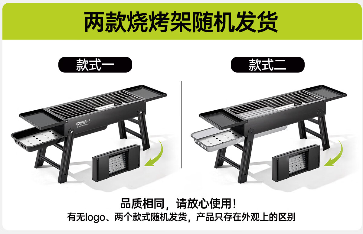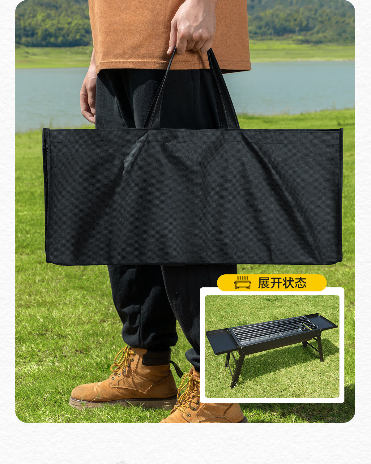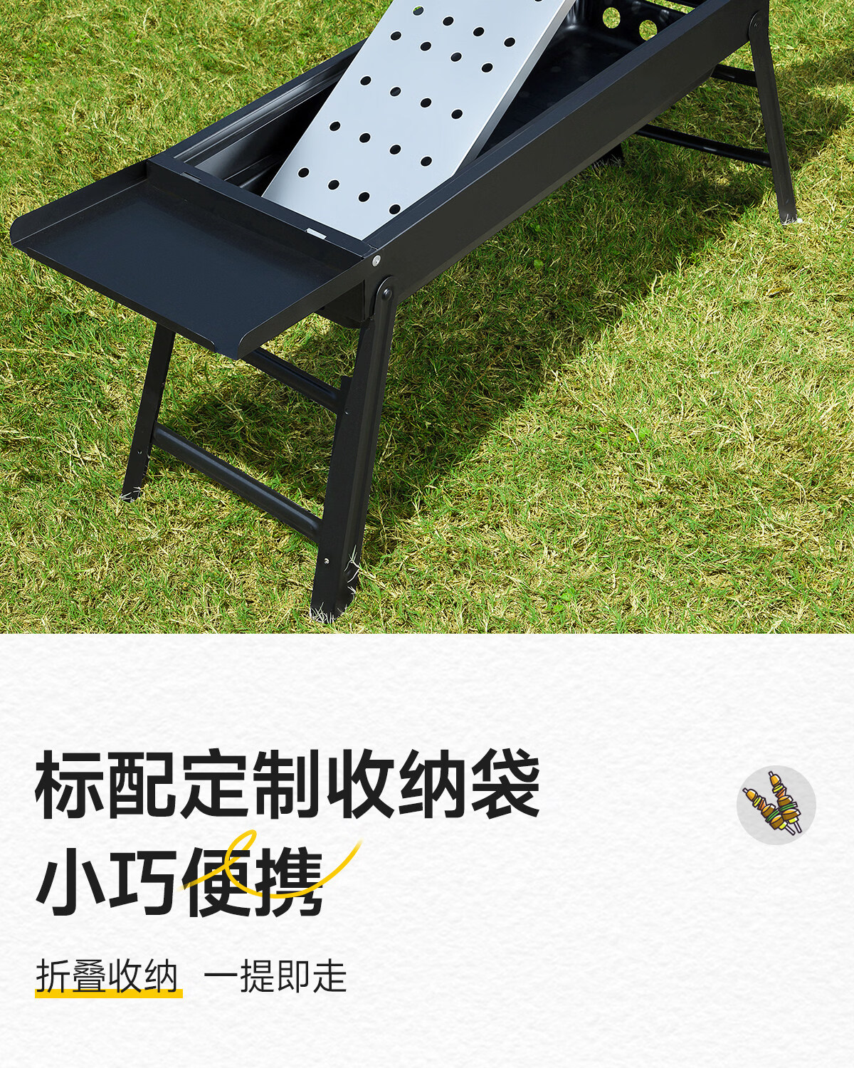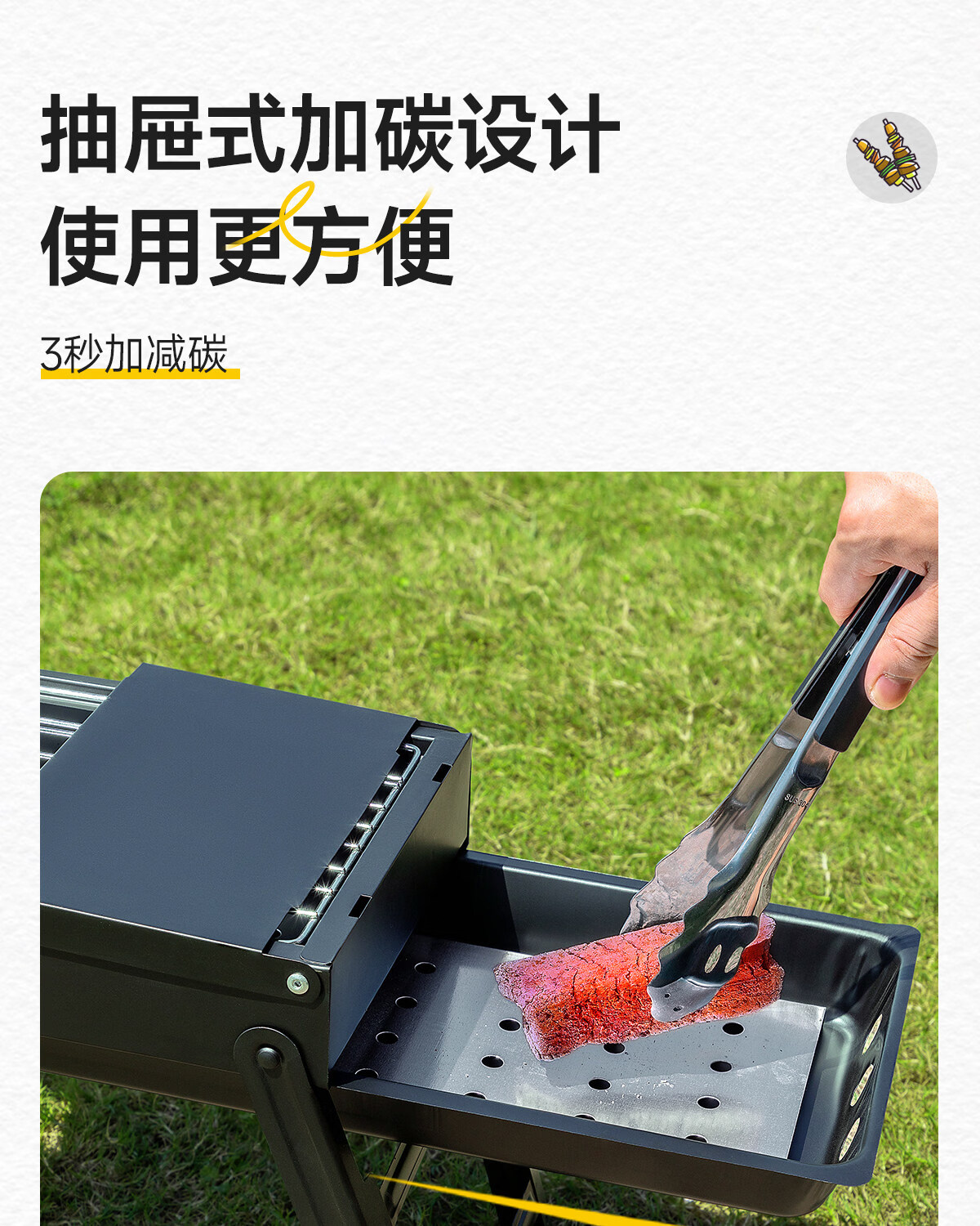 荒野拾光烧烤炉户外木炭烧烤架便携可折叠烧烤炉木碳烤羊串炉烧烤箱套装 加厚双翼【全套省心20件套】+304烤网+5斤碳+送收纳袋