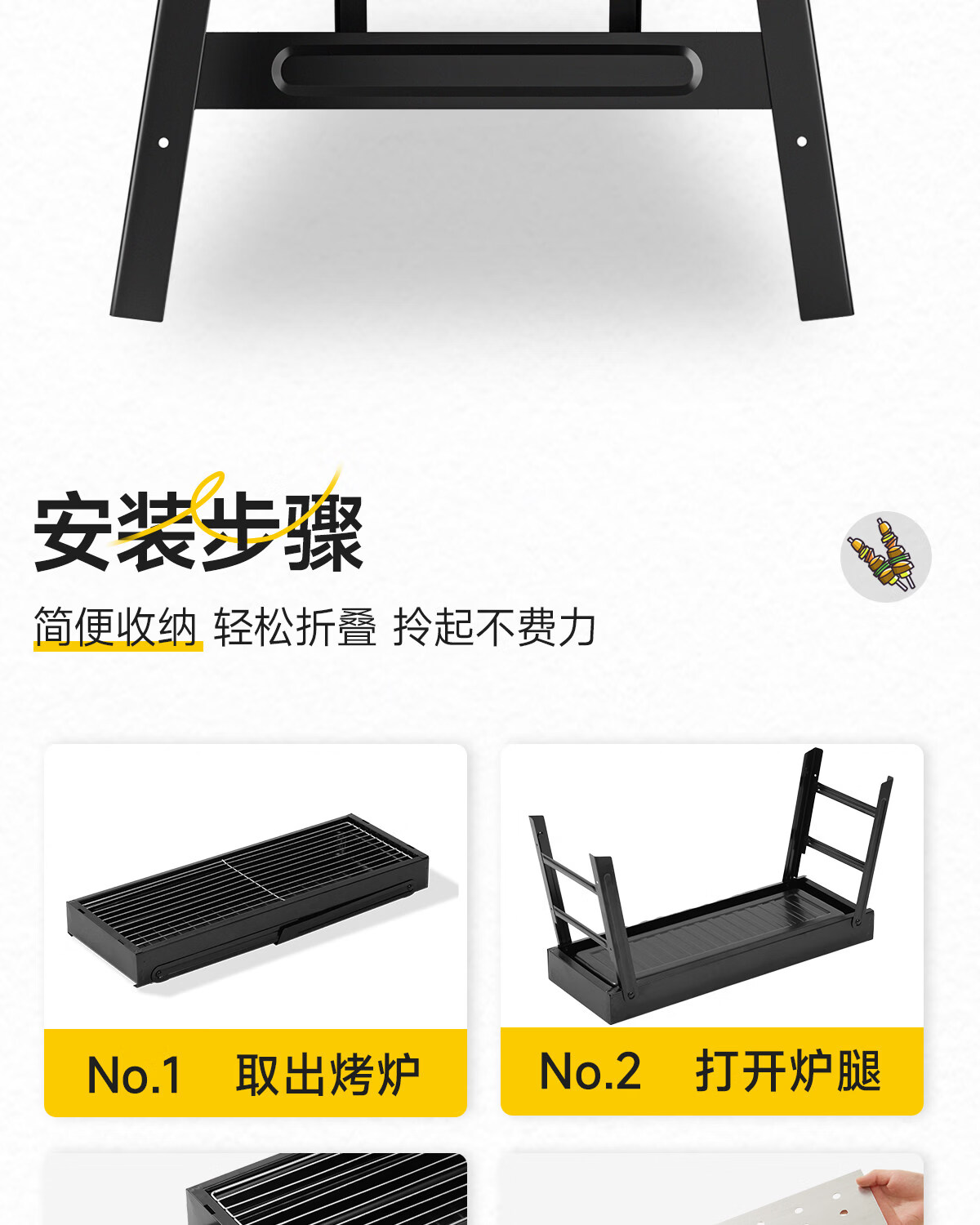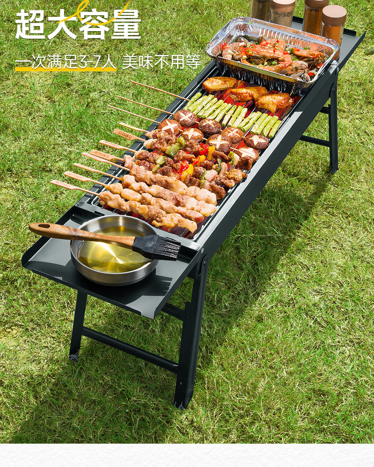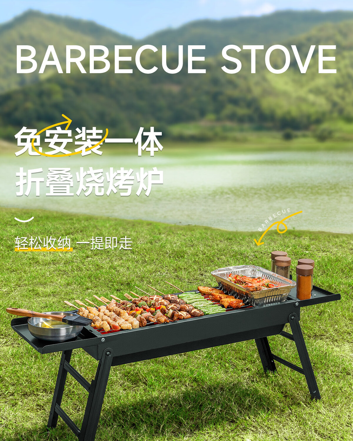 荒野拾光烧烤炉户外木炭烧烤架便携可折叠烧烤炉木碳烤羊串炉烧烤箱套装 加厚双翼【全套省心20件套】+304烤网+5斤碳+送收纳袋