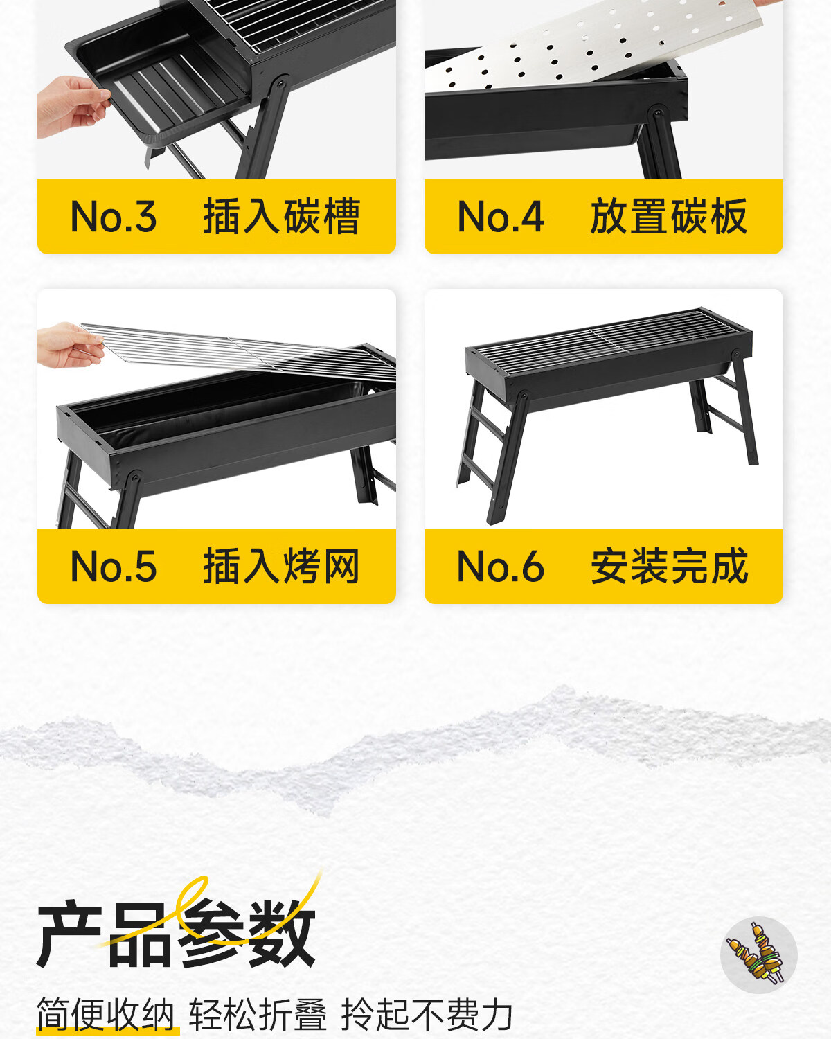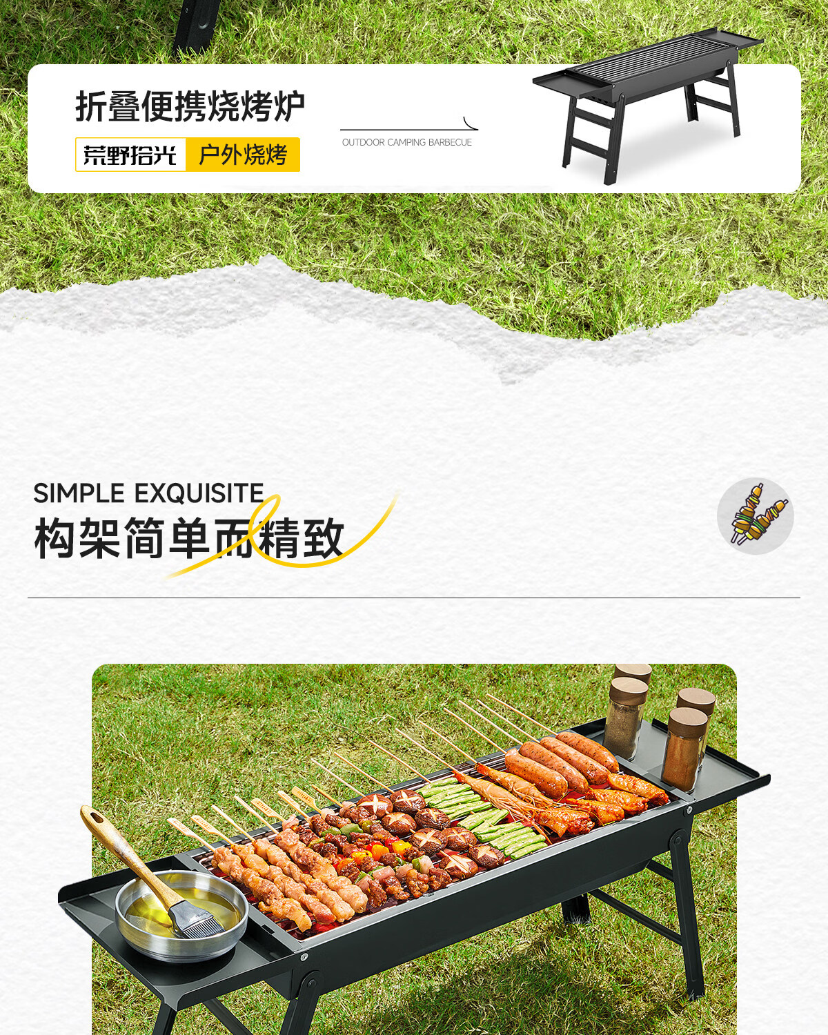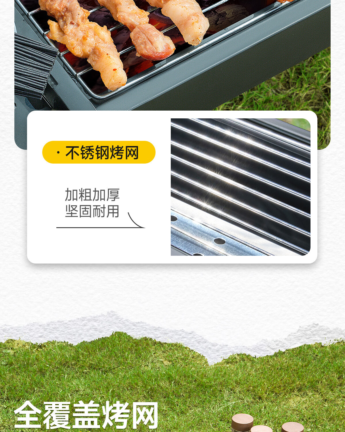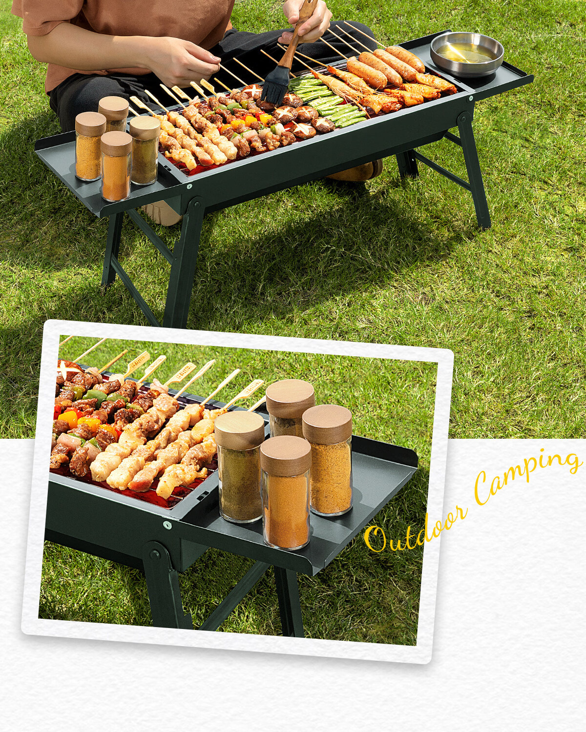 荒野拾光烧烤炉户外木炭烧烤架便携可折叠烧烤炉木碳烤羊串炉烧烤箱套装 加厚双翼【全套省心20件套】+304烤网+5斤碳+送收纳袋
