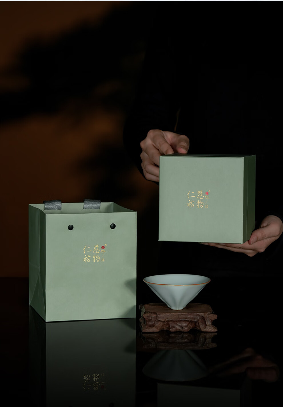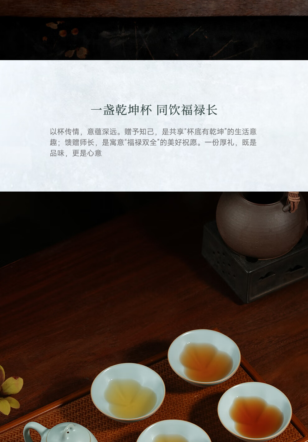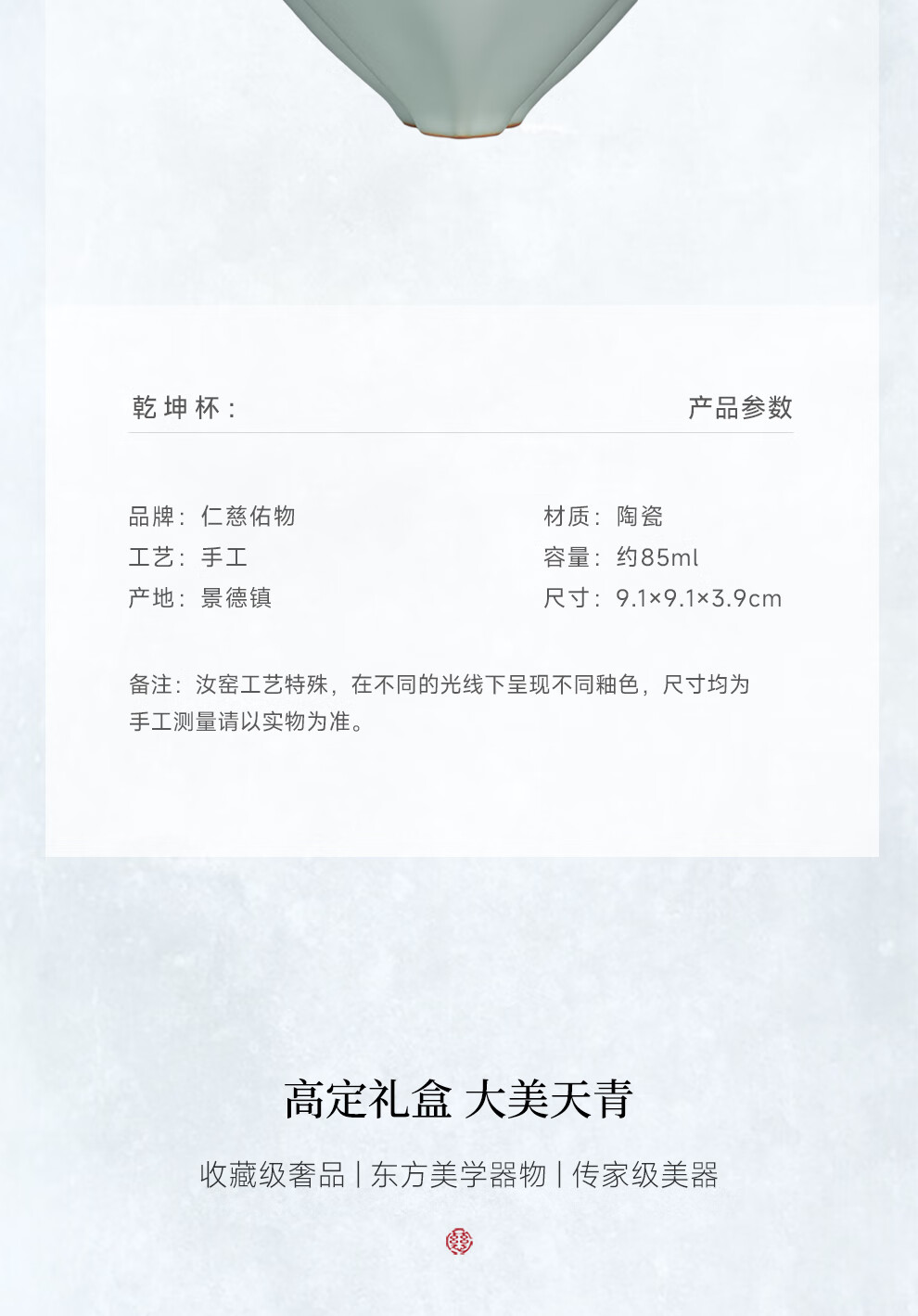 青澹汝窑茶杯品茗茶碗主人杯汝瓷陶瓷手工天青色景德镇仁慈佑物乾坤杯 乾坤杯约85ml 开片可养