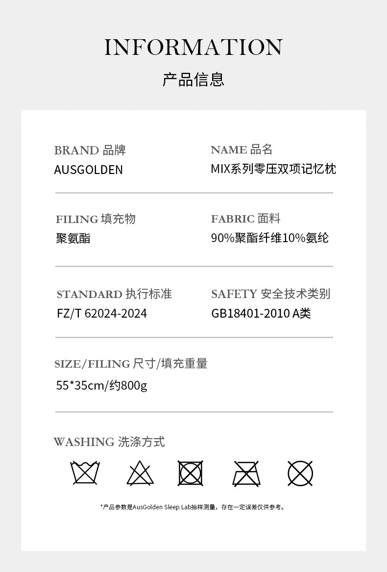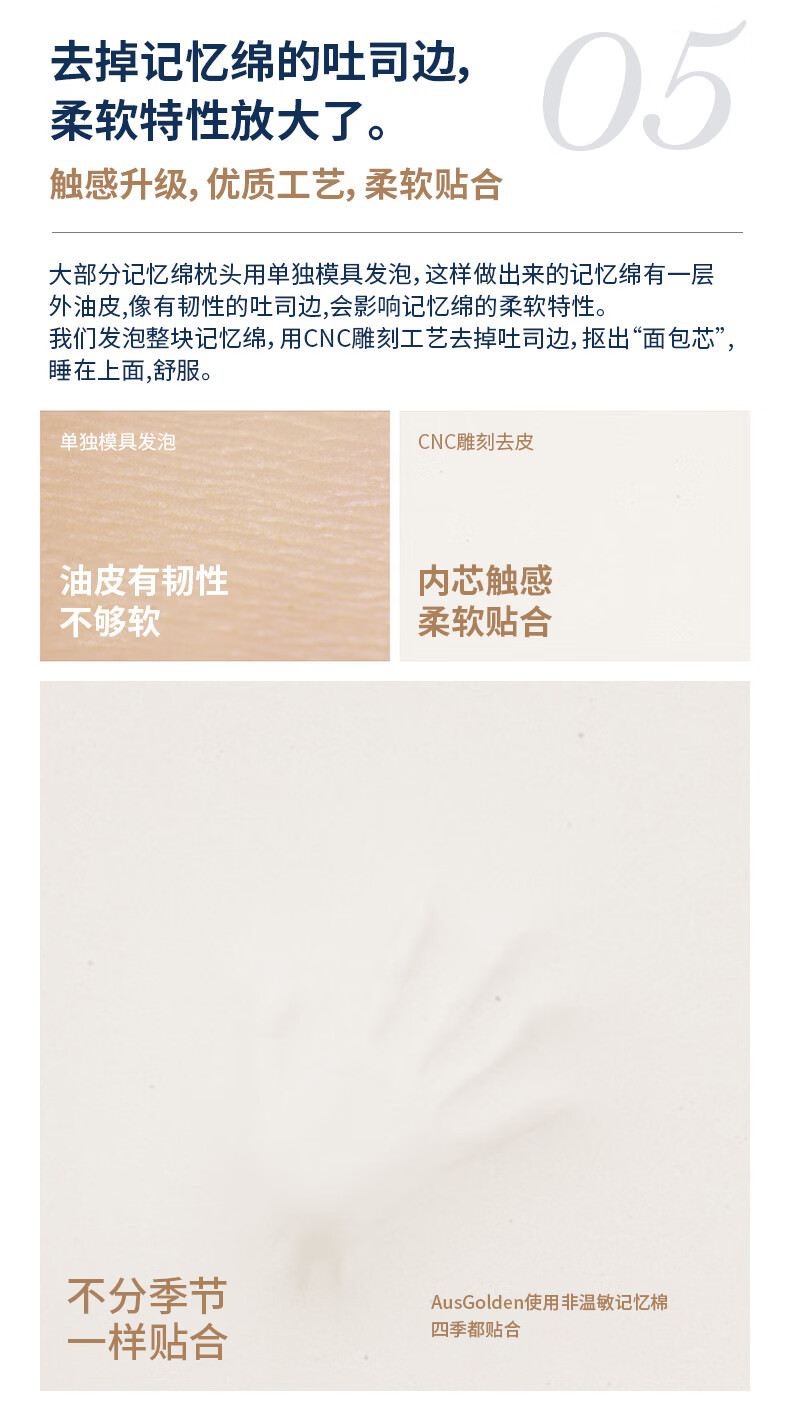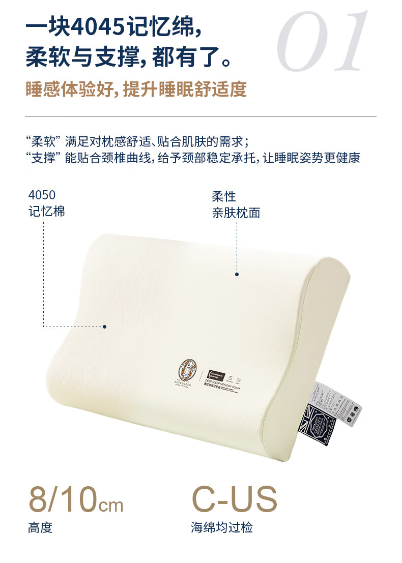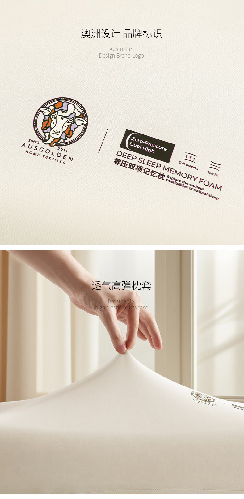 AusGolden枕头记忆棉护颈枕零压慢回弹记忆枕A类抗菌防螨超柔深睡枕芯 单只