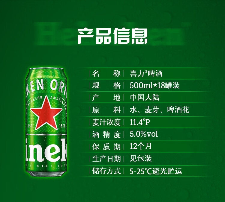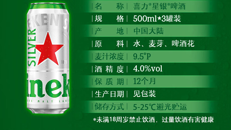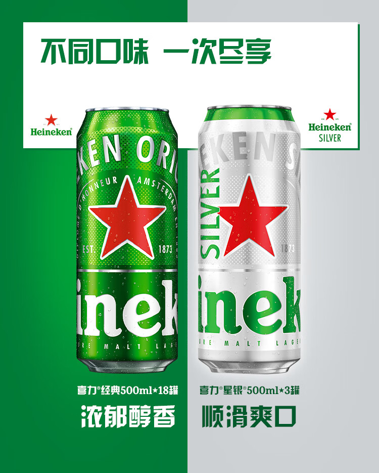 喜力啤酒 整箱装 全麦酿造(经典*18罐+星银*3罐)官方正品 500mL 21罐