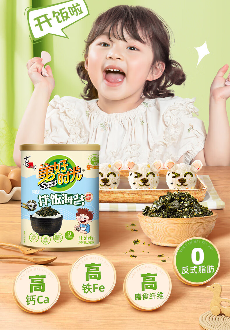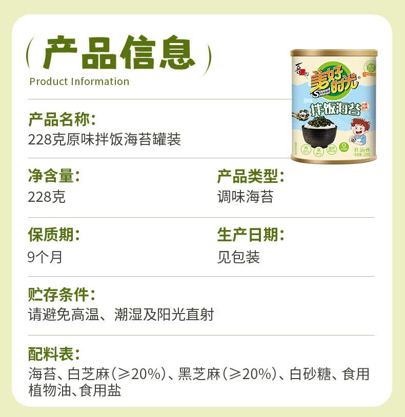 美好时光原味拌饭海苔碎228克罐装高钙高铁 儿童每日海苔拌饭包饭调味零食