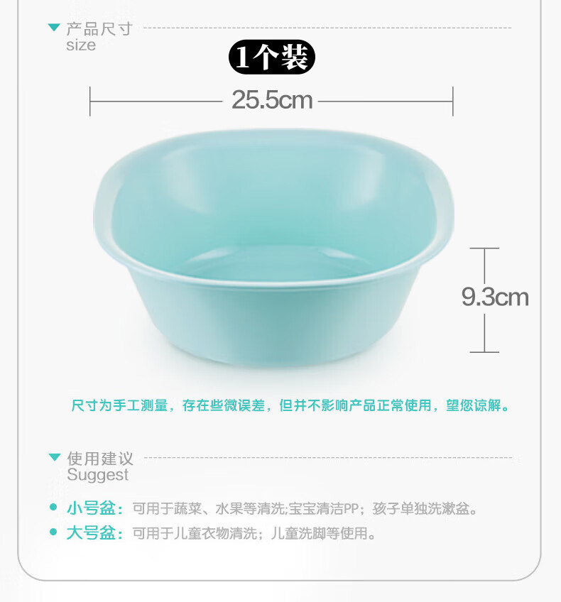 茶花 塑料盆 25.5cm1只装小号抗菌洗脸盆方形洗脚洗衣服盆 粉色*