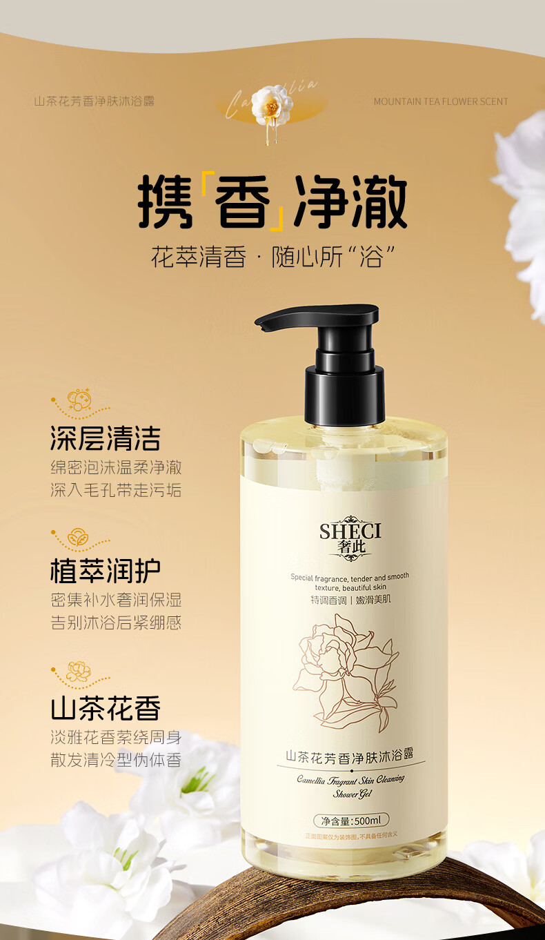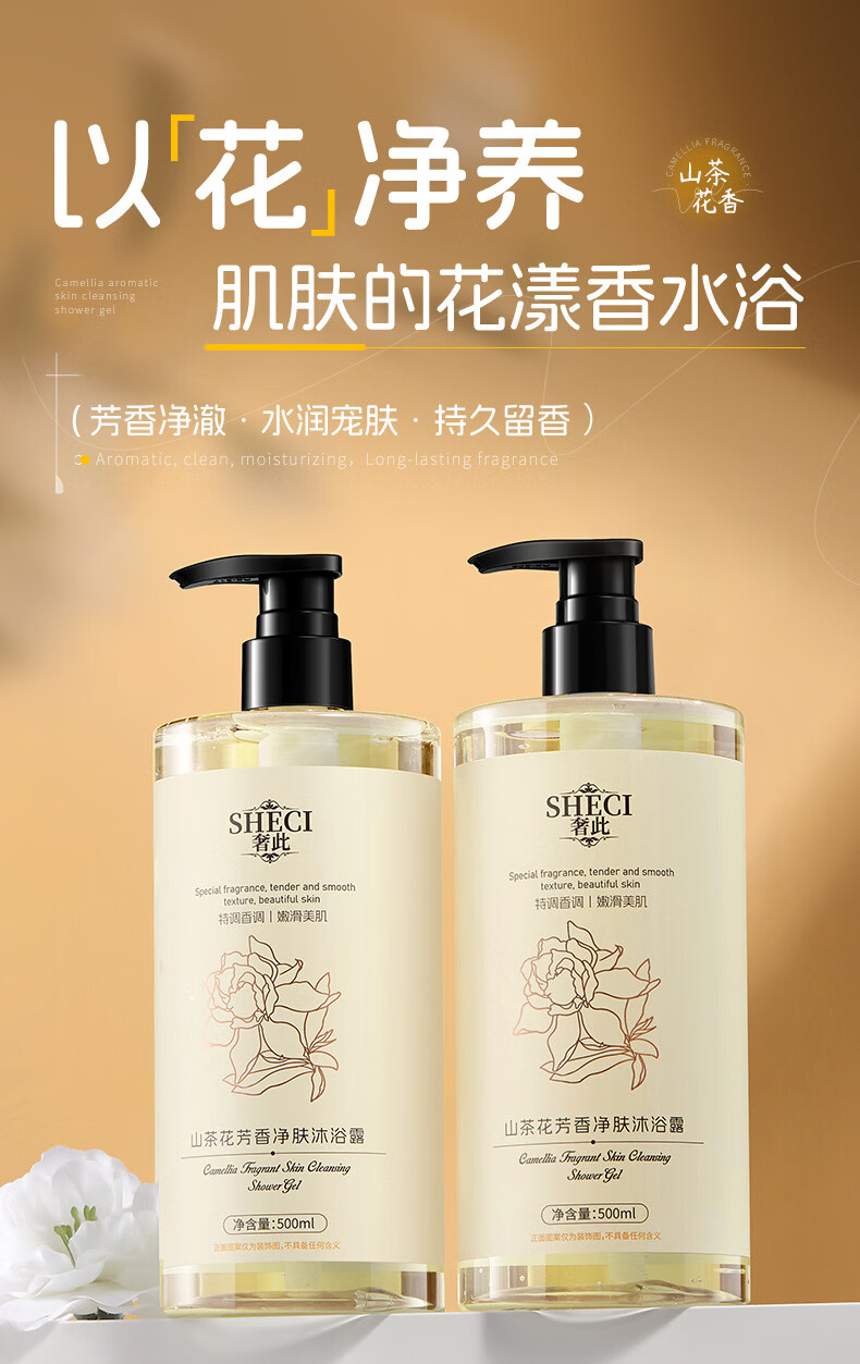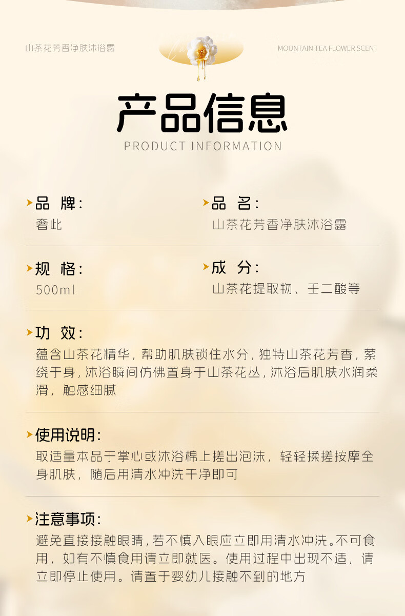 奢此水悠季沐浴露山茶花草本植萃持久留香补水滋润除螨深层清洁保湿 5瓶【巩固囤货装】 【官方直售】