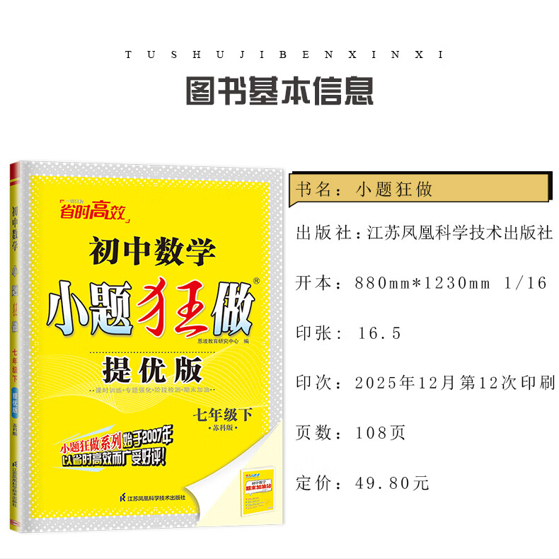 自选】2025-2026春正版初中小题狂做七年级下上语文数学英语巅峰版 提优版恩波教育初一上册下册同步课时提高检测训练习册教辅资料 (25秋)江苏版-语数英3本套装上册【提优版】