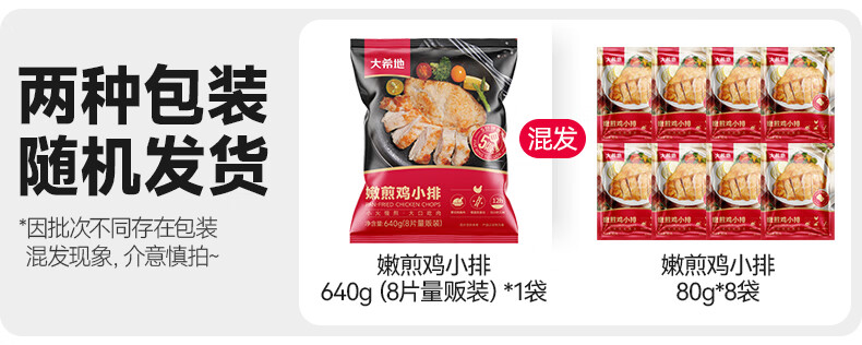 大希地香煎鸡排 鸡胸肉鸡扒半成品代餐冷冻食材烧烤早餐 嫩煎鸡小排【原味】 80g *15袋