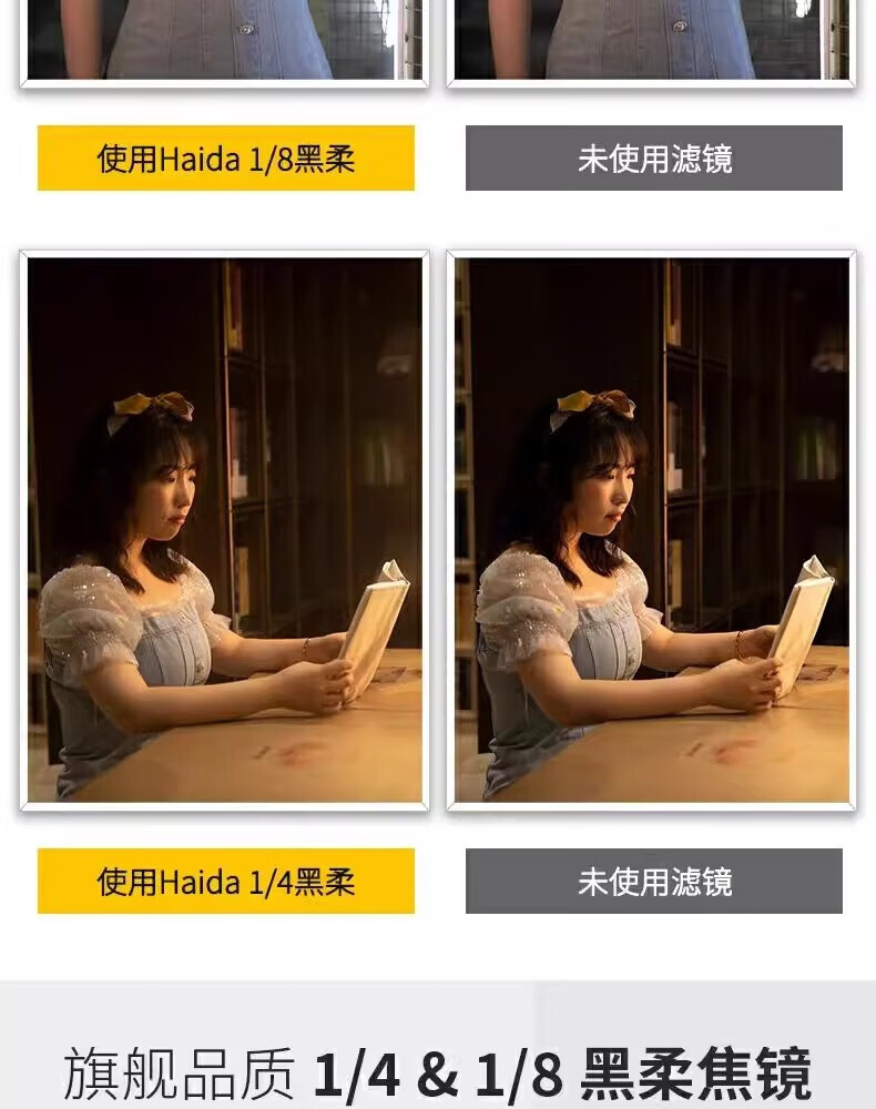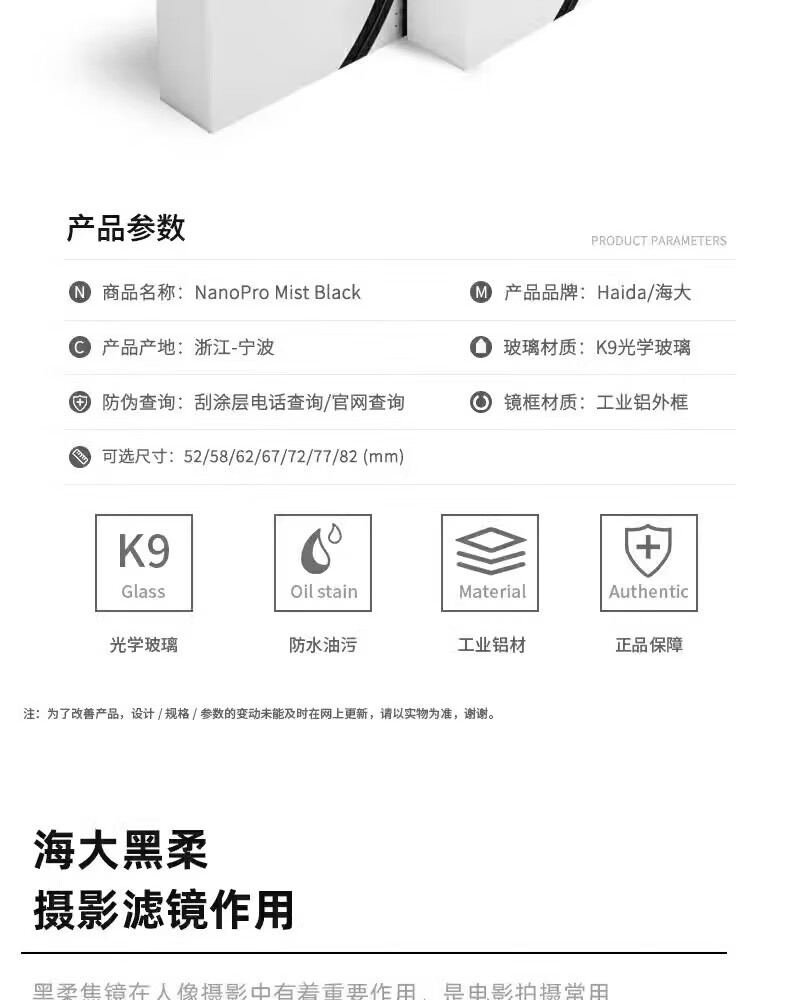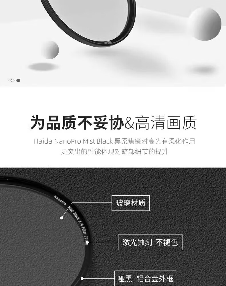 Haida海大NanoPro 黑柔焦镜柔光镜朦胧镜滤镜拍人像视频美颜适用于佳能尼康索尼富士微单单反相机镜头 NanoPro【1/4】黑柔滤镜(送滤镜包) 52mm