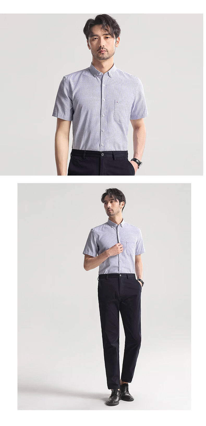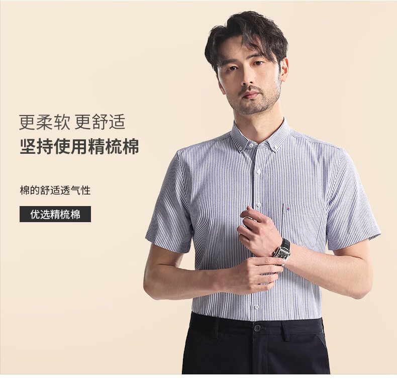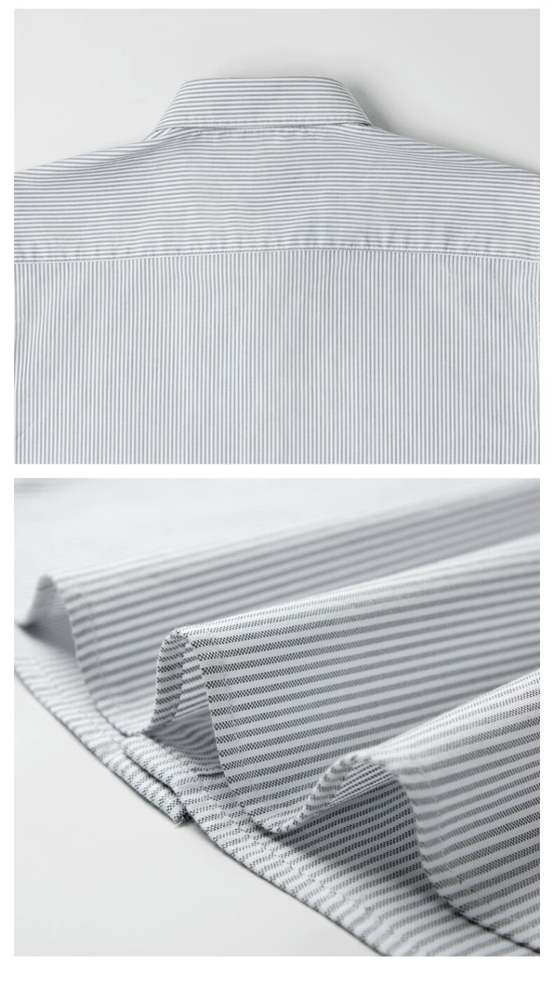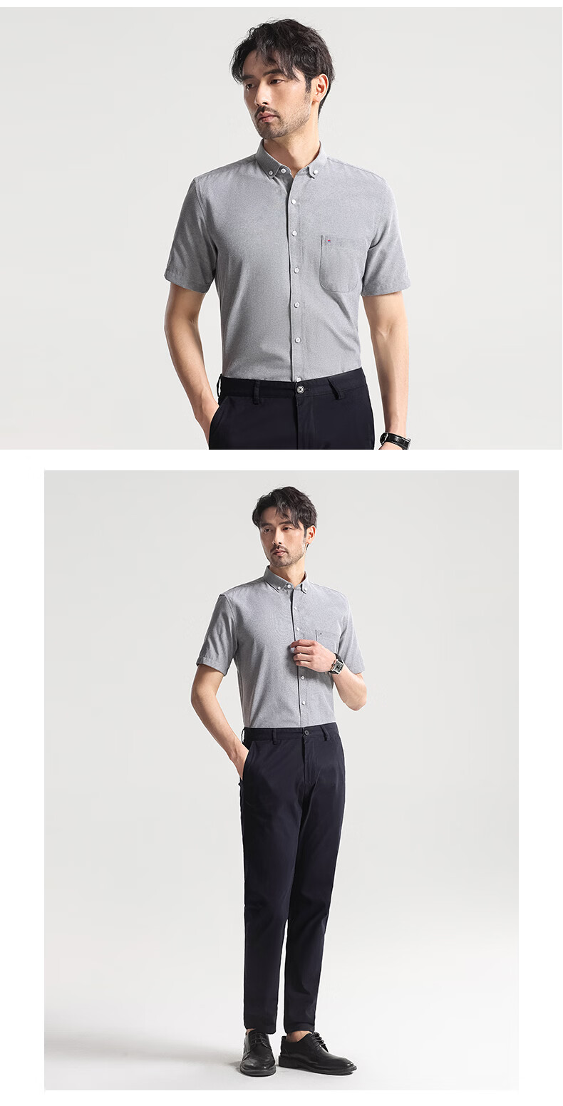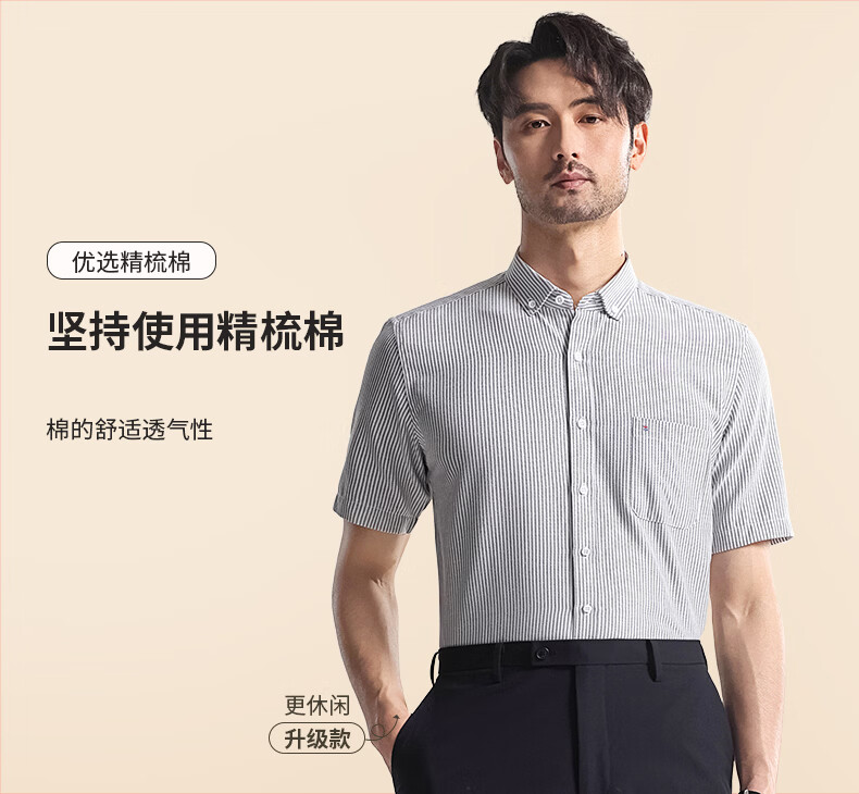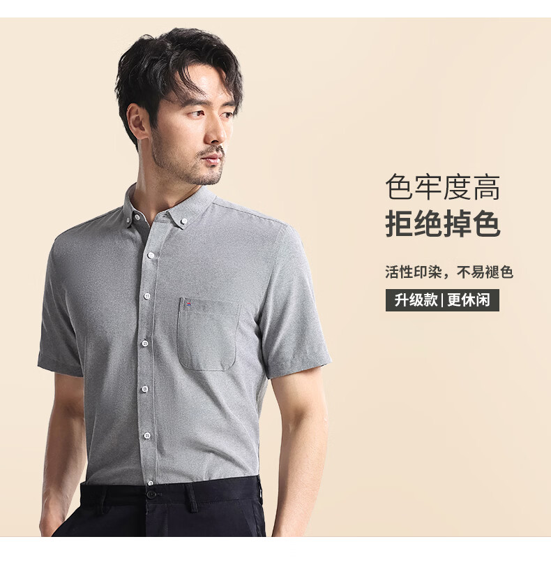 Hodo短袖衬衫男士商务休闲纯色抗皱免烫夏季半袖衬衣 315灰条纹 44