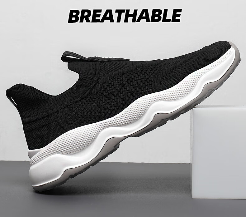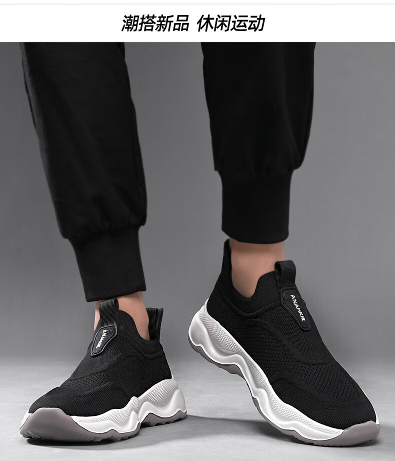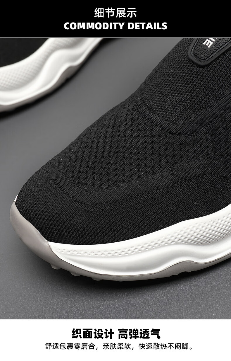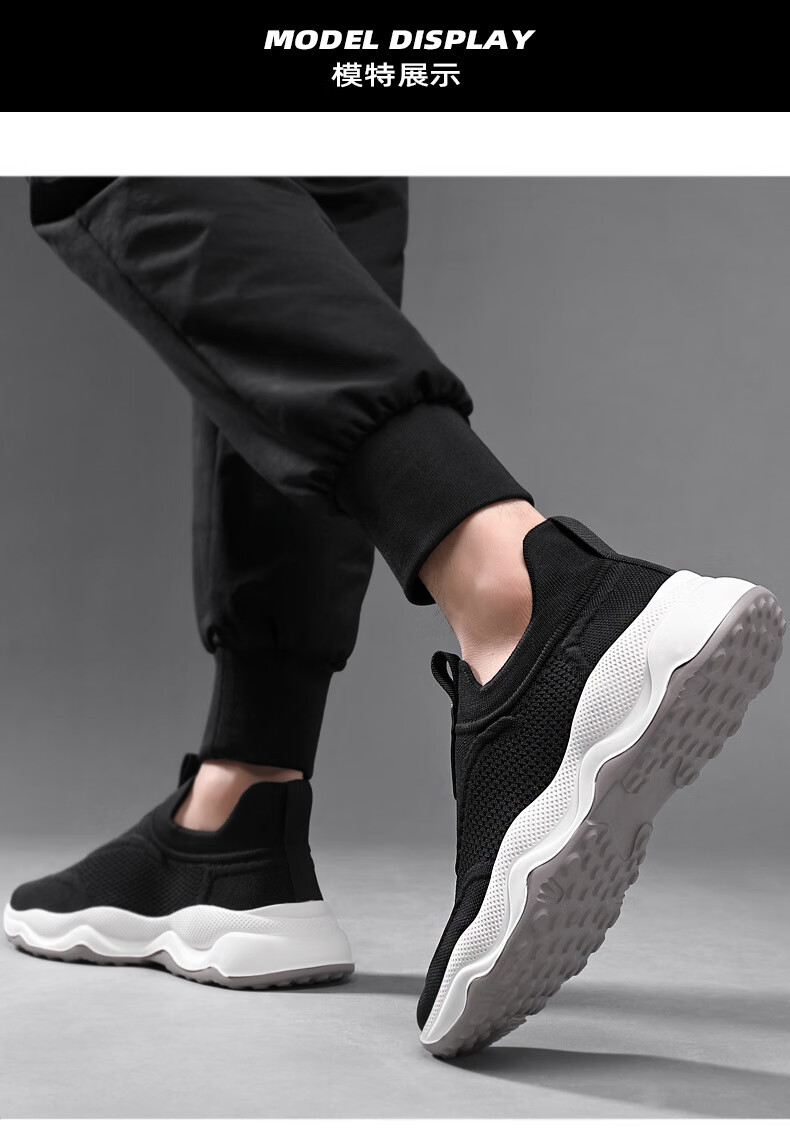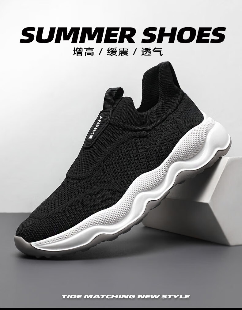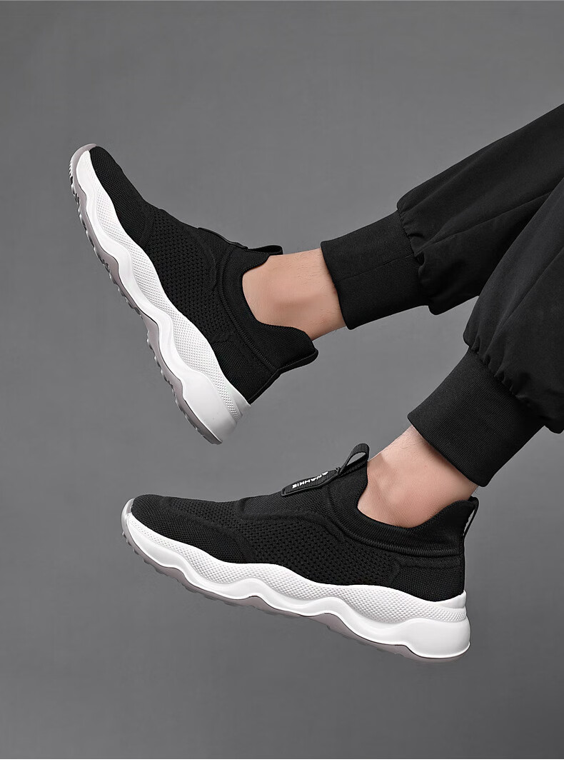 Q ZHIHE男鞋春夏新款透气网面运动跑步鞋男休闲鞋子男百搭一脚蹬旅游鞋 灰色【内增高】 44