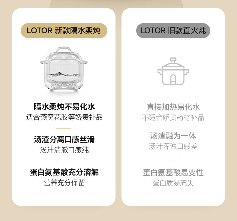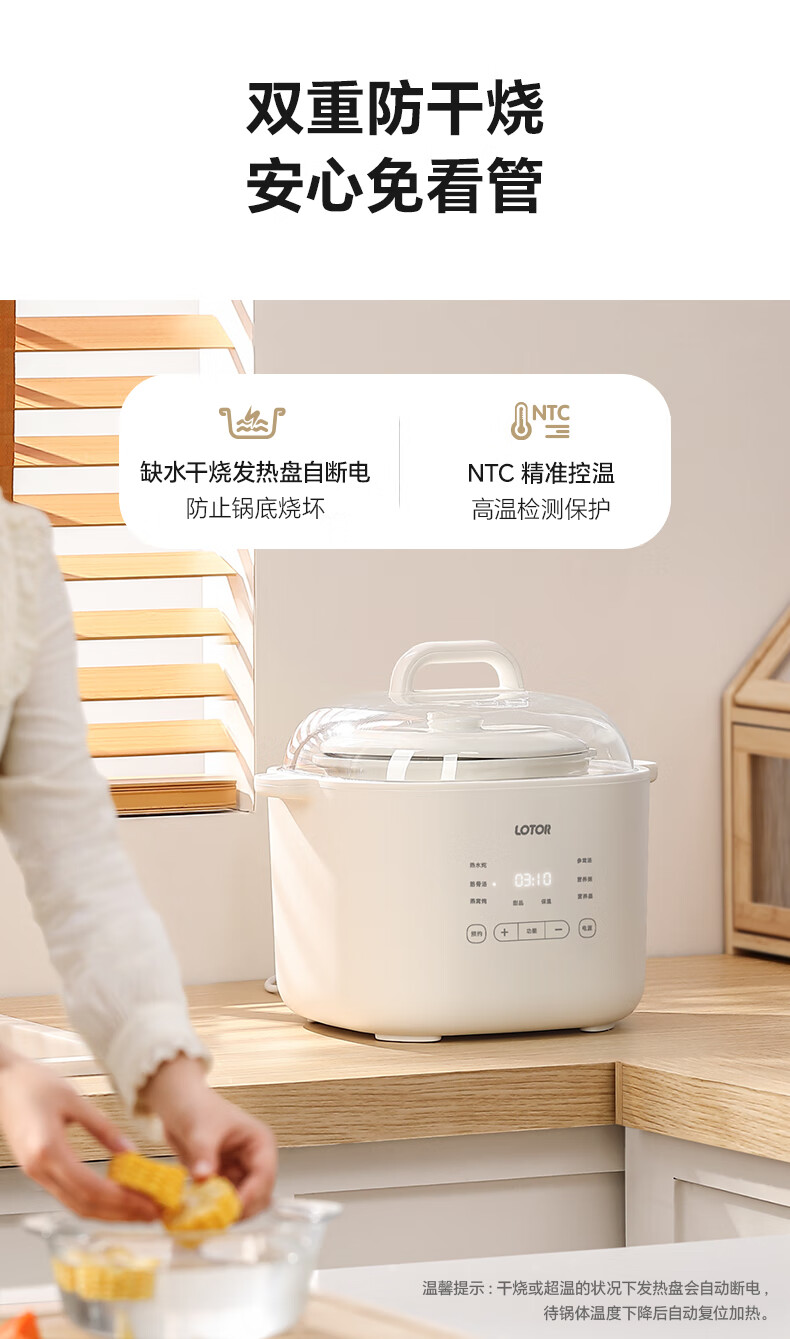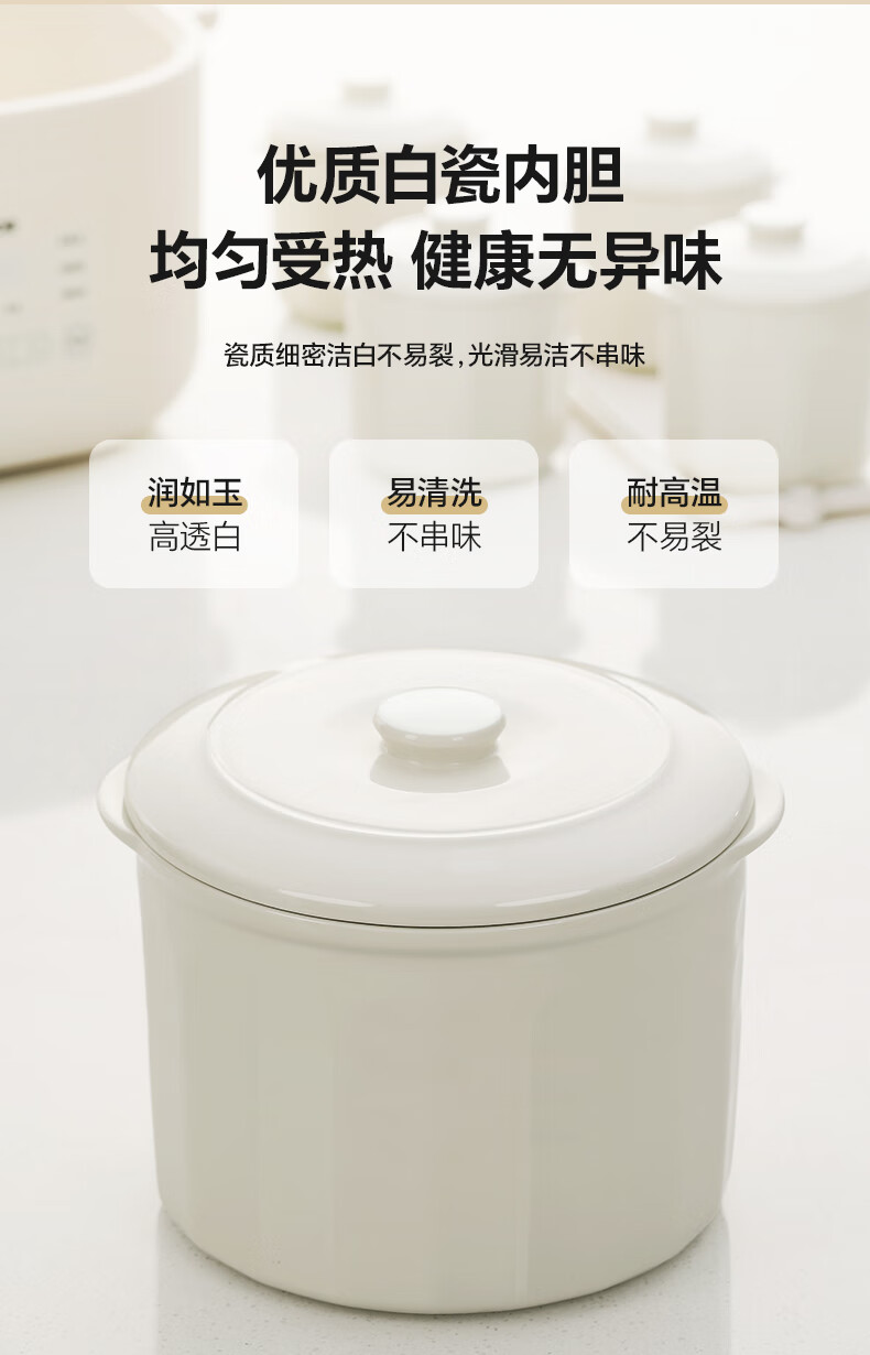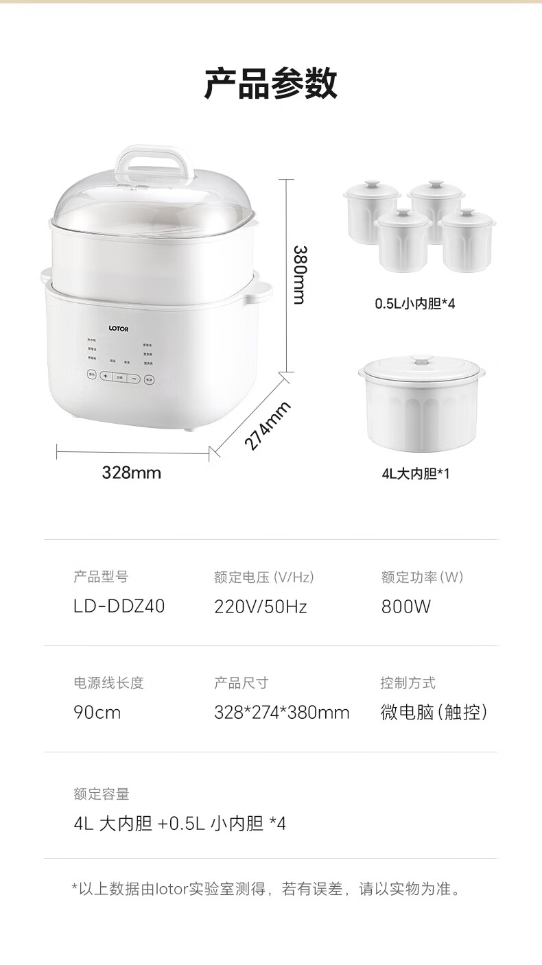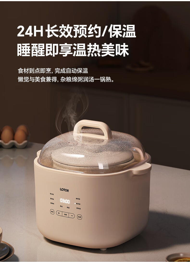 LOTOR徕多电炖锅家用炖盅大容量隔水多功能煲汤炖汤盅陶瓷燕窝电炖盅隔水煮粥神器宝宝辅食锅4-5人用 白色 8L 七胆旗舰款【彩屏12菜单】