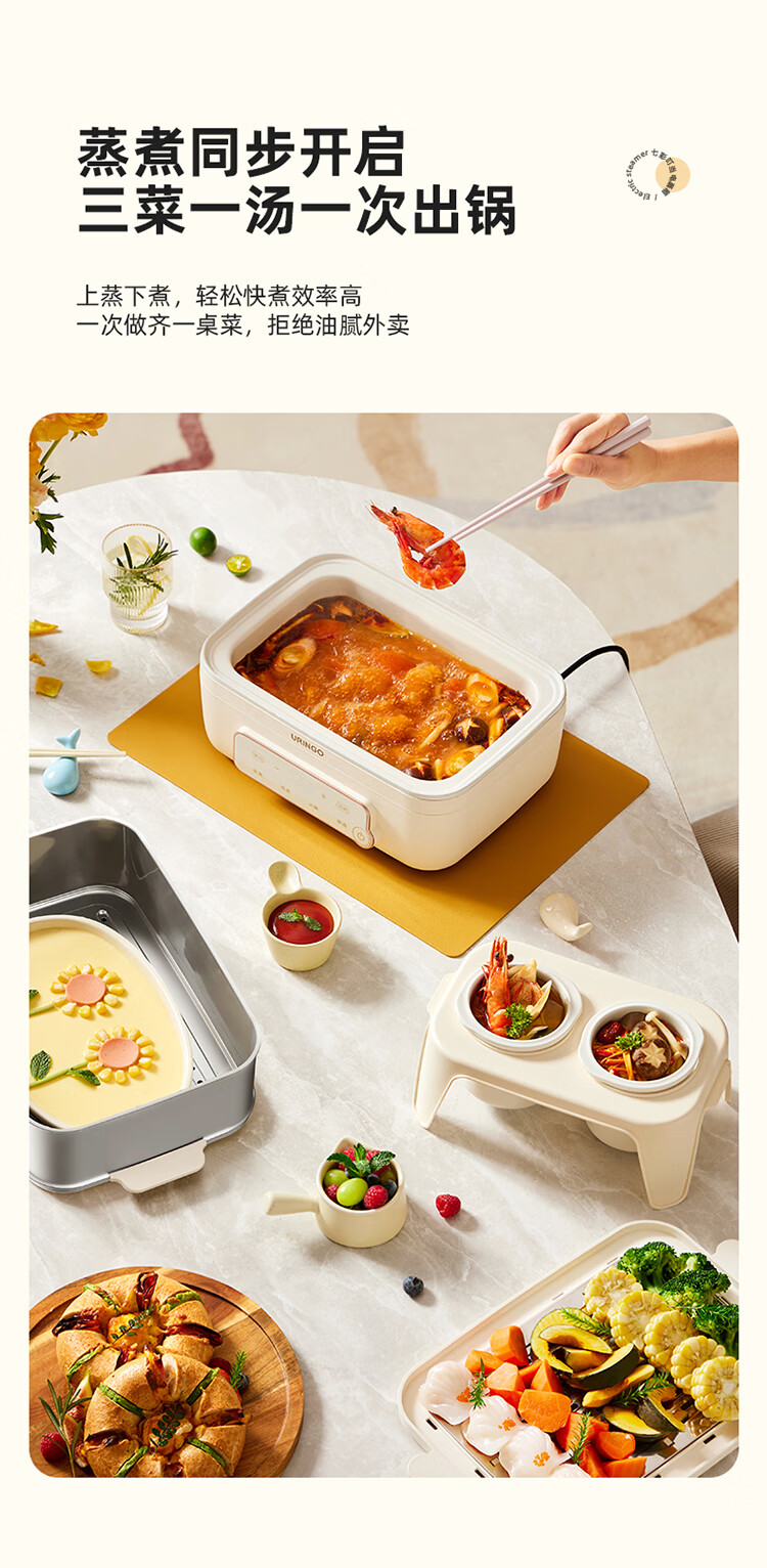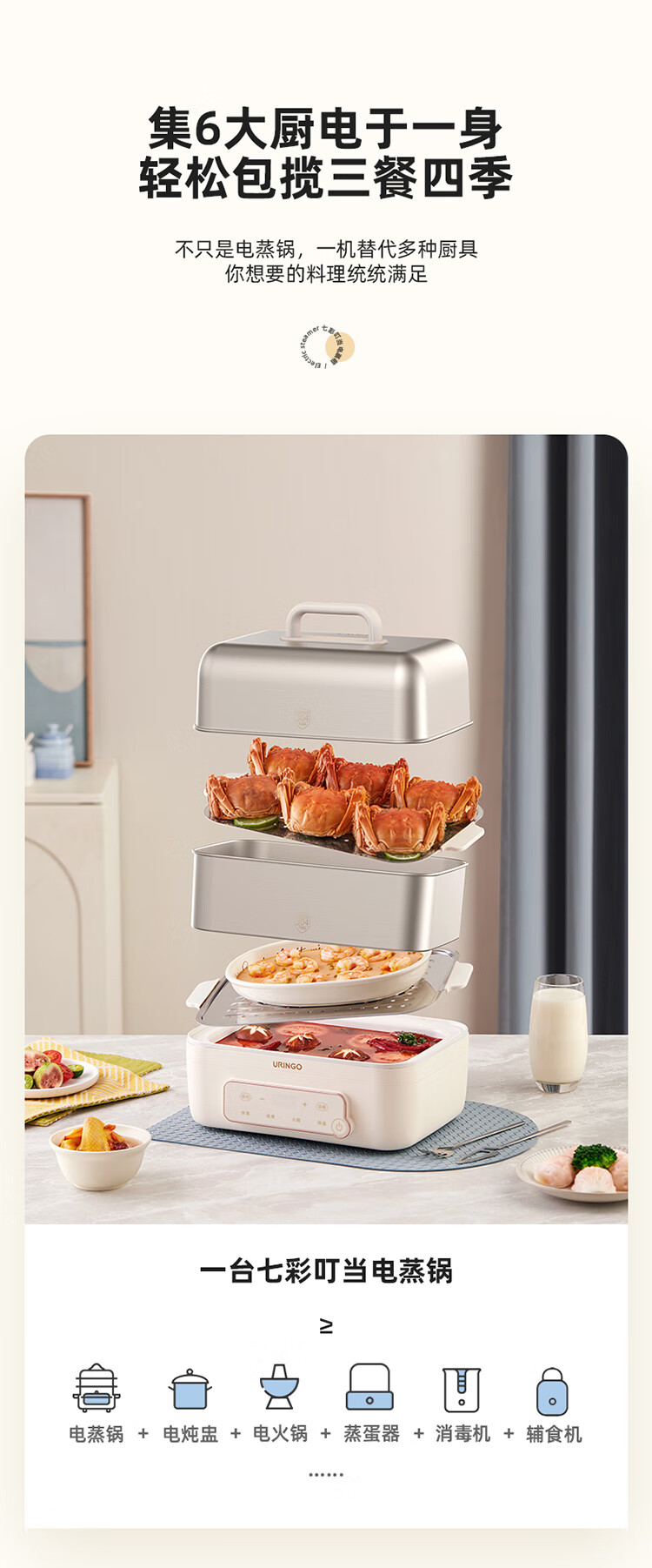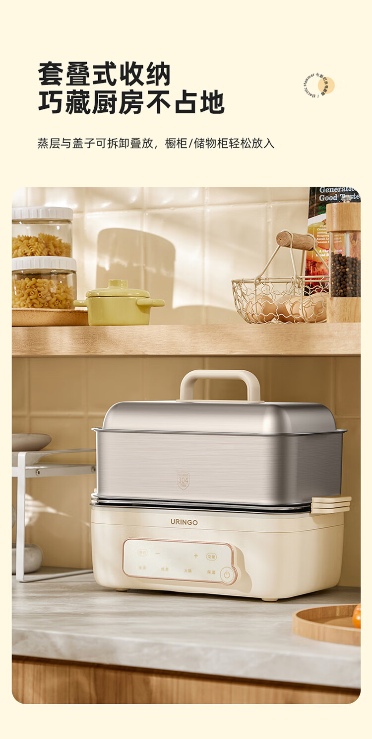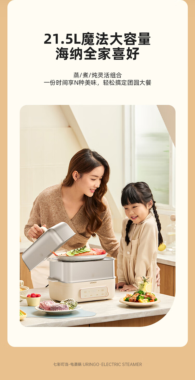 七彩叮当不锈钢电蒸锅多功能家用三层带炖盅蒸煮炖一体火锅电蒸笼 12L -不锈钢蒸格【两层】不含炖盅火锅