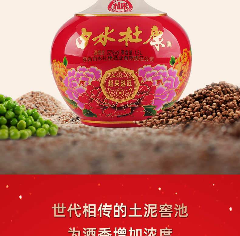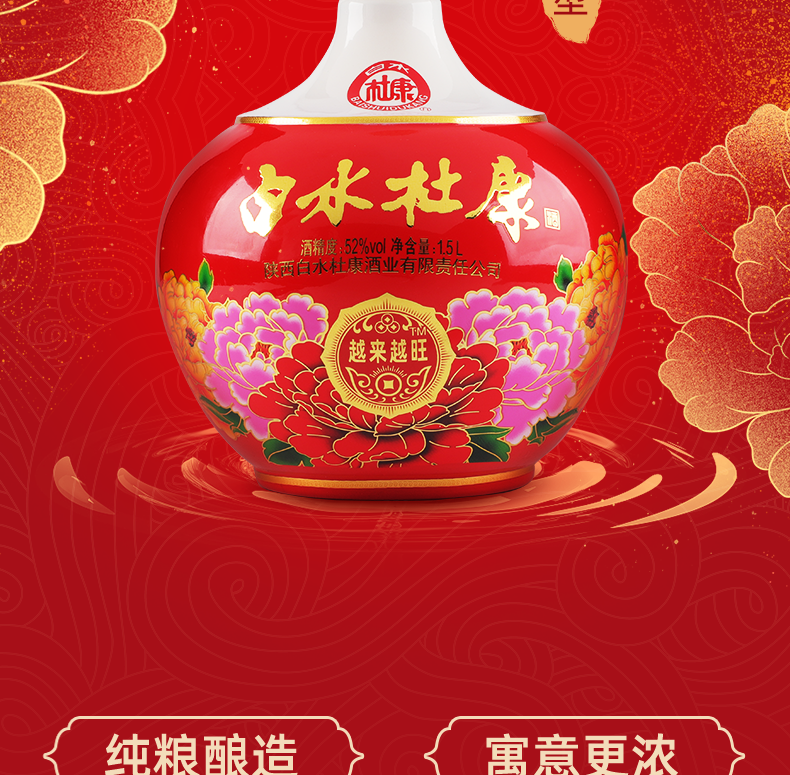 白水杜康越来越旺红瓶白酒纯粮食坛子酒 52度 1.5L 2瓶 浓香型