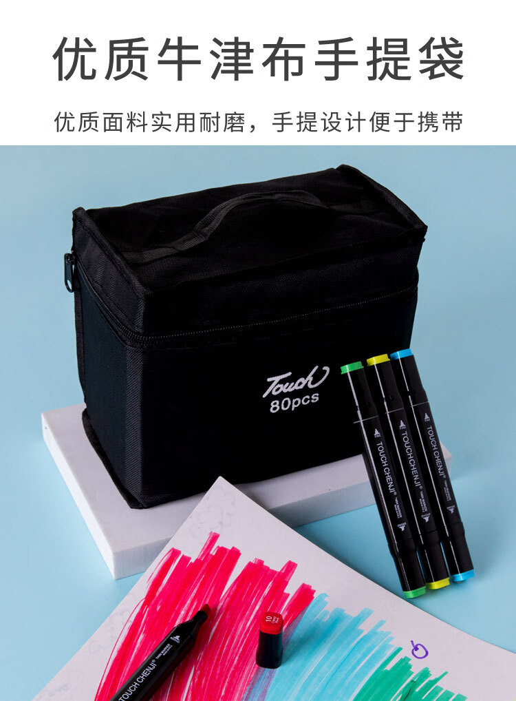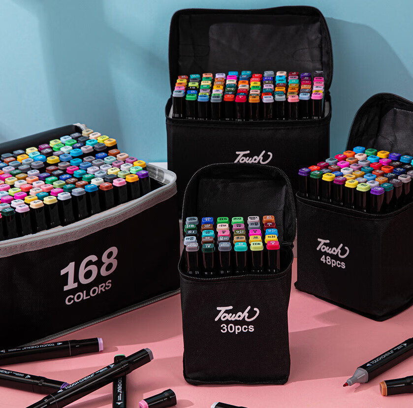 开学季小学生48色双头油性酒精学生绘画马克笔套装48色 油性布袋装【48色】