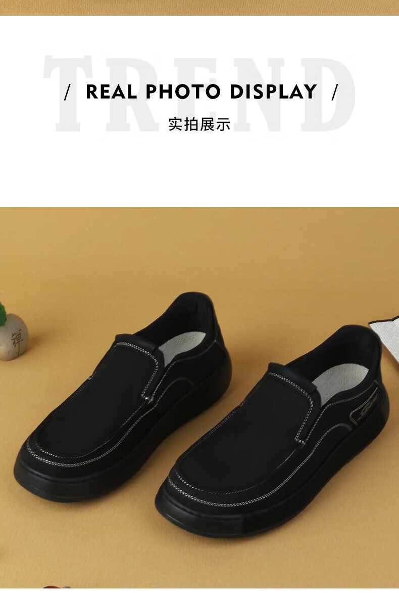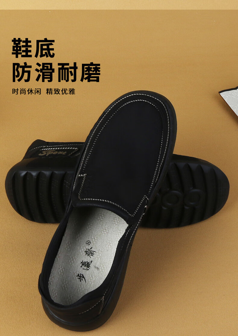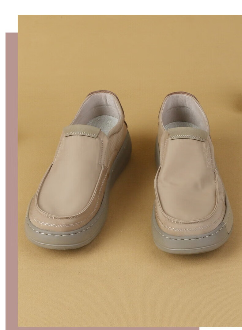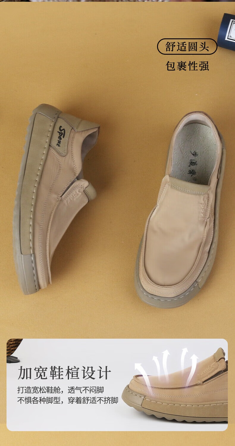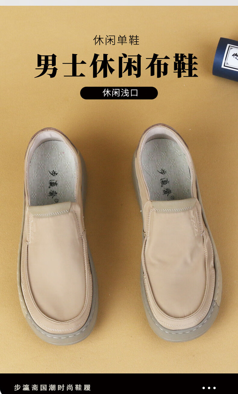 步瀛斋休闲鞋男透气一脚蹬帆布鞋子男简约百搭轻便男鞋懒人开车鞋 杏色 41