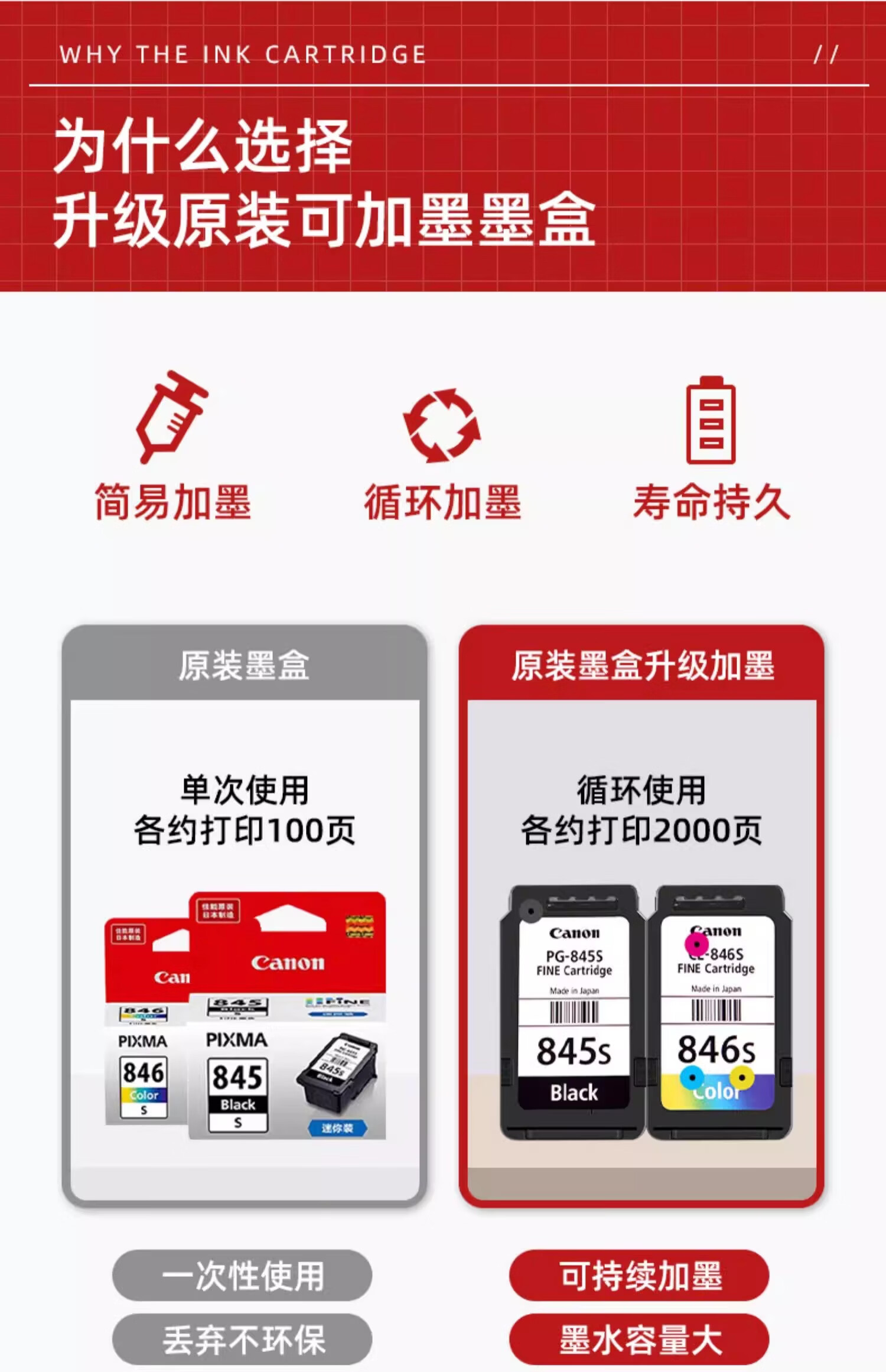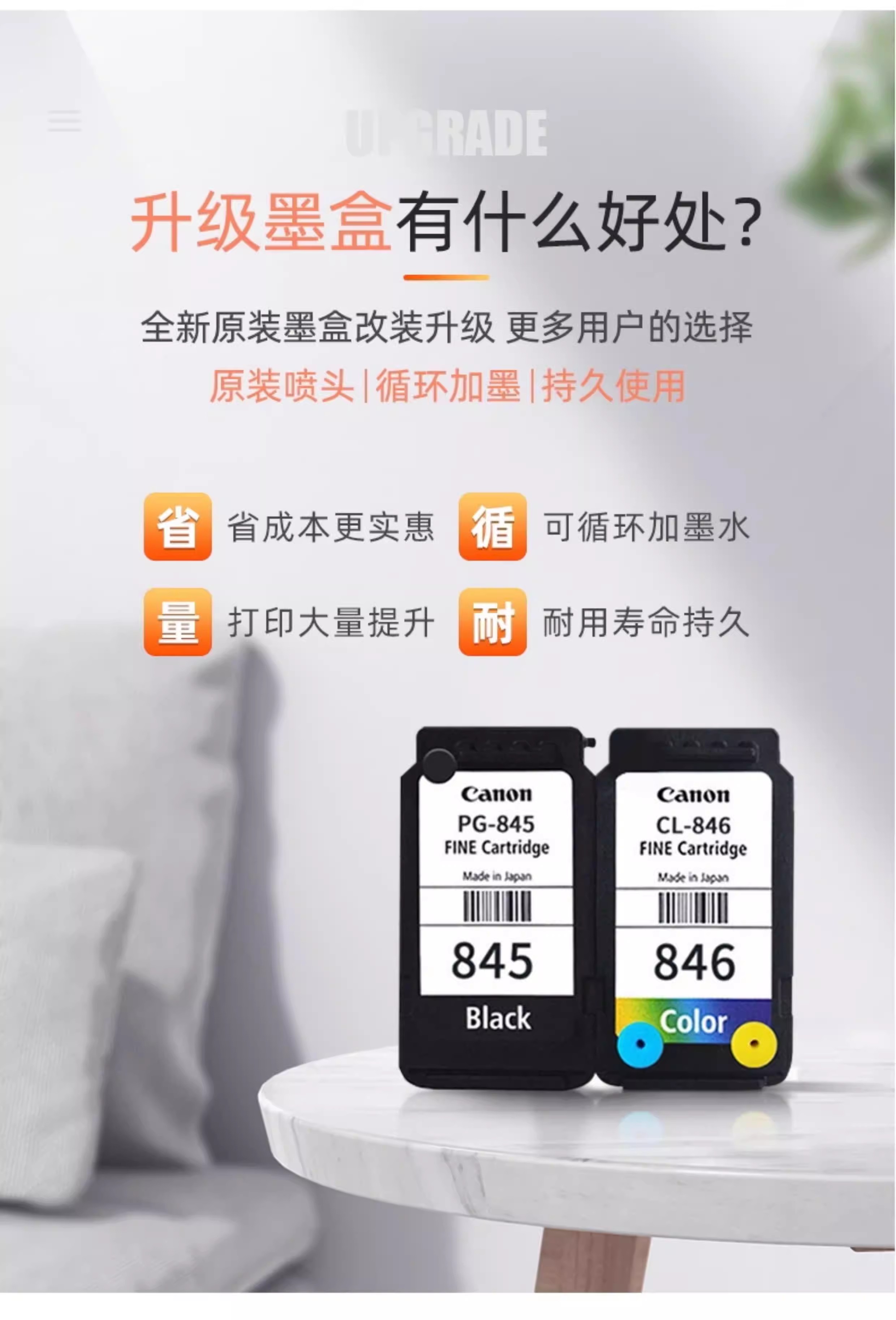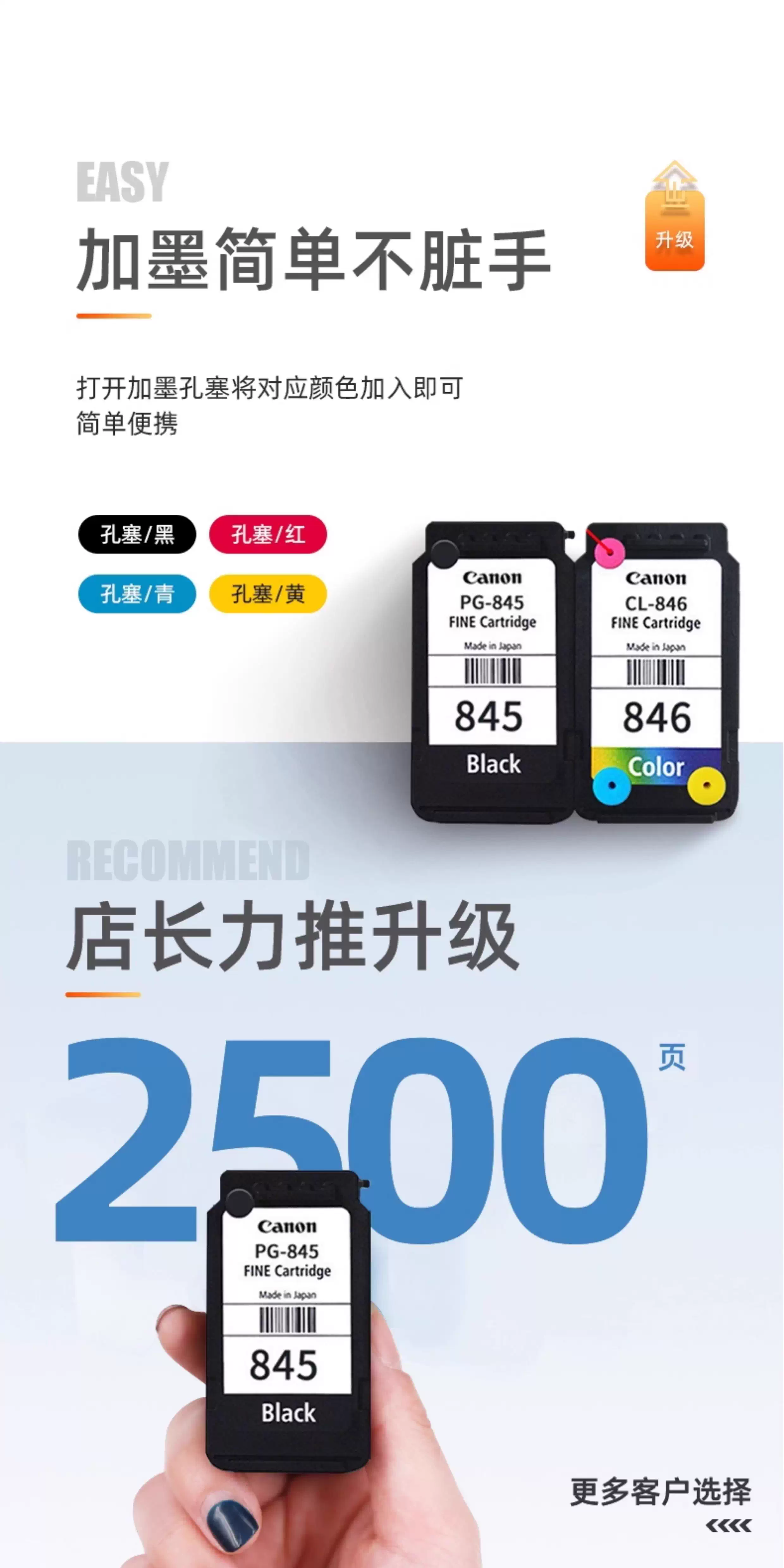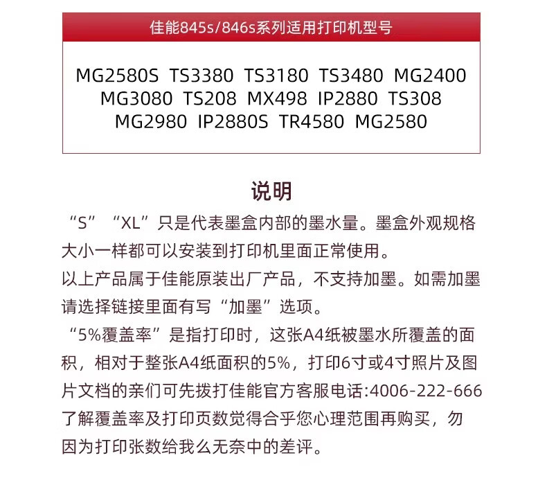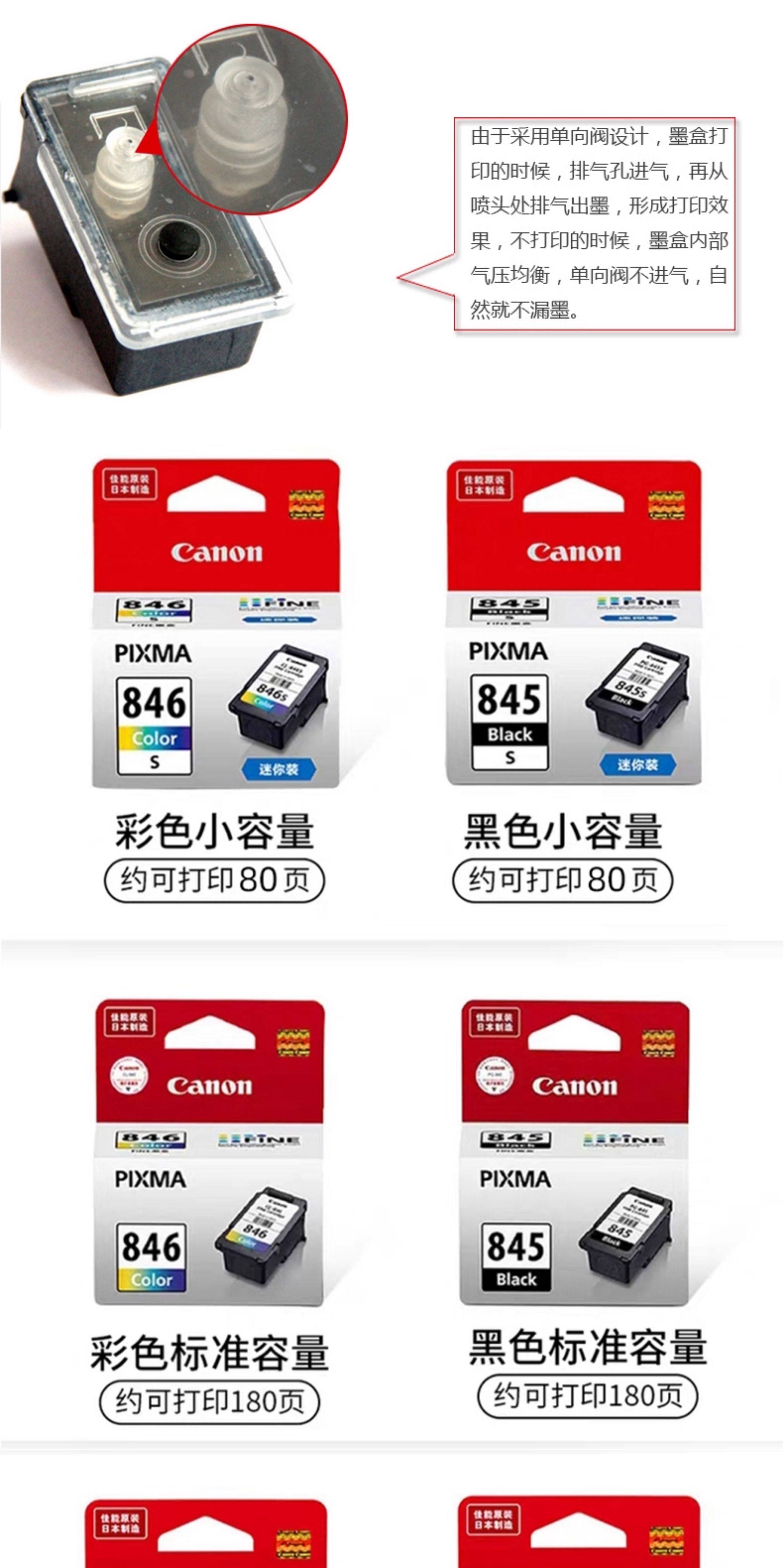 适用原装佳能845S 846S MG2580s 3080 TS3180 3380 3480连供墨盒 846彩色连喷墨盒