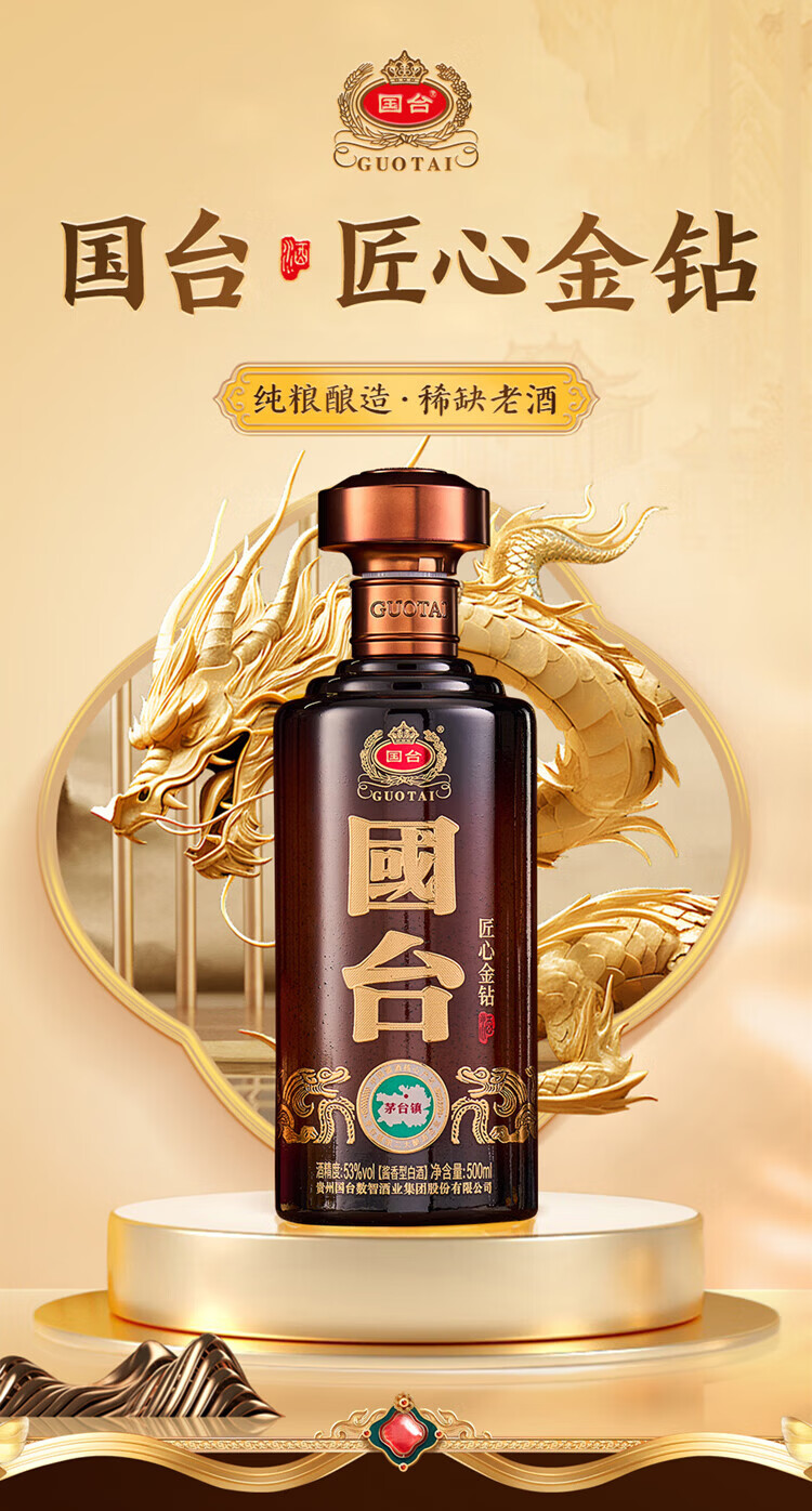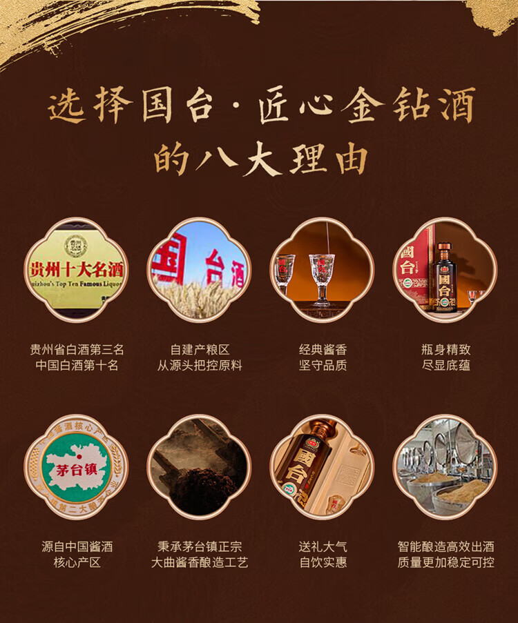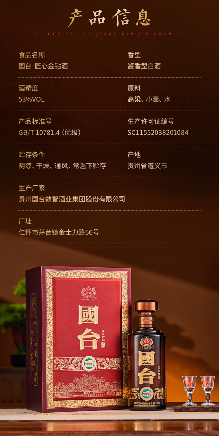 国台·盛世福钻酒 53度 酱香型 白酒 高端酒 送礼酒 53度 500mL 4瓶 国台·羲钻酒整箱